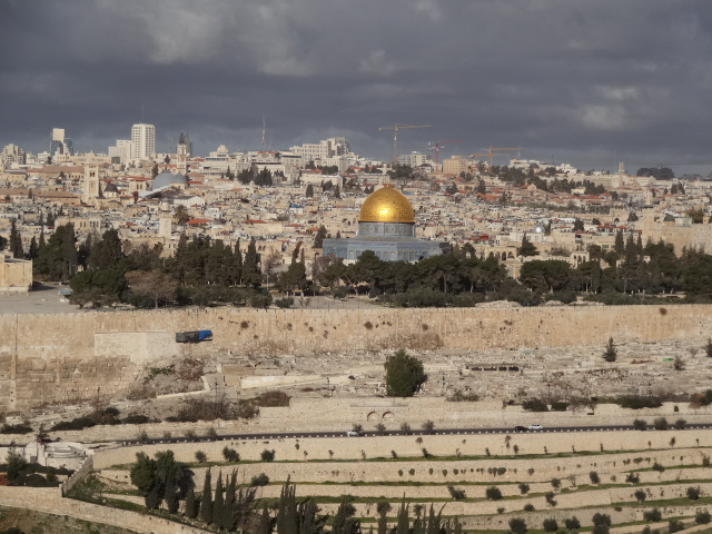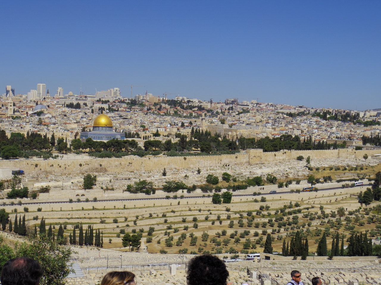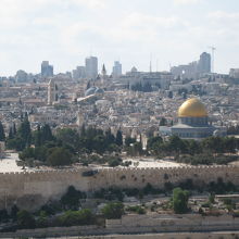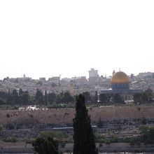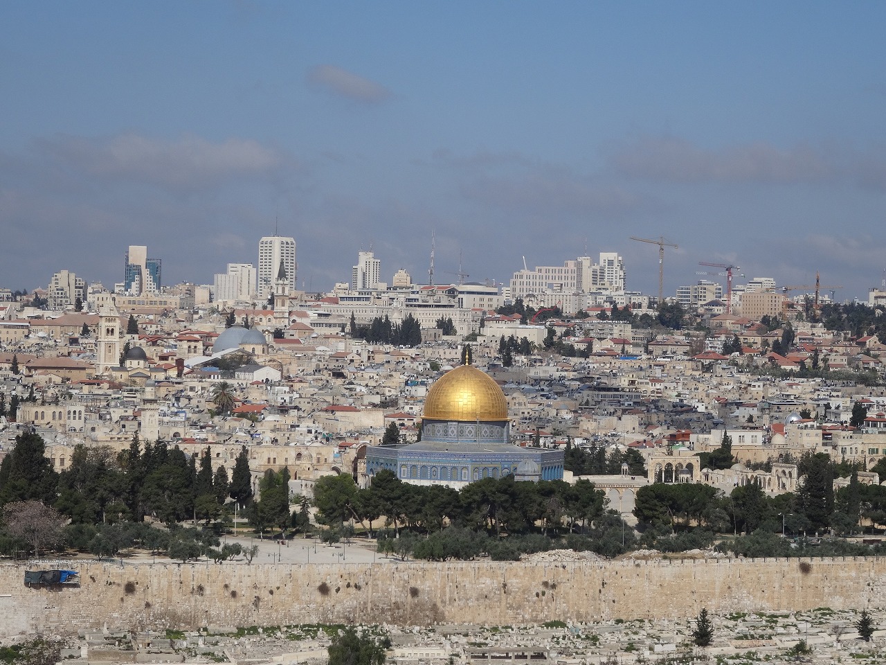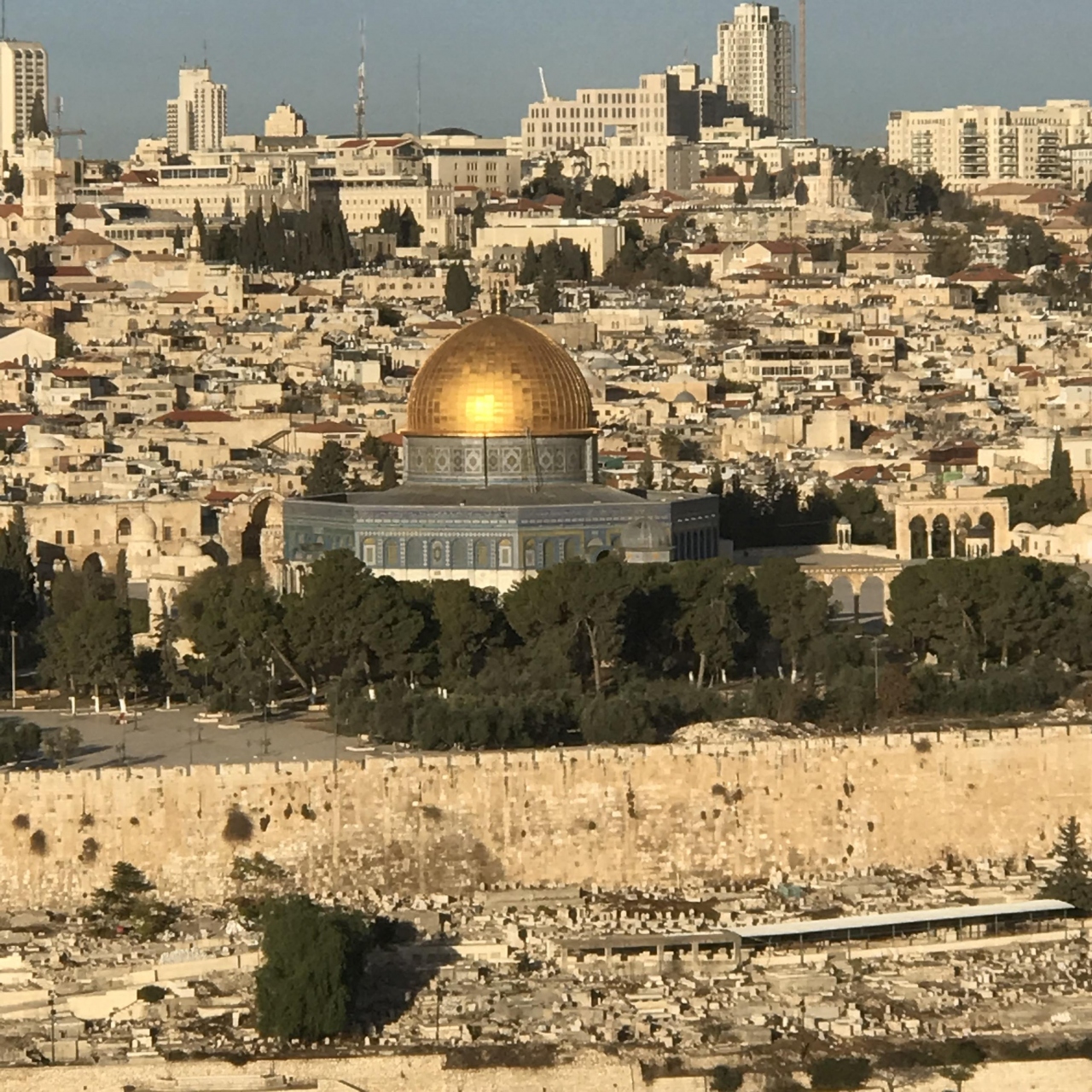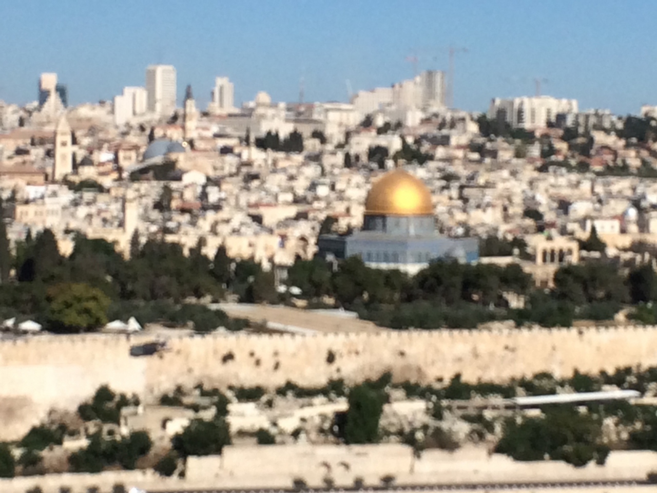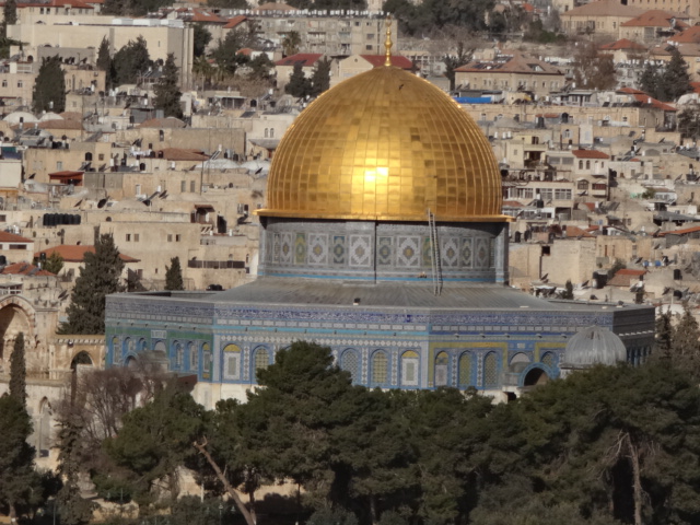 遠景に岩のドーム(金色の丸ドーム)が見えます