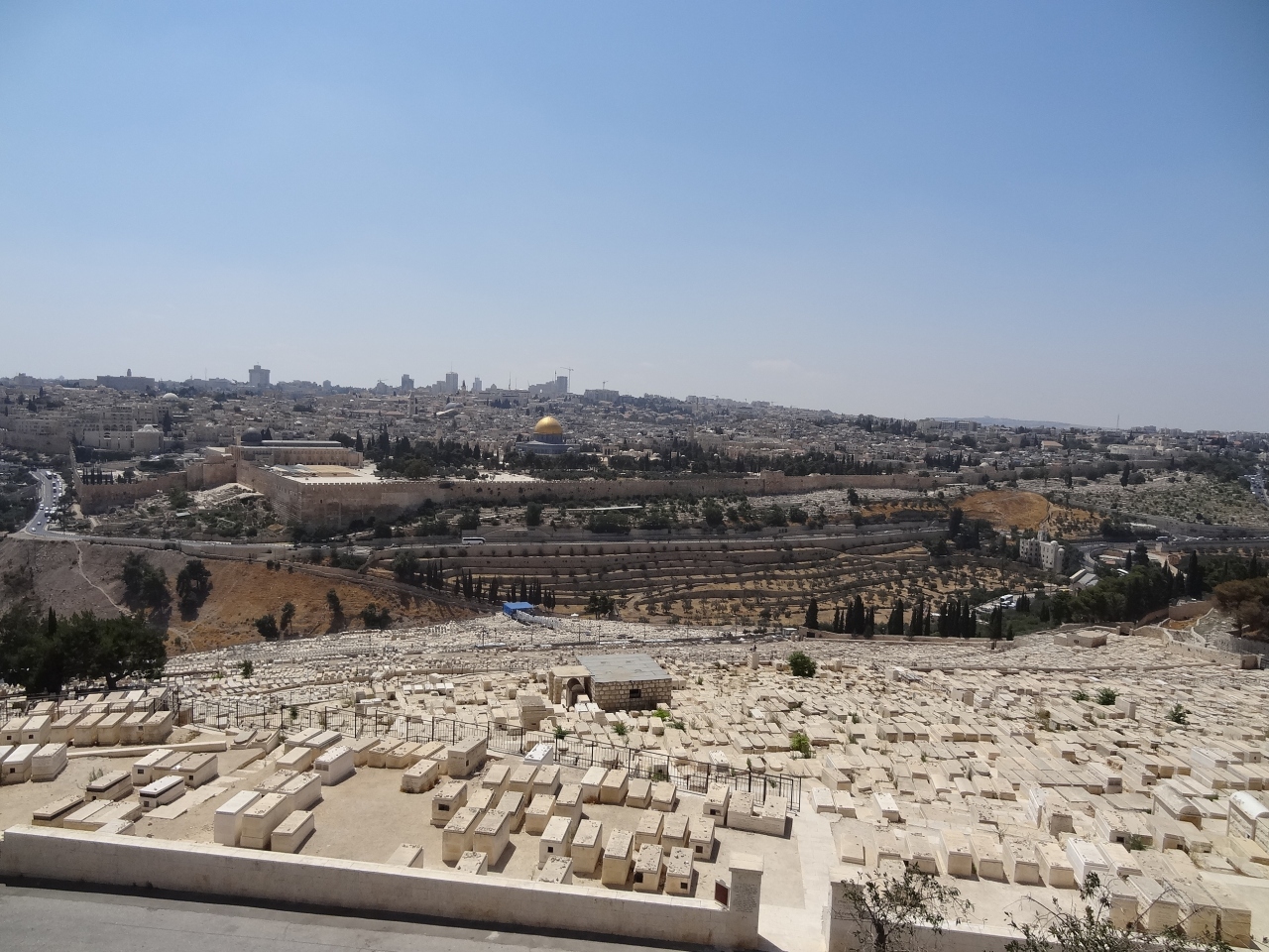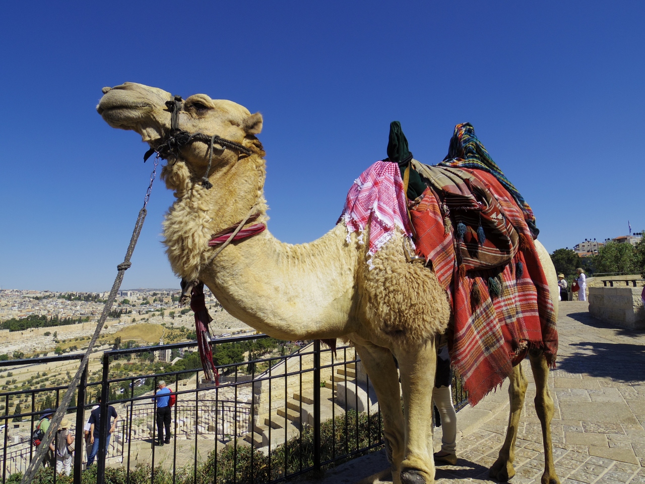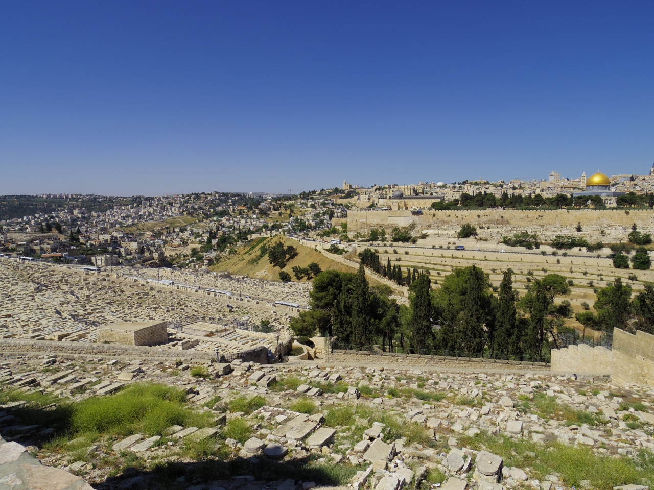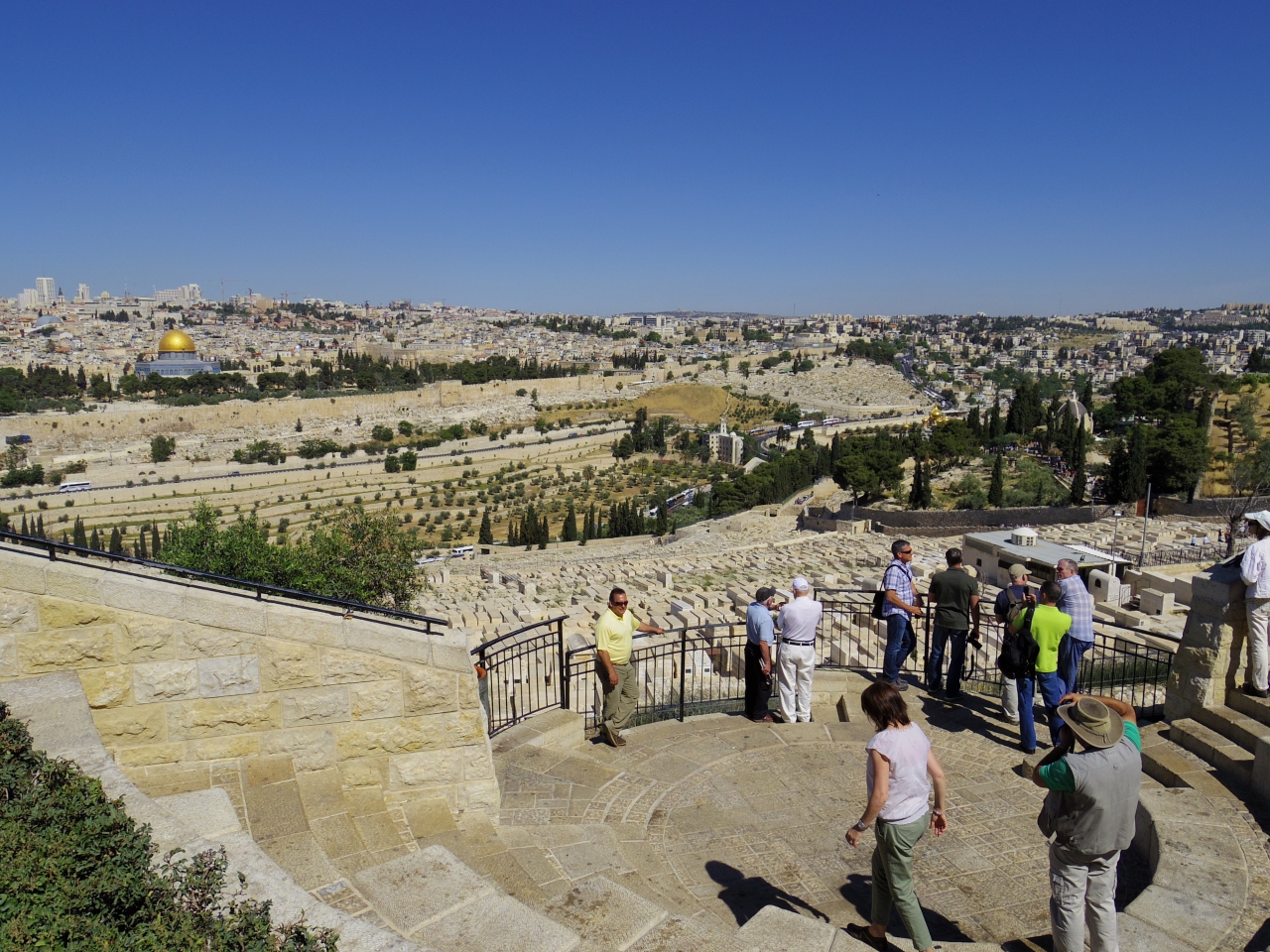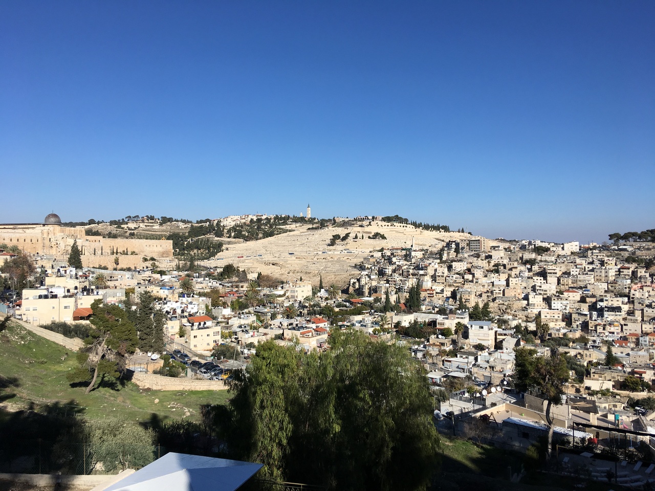 遠景に岩のドーム(金色の丸ドーム)が見えます