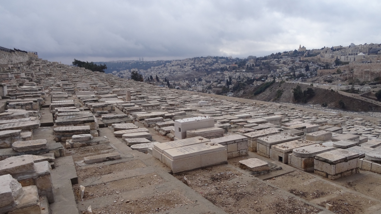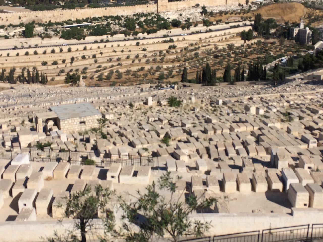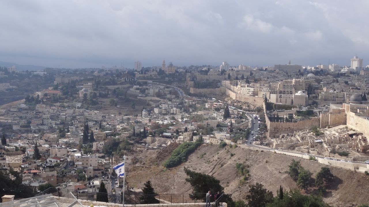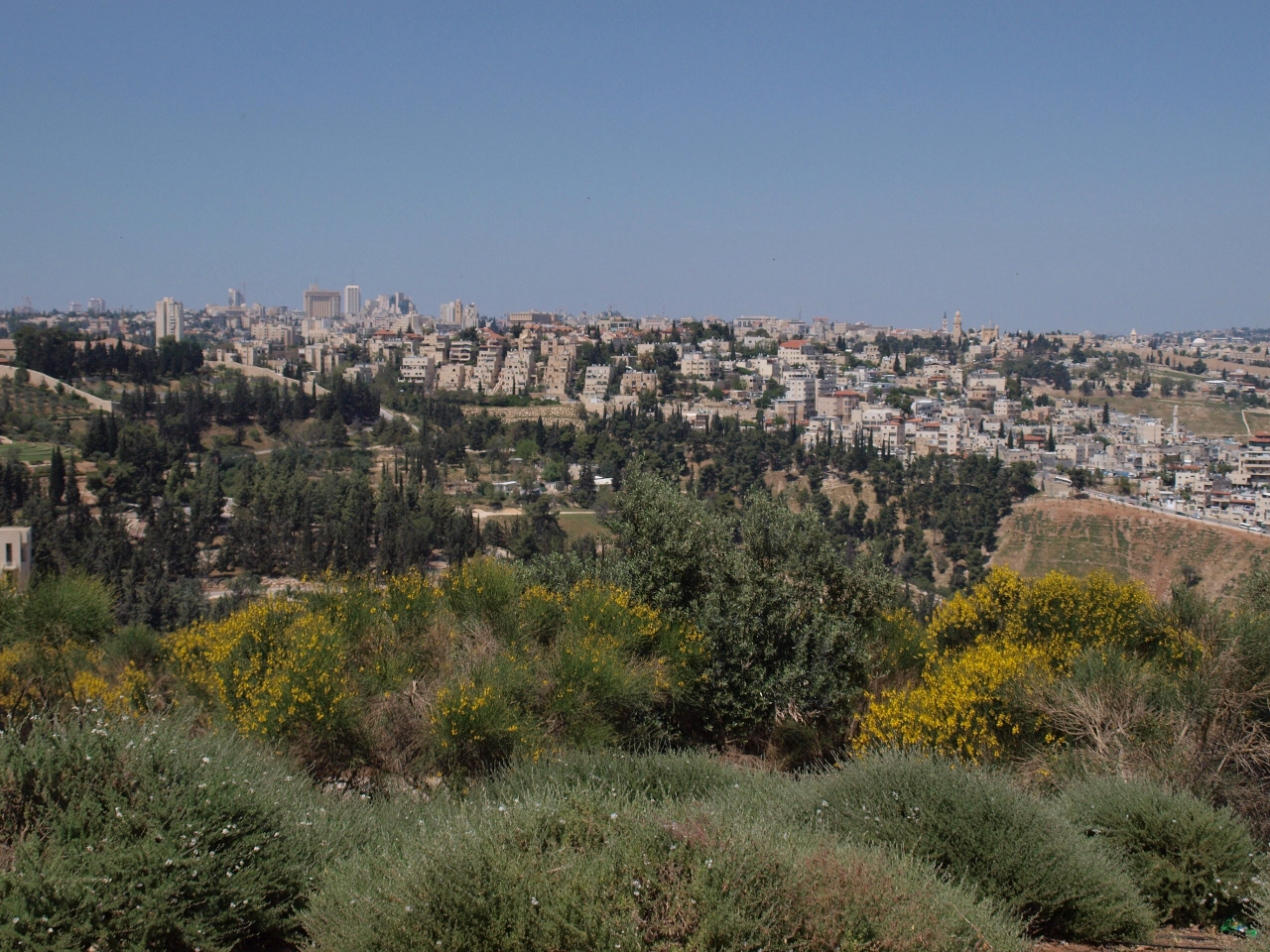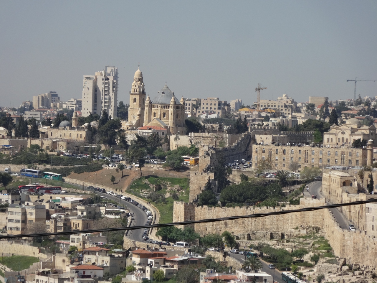 遠景に岩のドーム(金色の丸ドーム)が見えます