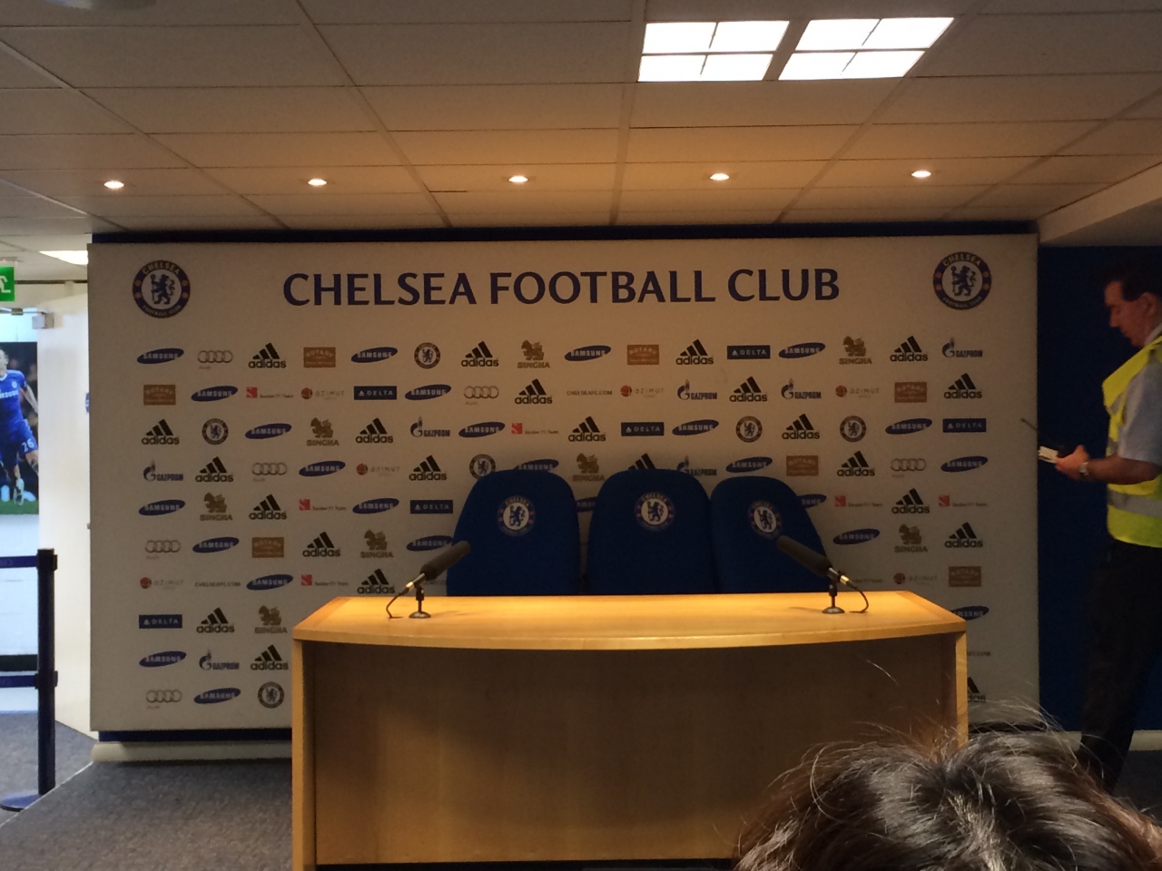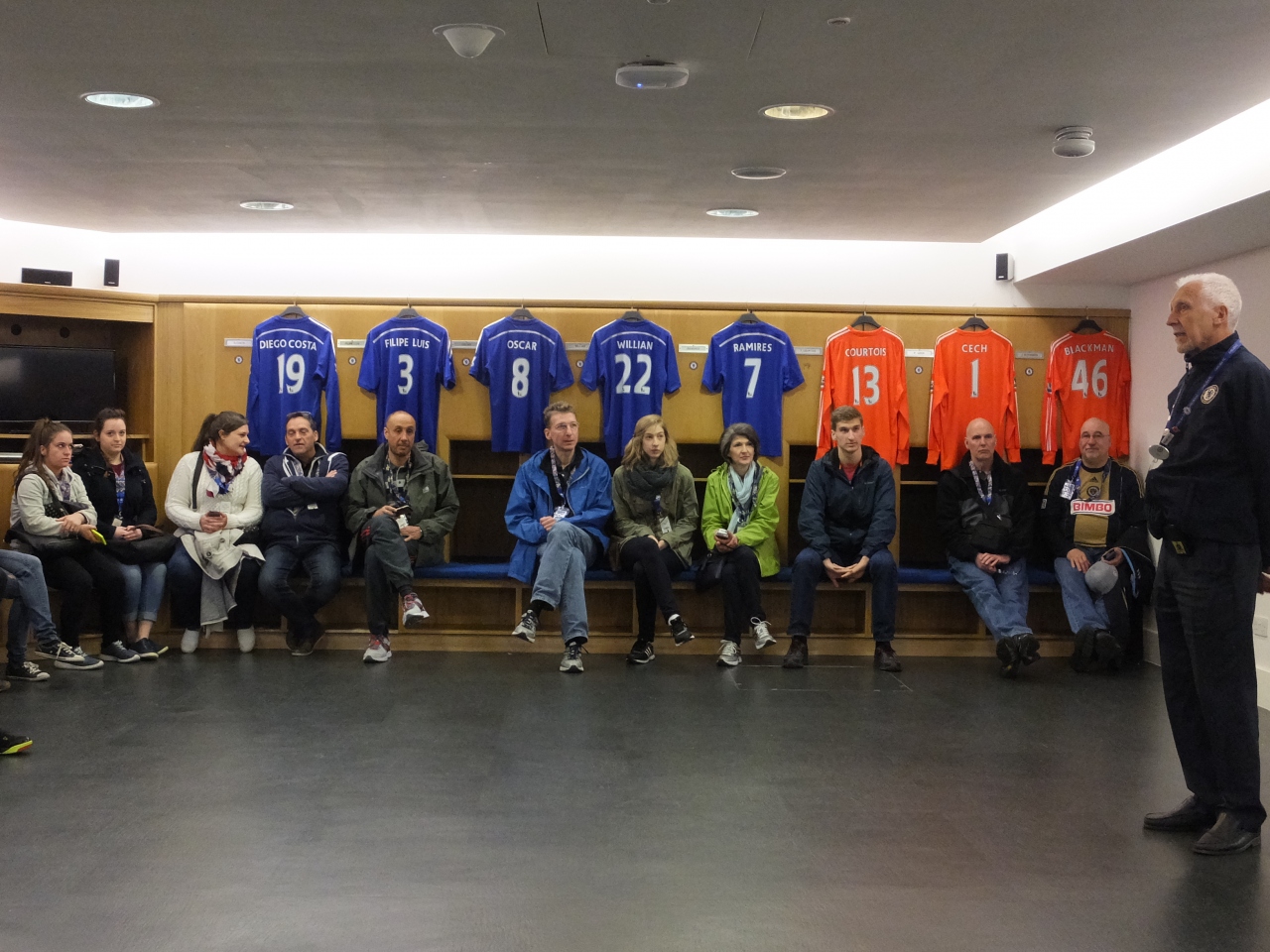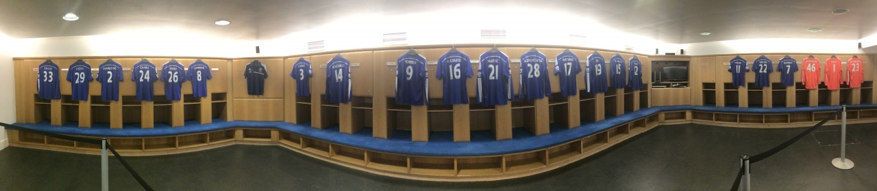 実際にチェルシーの選手が使うロッカールームで解説を聞く
