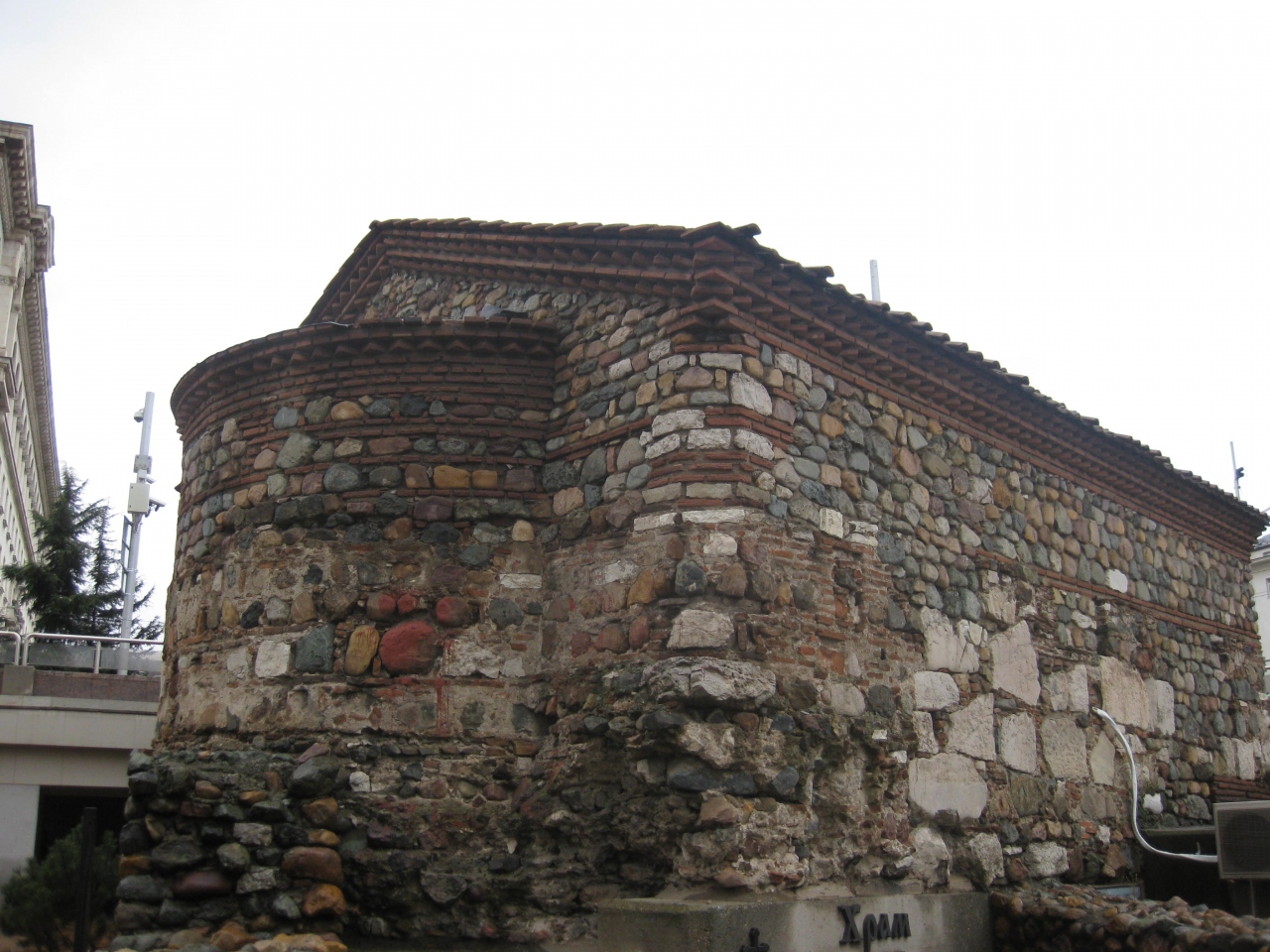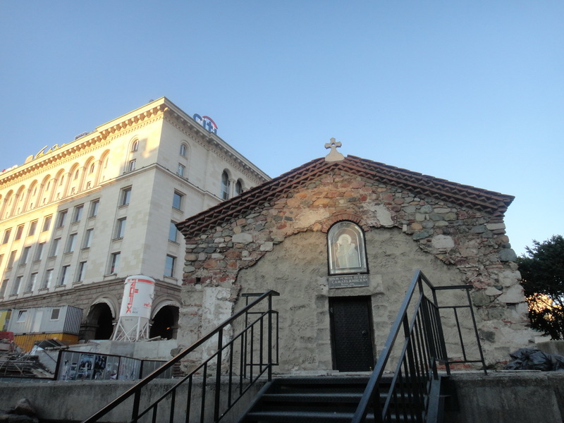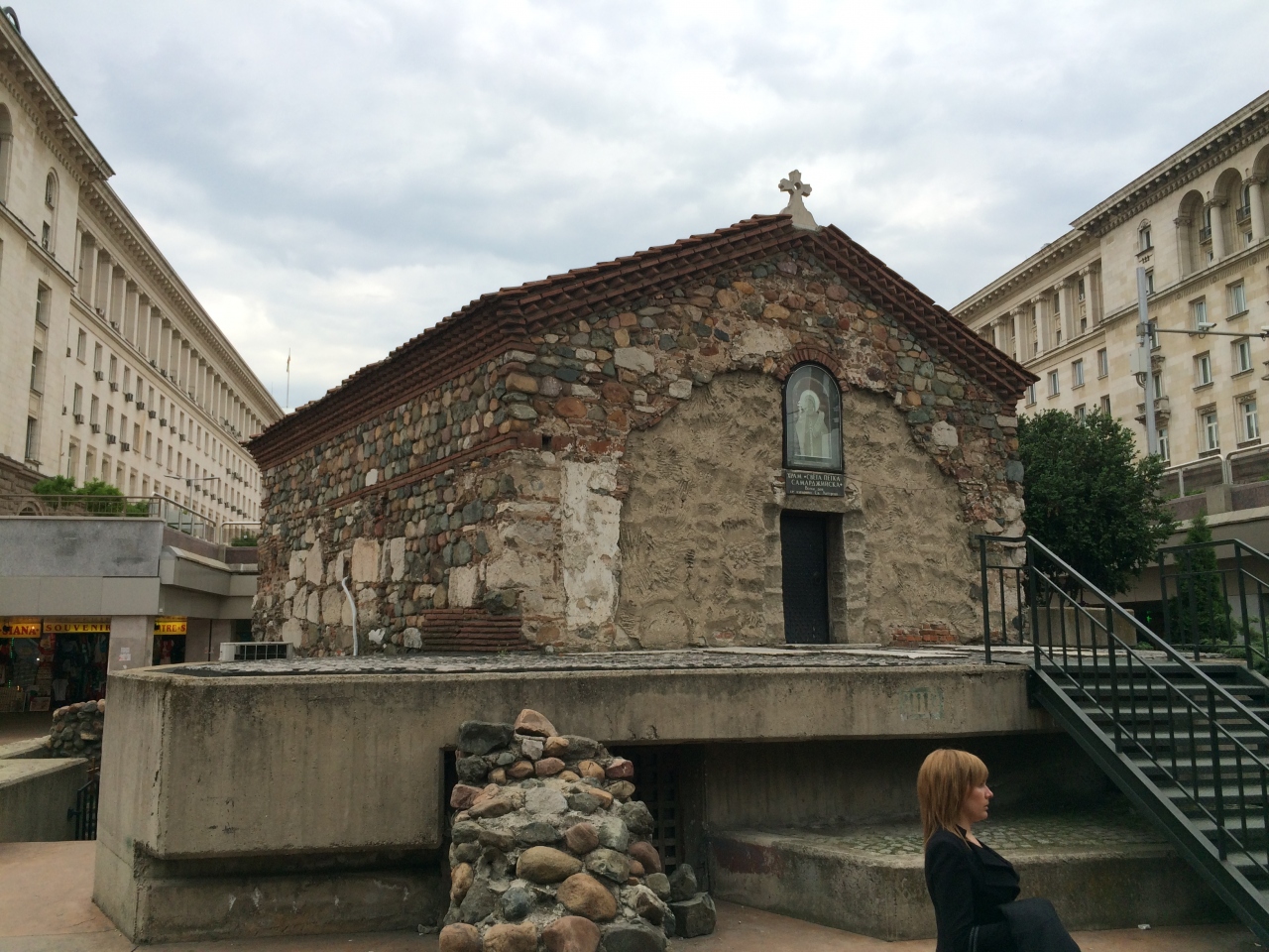 ソフィア市内を徒歩観光の途中に見学しました。ネデリャ広場のそばに埋もれるようにして建っている教会です。