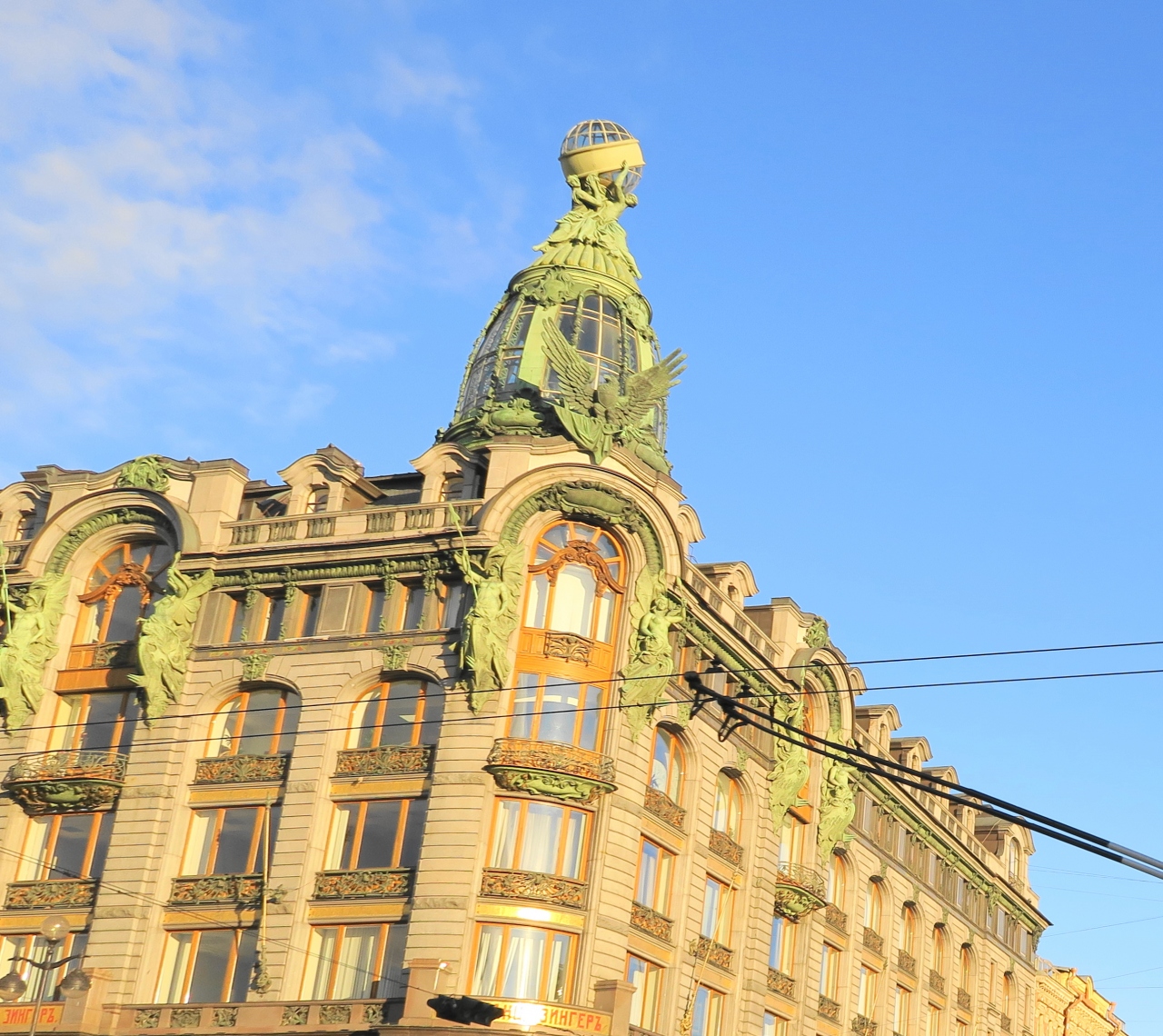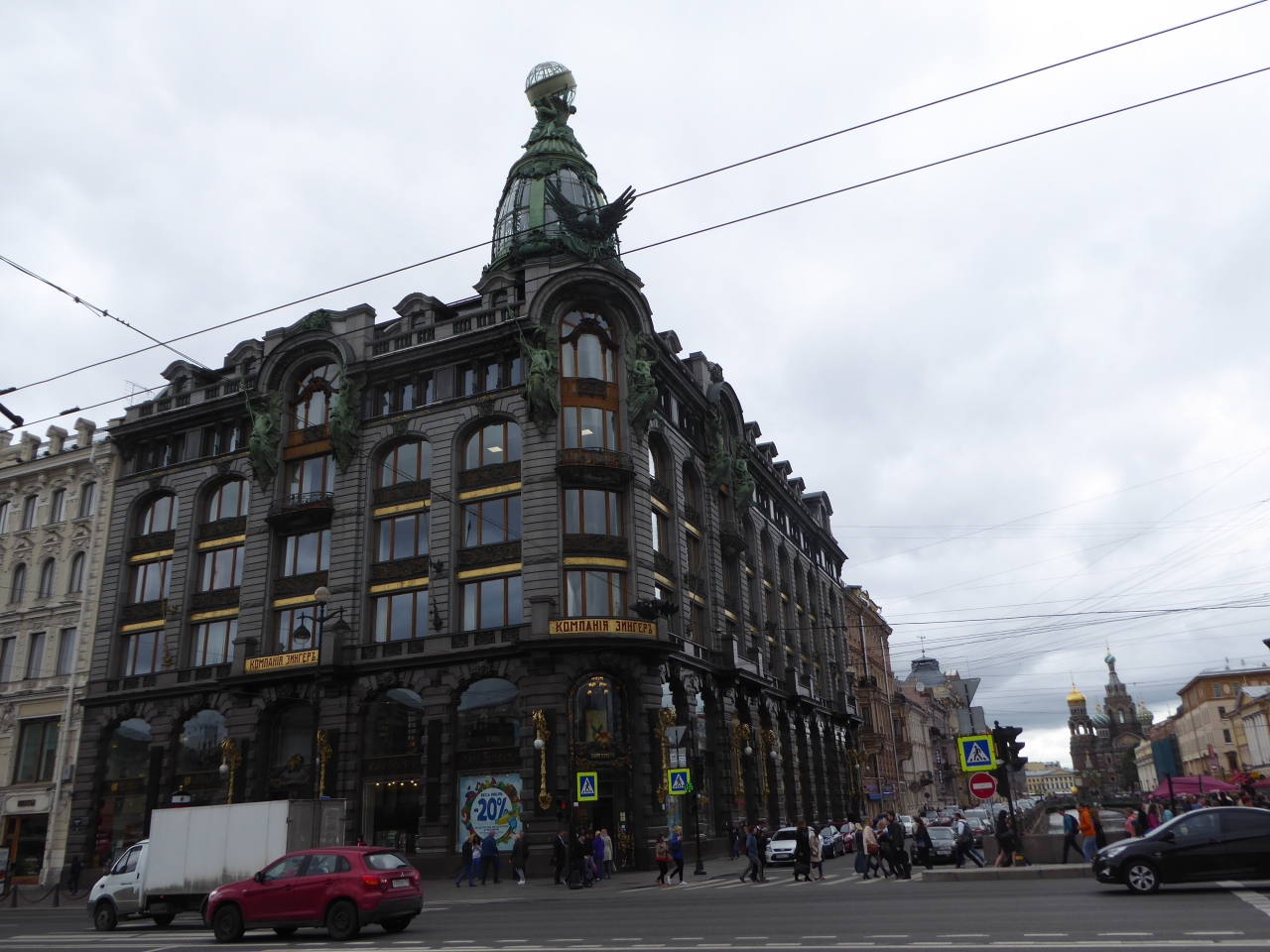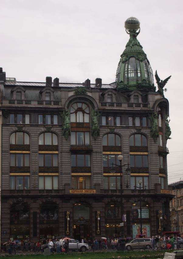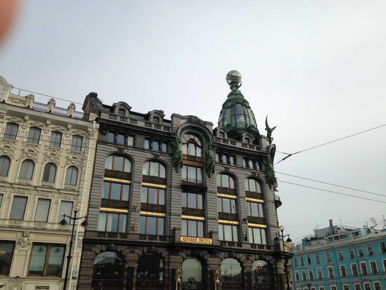 元々は米国企業のシンガー編機のロシア支店の建...  続きを読む物として建築された為、この名前がありるそうで、1904年の建築時には冬の宮殿より高い建物は作れないないという建築規制が有った為、現在の6階建てに落ち着いているそうです。