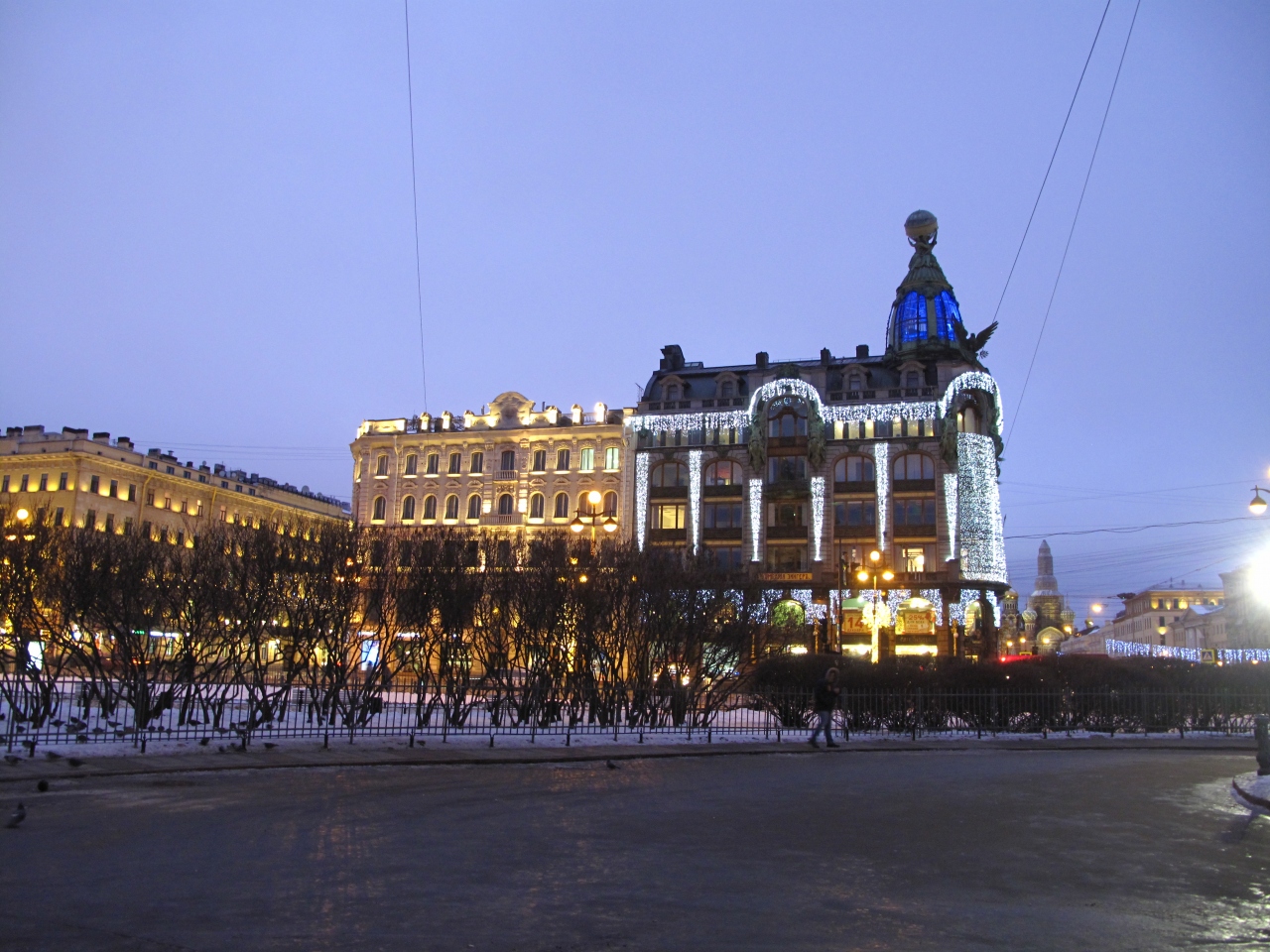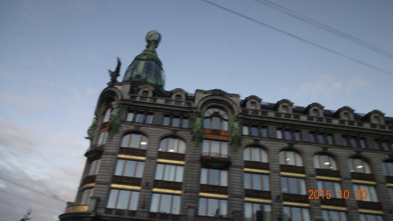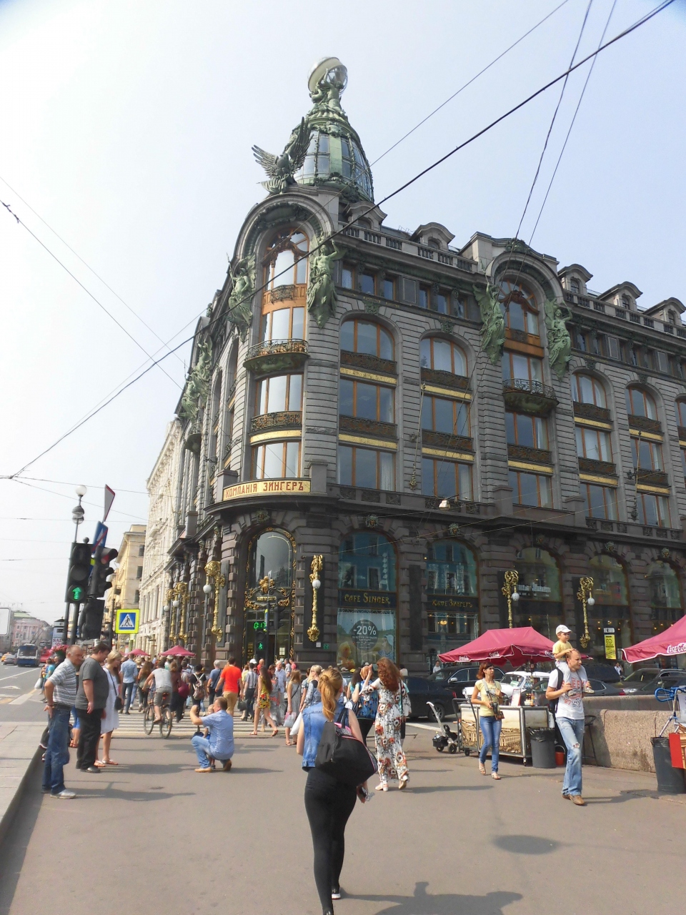 元々は米国企業のシンガー編機のロシア支店の建...  続きを読む物として建築された為、この名前がありるそうで、1904年の建築時には冬の宮殿より高い建物は作れないないという建築規制が有った為、現在の6階建てに落ち着いているそうです。