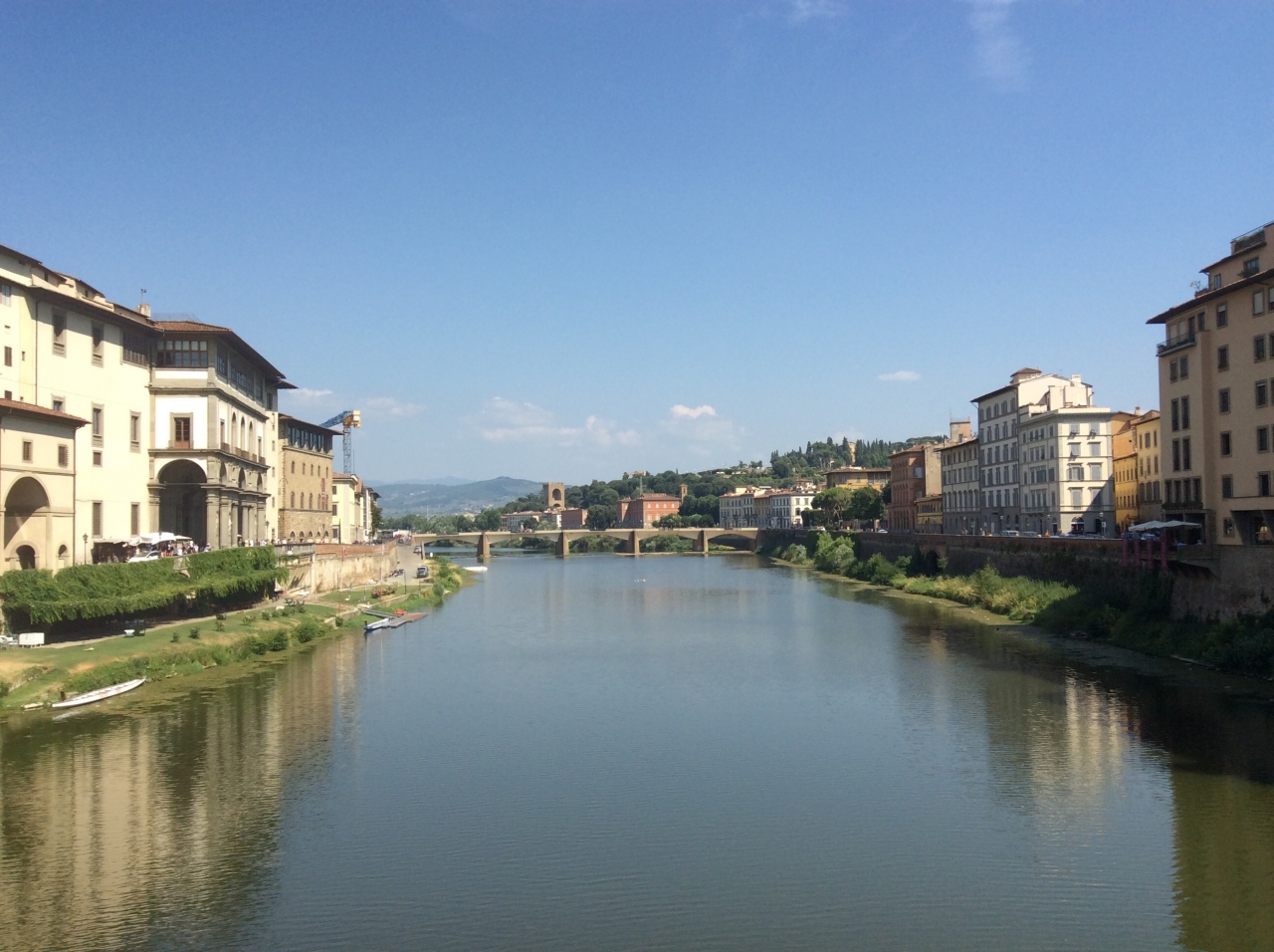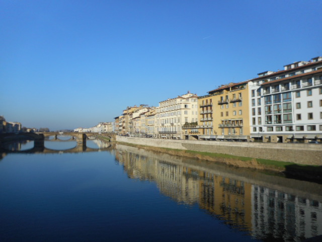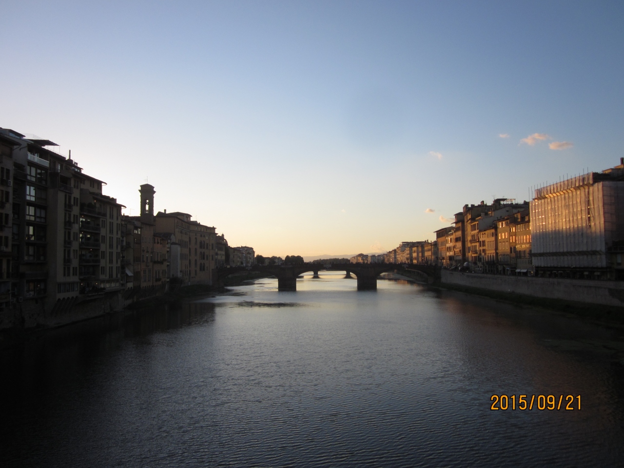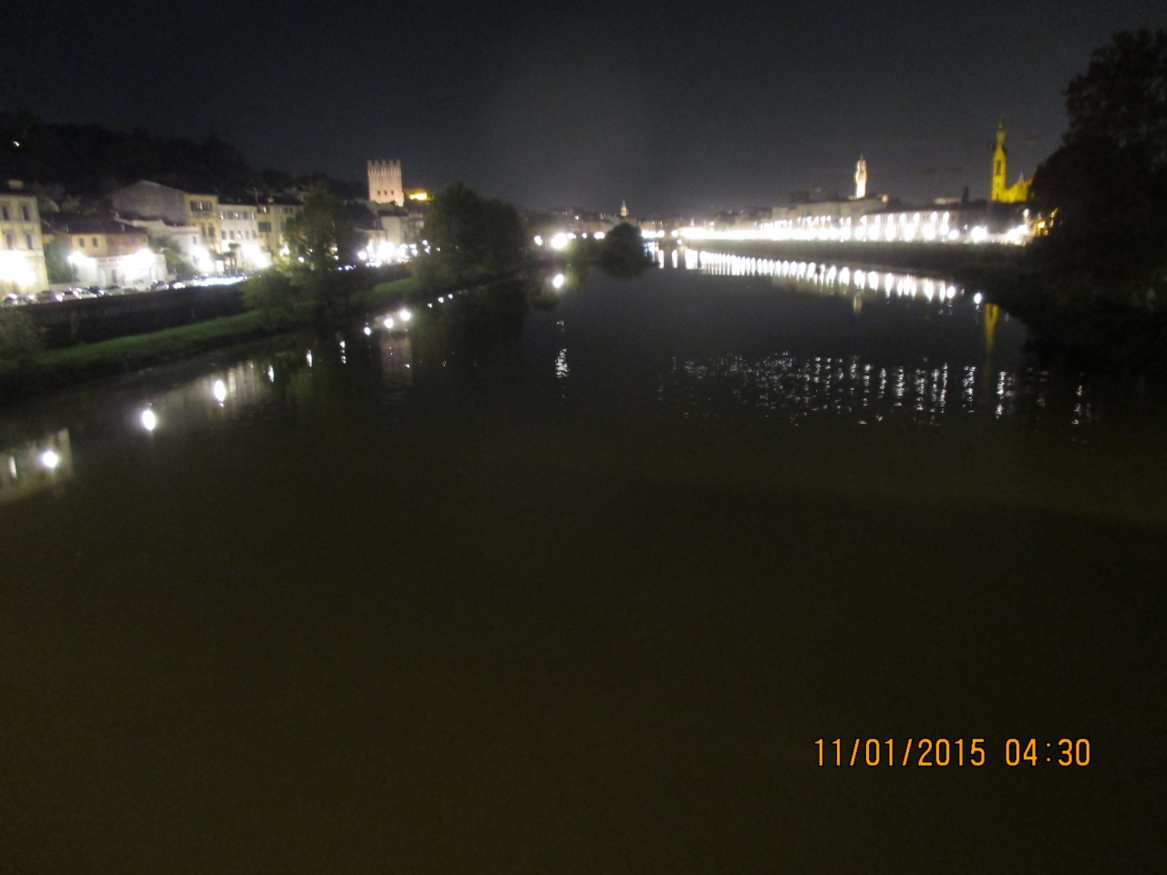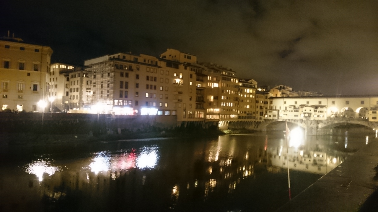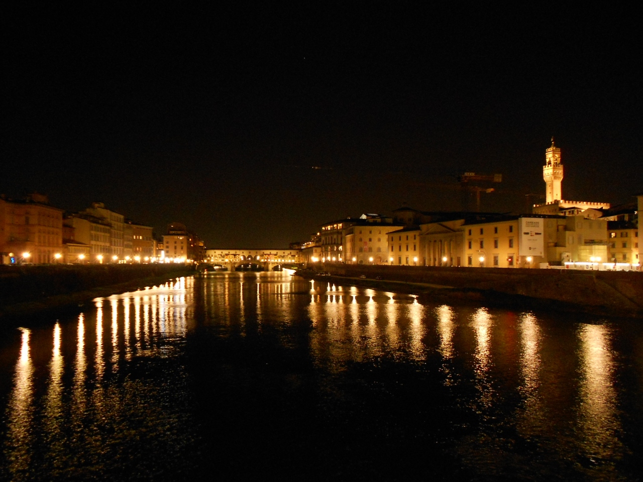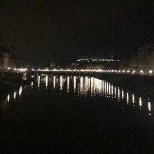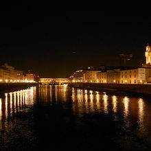 夜のアルノ川、サン・ニッコロ橋から下流を見ています