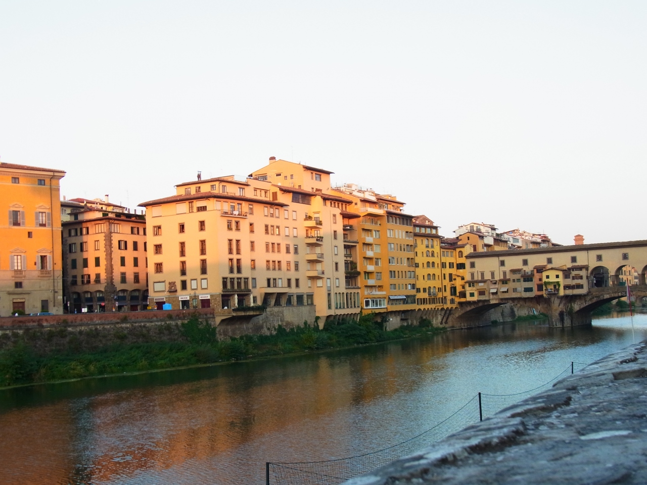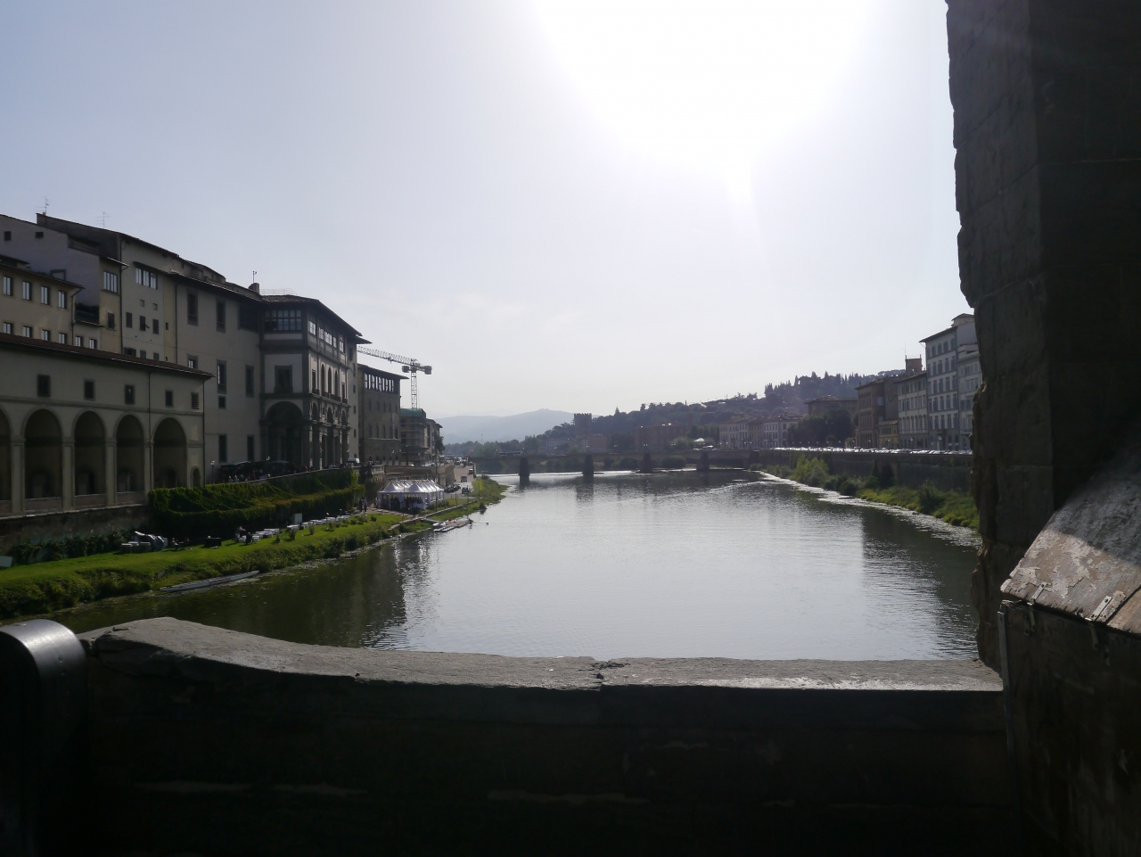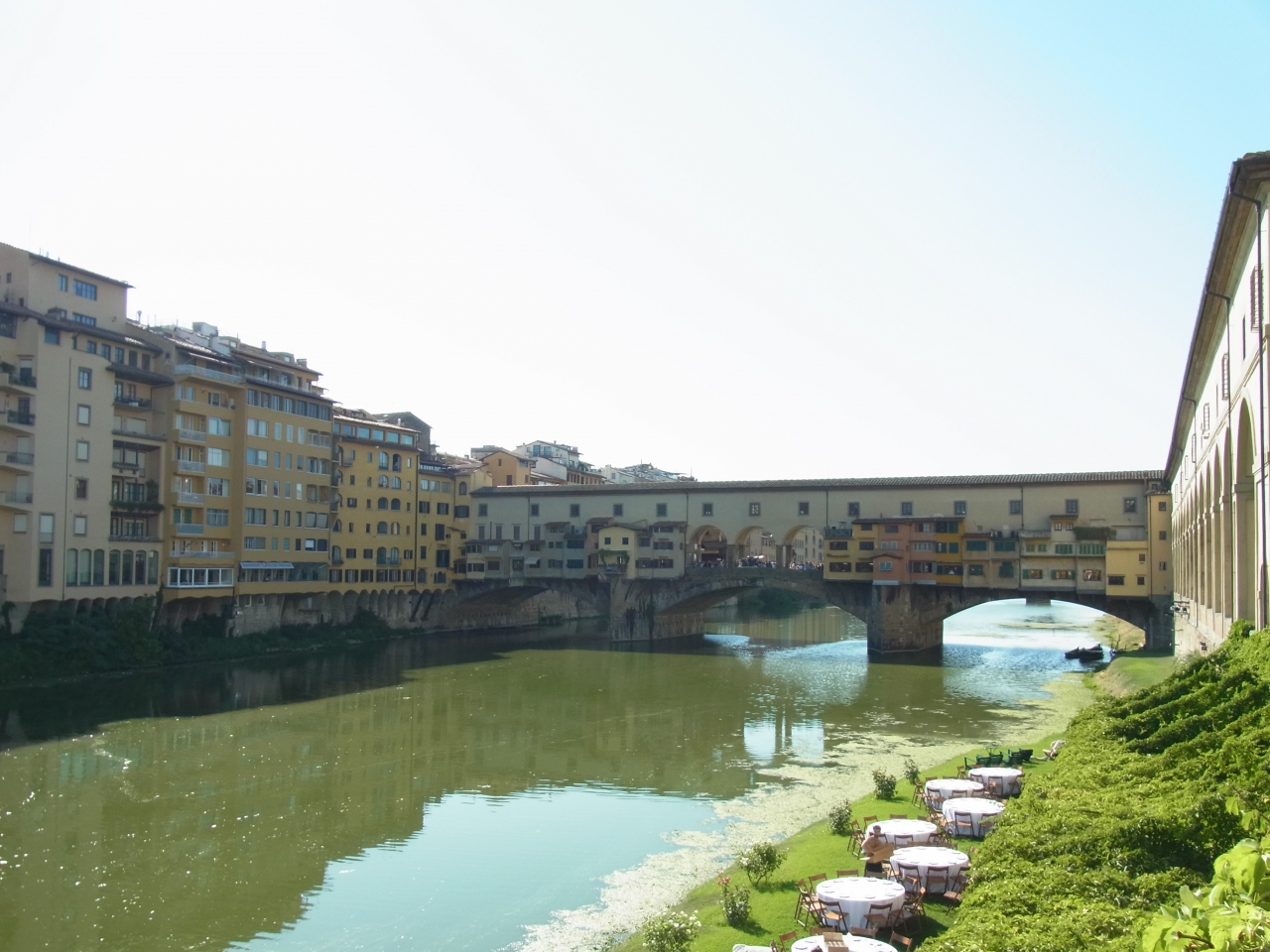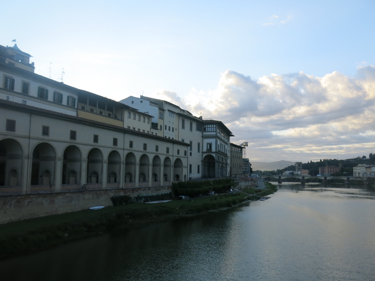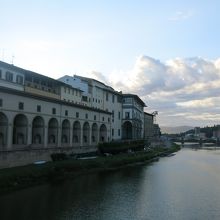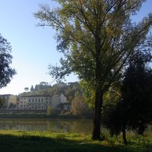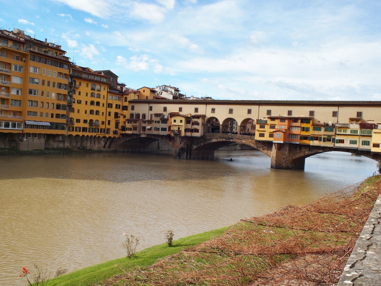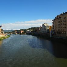 グラッツェ橋から見るアルノ川とヴェッキオ橋