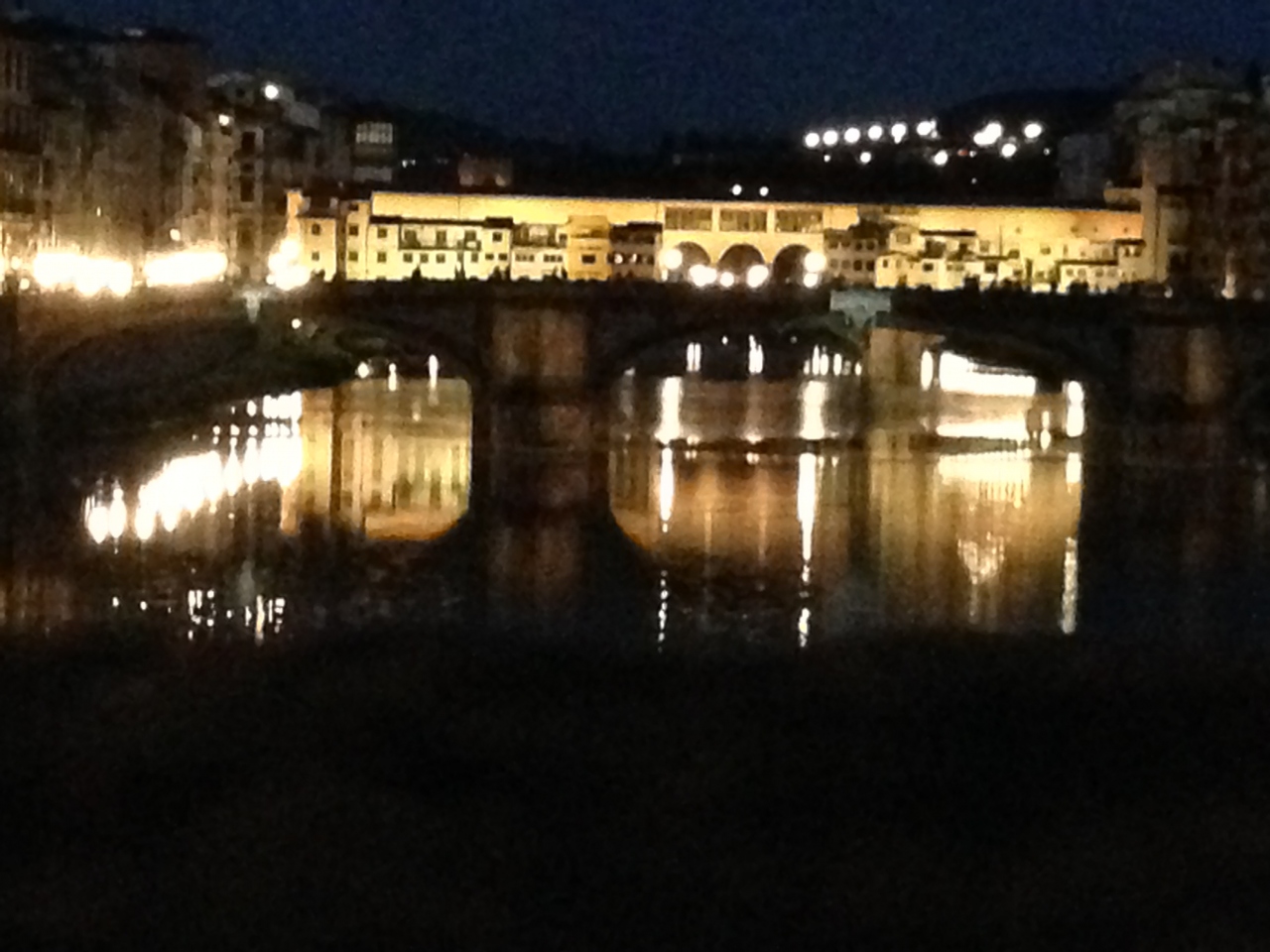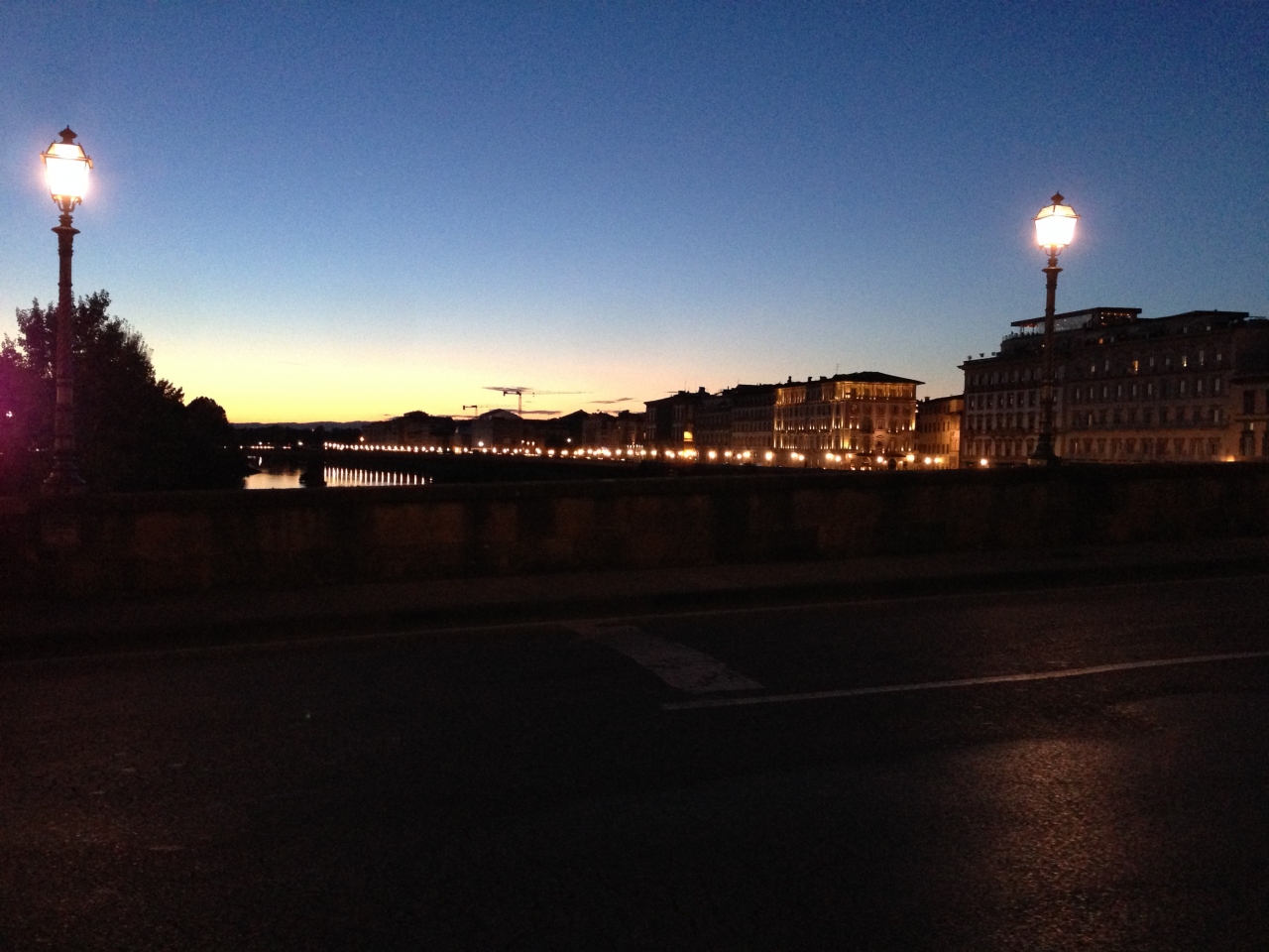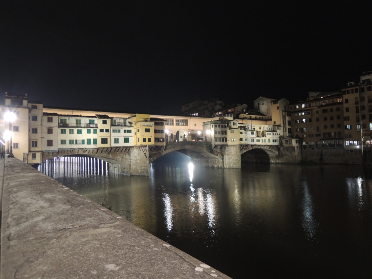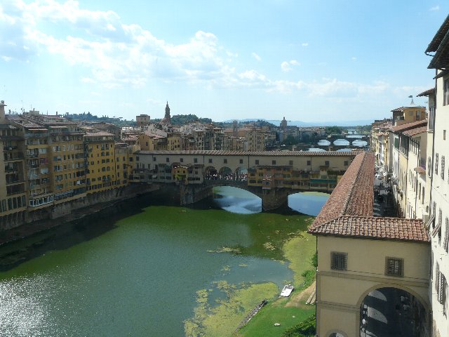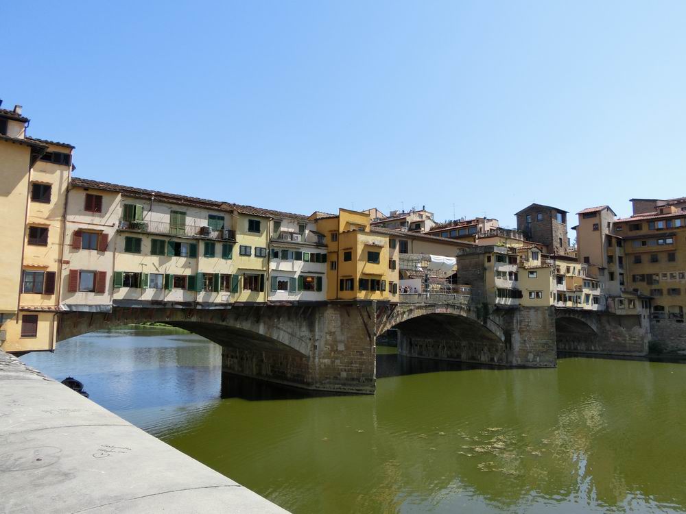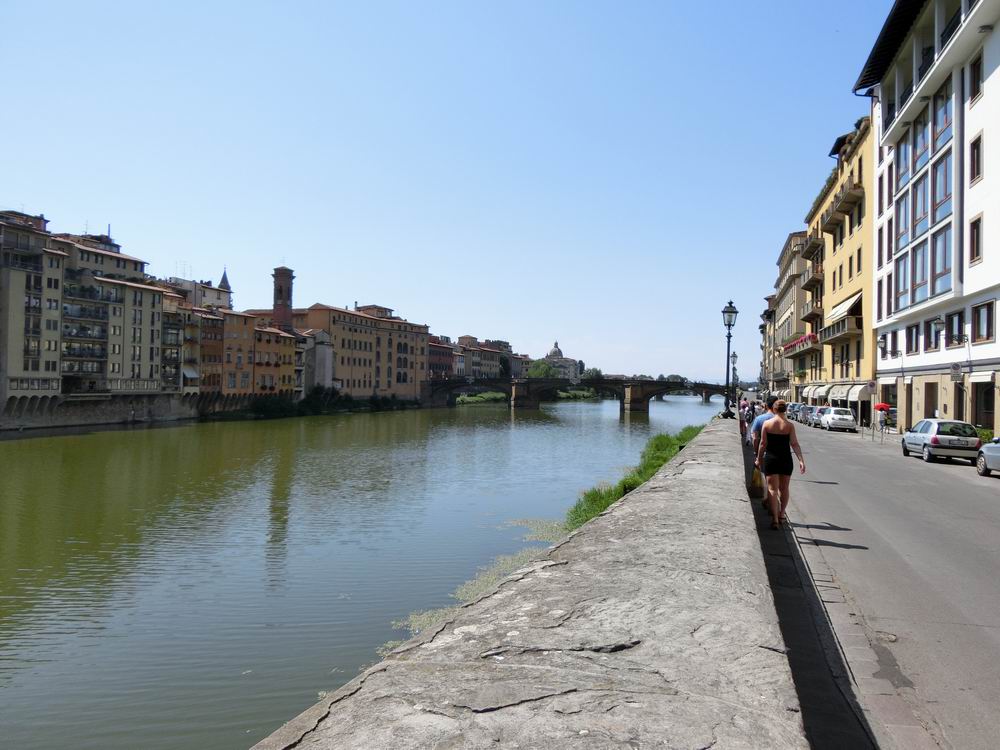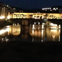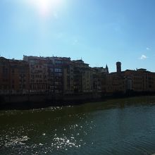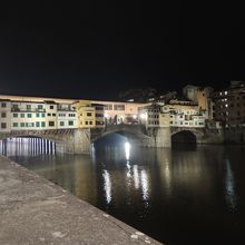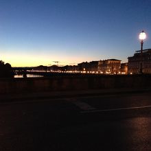 グラッツェ橋から見るアルノ川とヴェッキオ橋