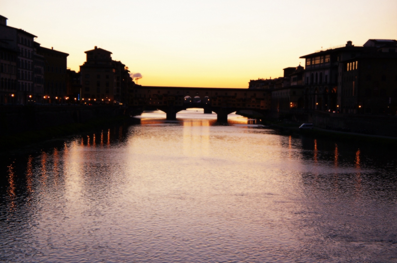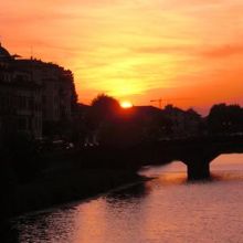 部屋のテラスからの夕景。アルノ川と対岸の教会が美しいです