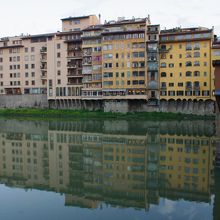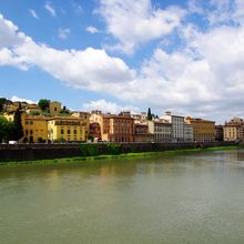 アルノ川の中央から川沿いの街並みを見ることができます。