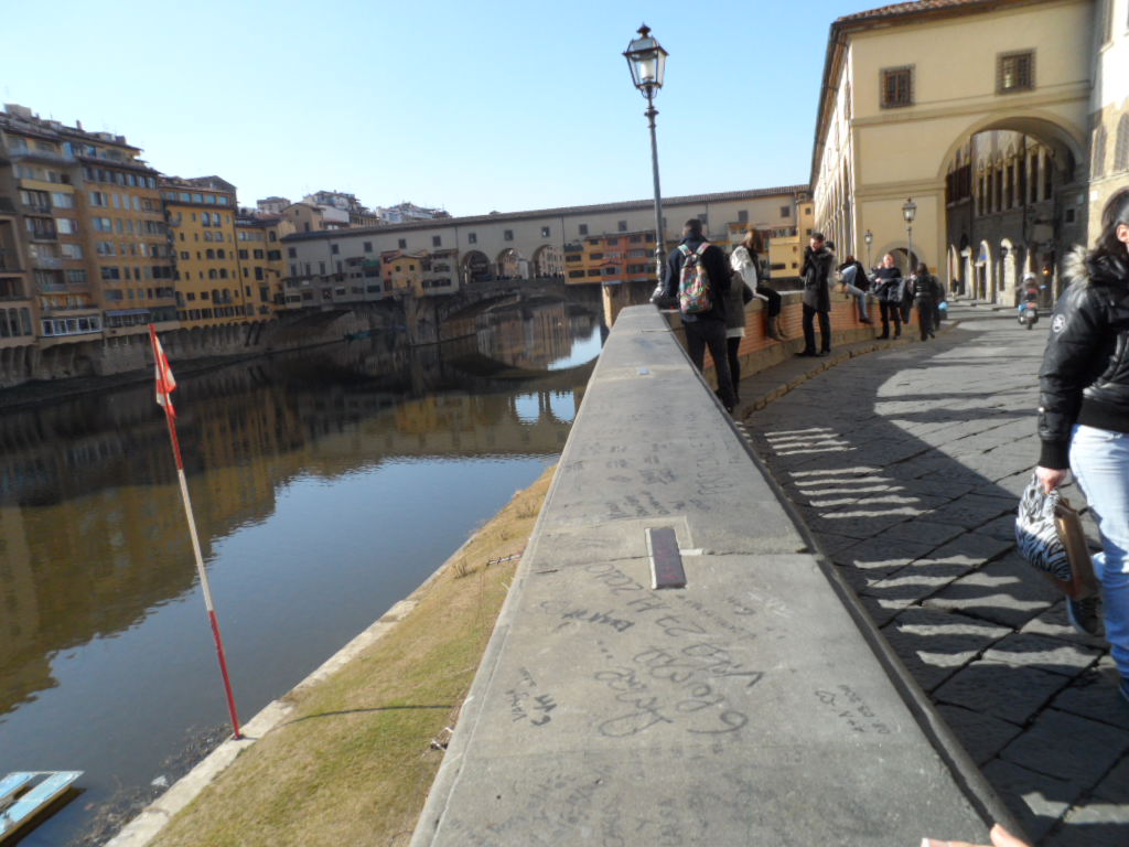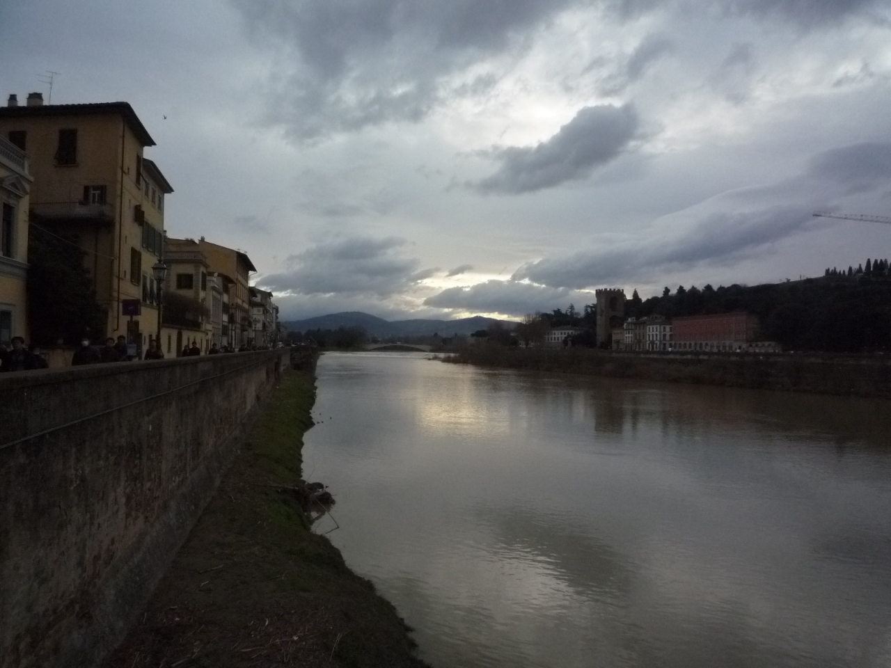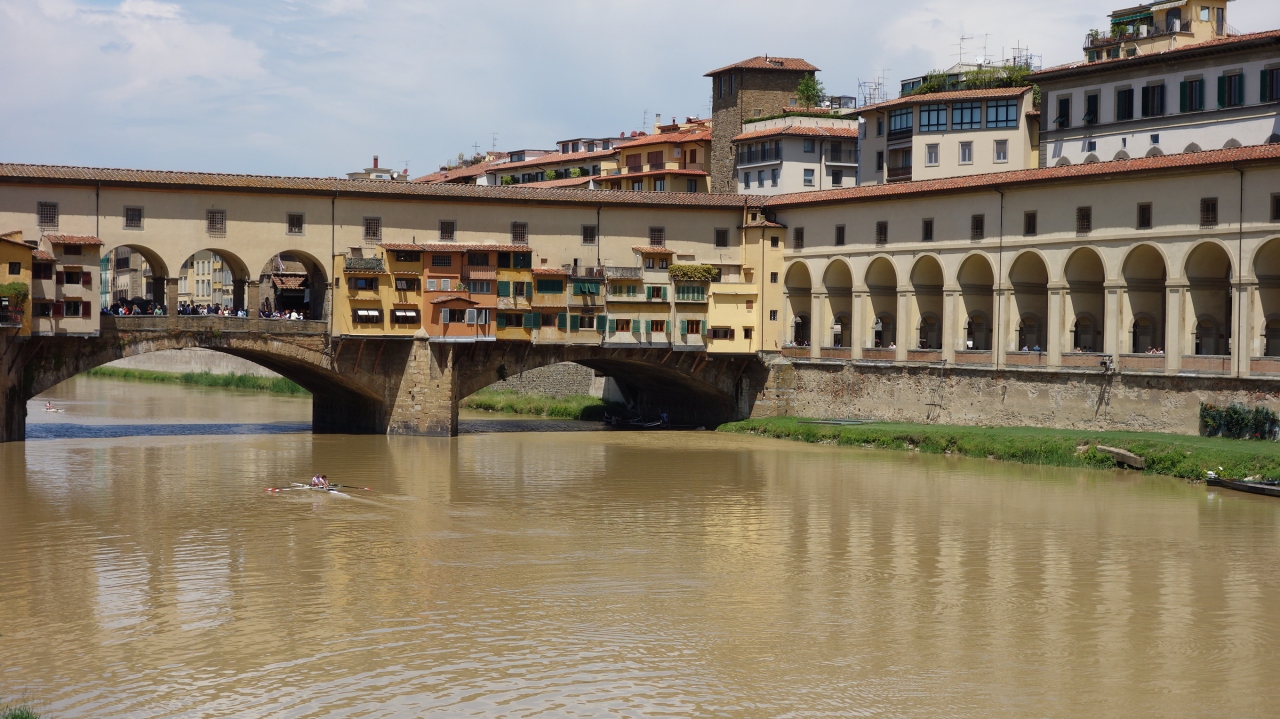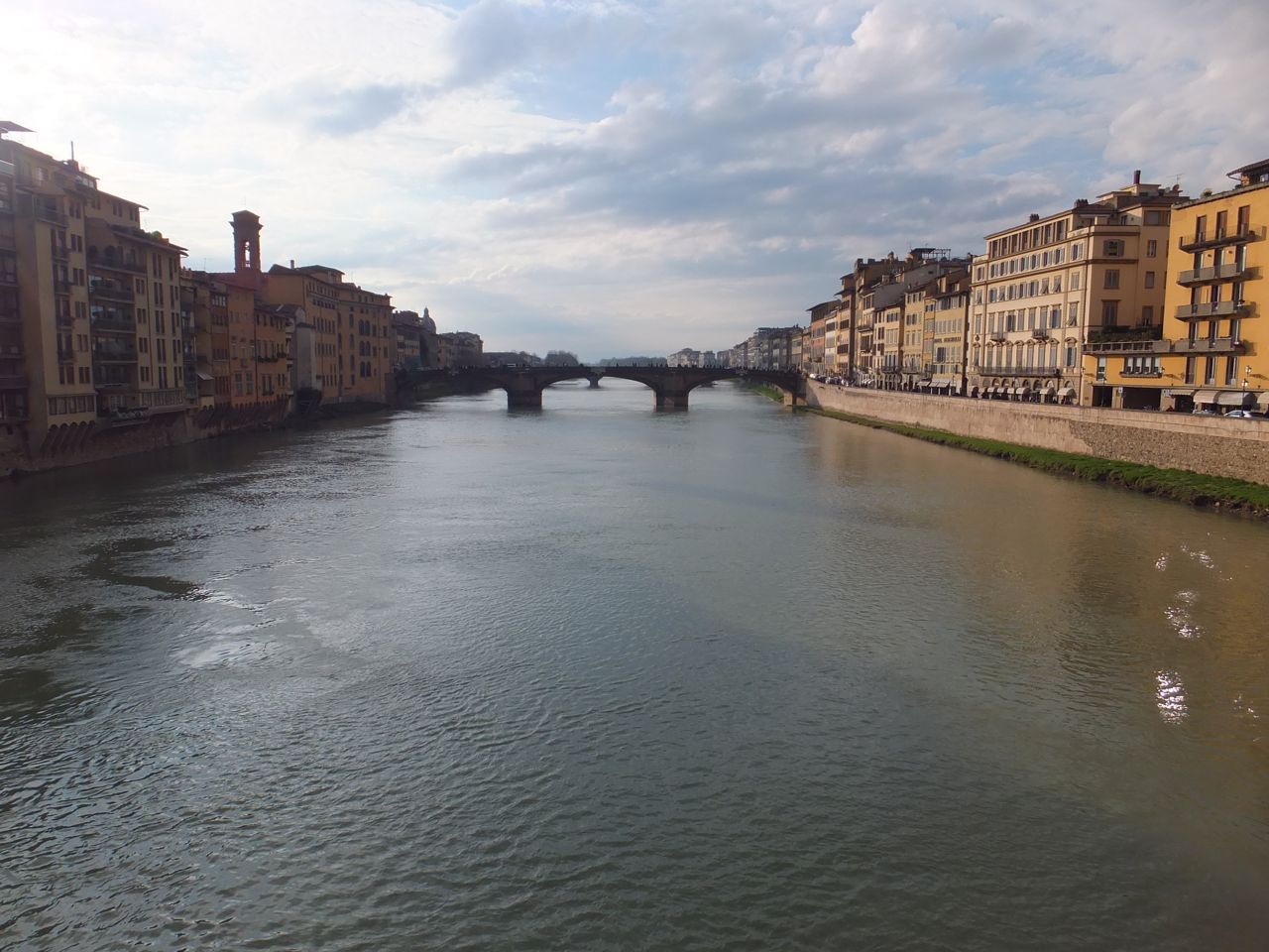 ベッキオ橋を眺めるならばアルノ川の川岸から上流および下流の橋から♪