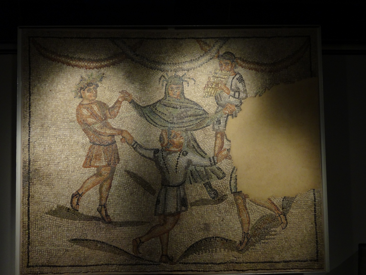 そこは小さな教会ですが、貴族の邸宅の床のカーペットが展示してありました。オープンして間がないみたい。宗教画ではなく、四季のダンス、とても軽快で明るいモザイクでした。