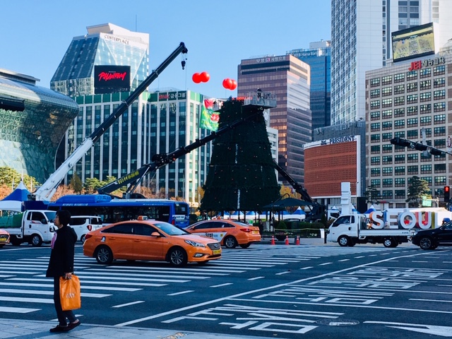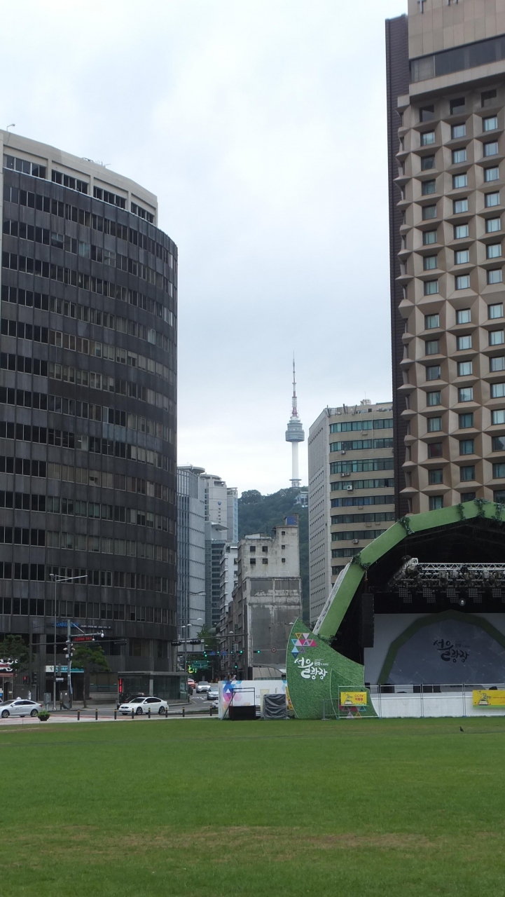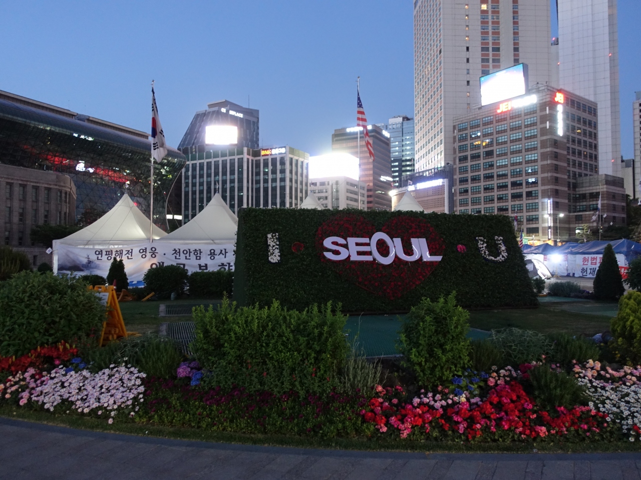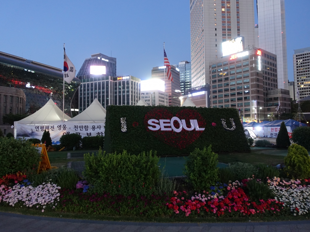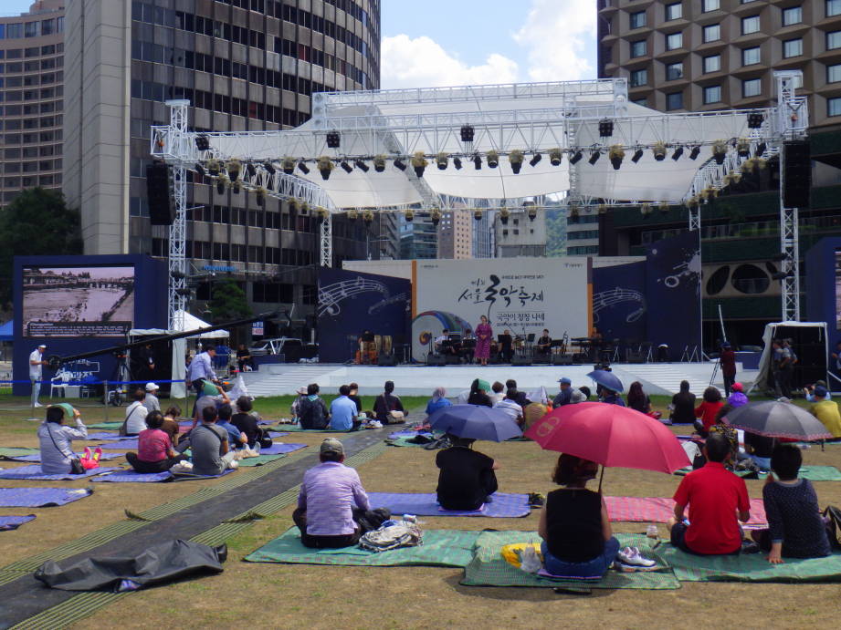 プラザホテルの前にひろがる広場。のどかな散歩の場所でもある