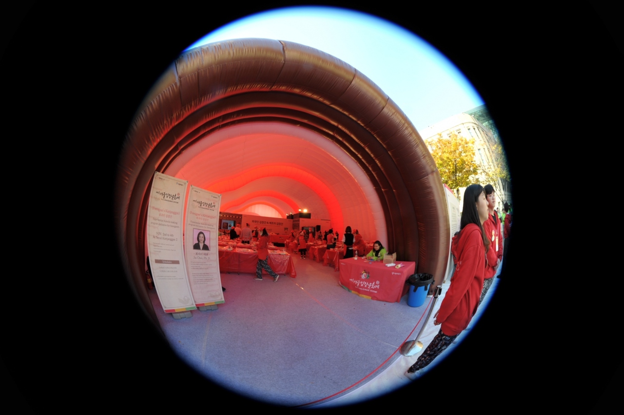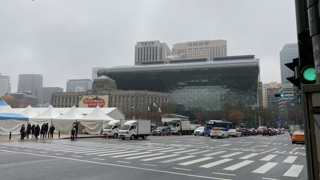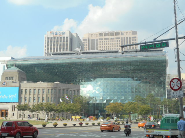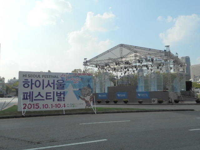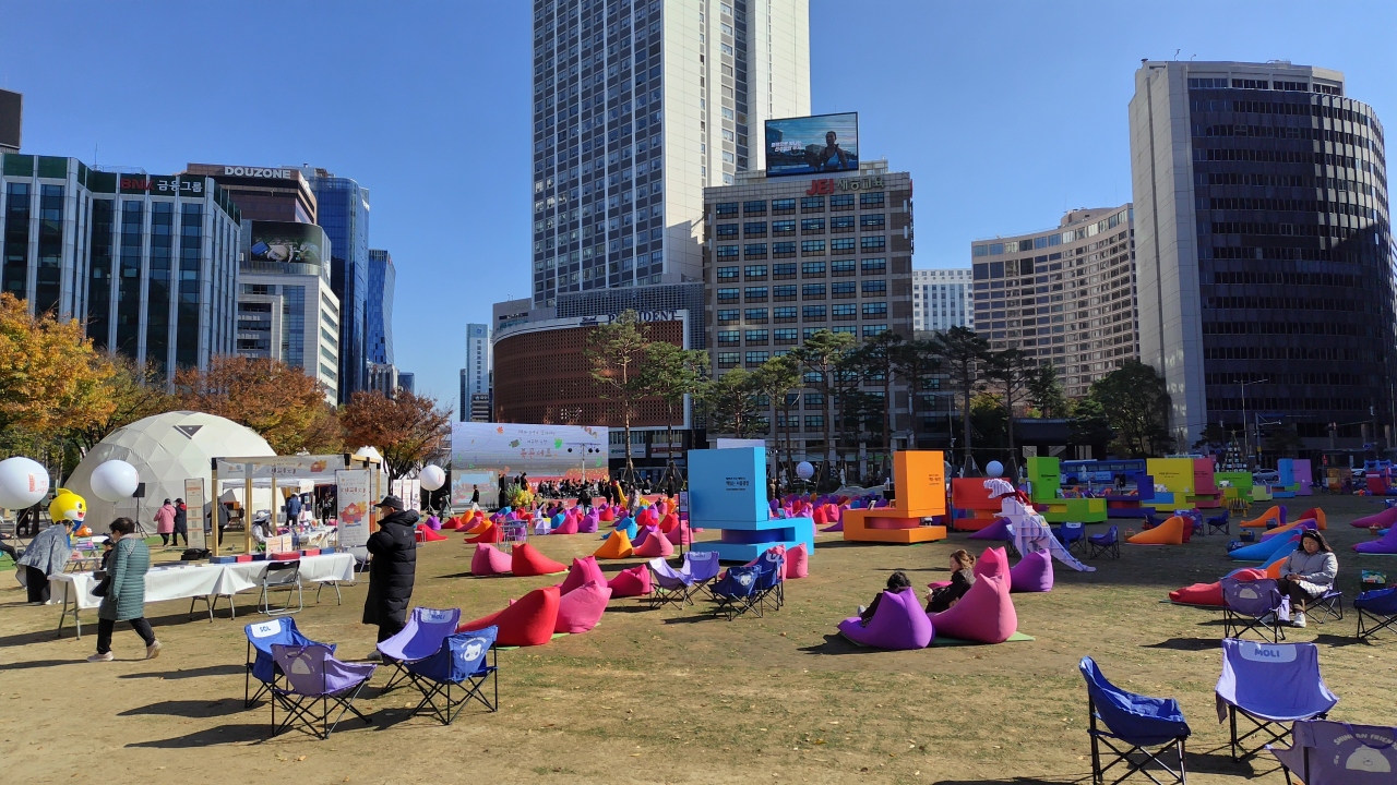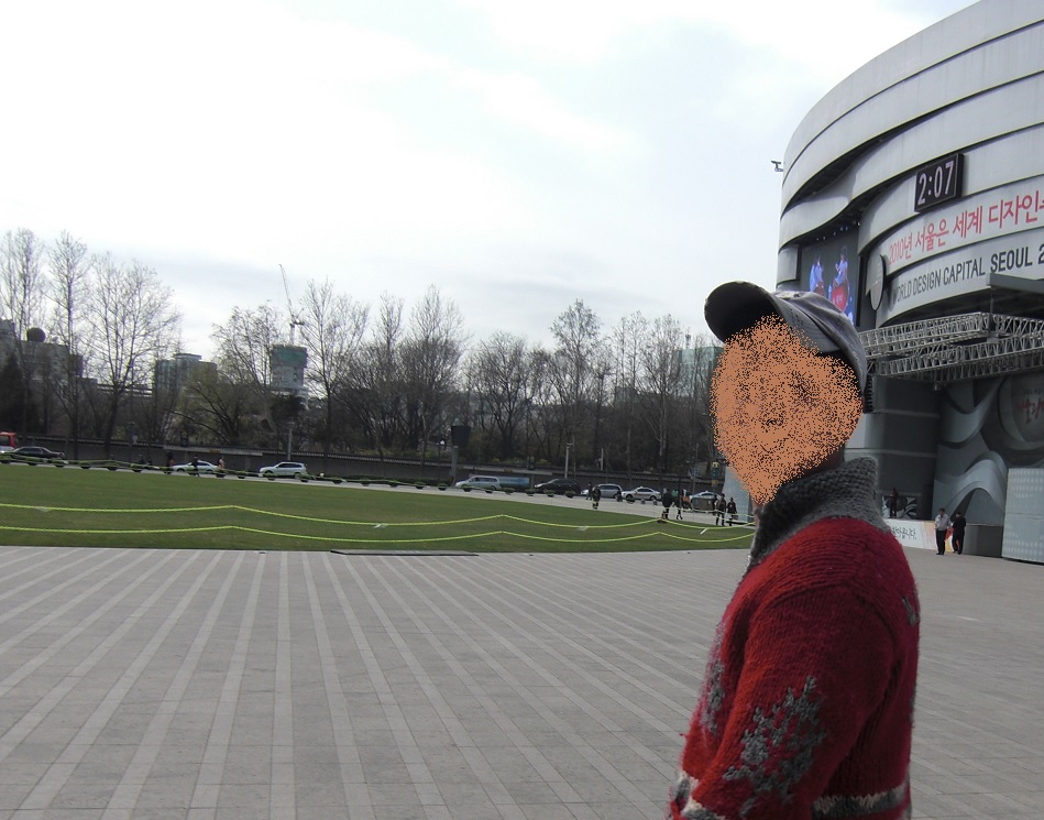 プラザホテルの前にひろがる広場。のどかな散歩の場所でもある