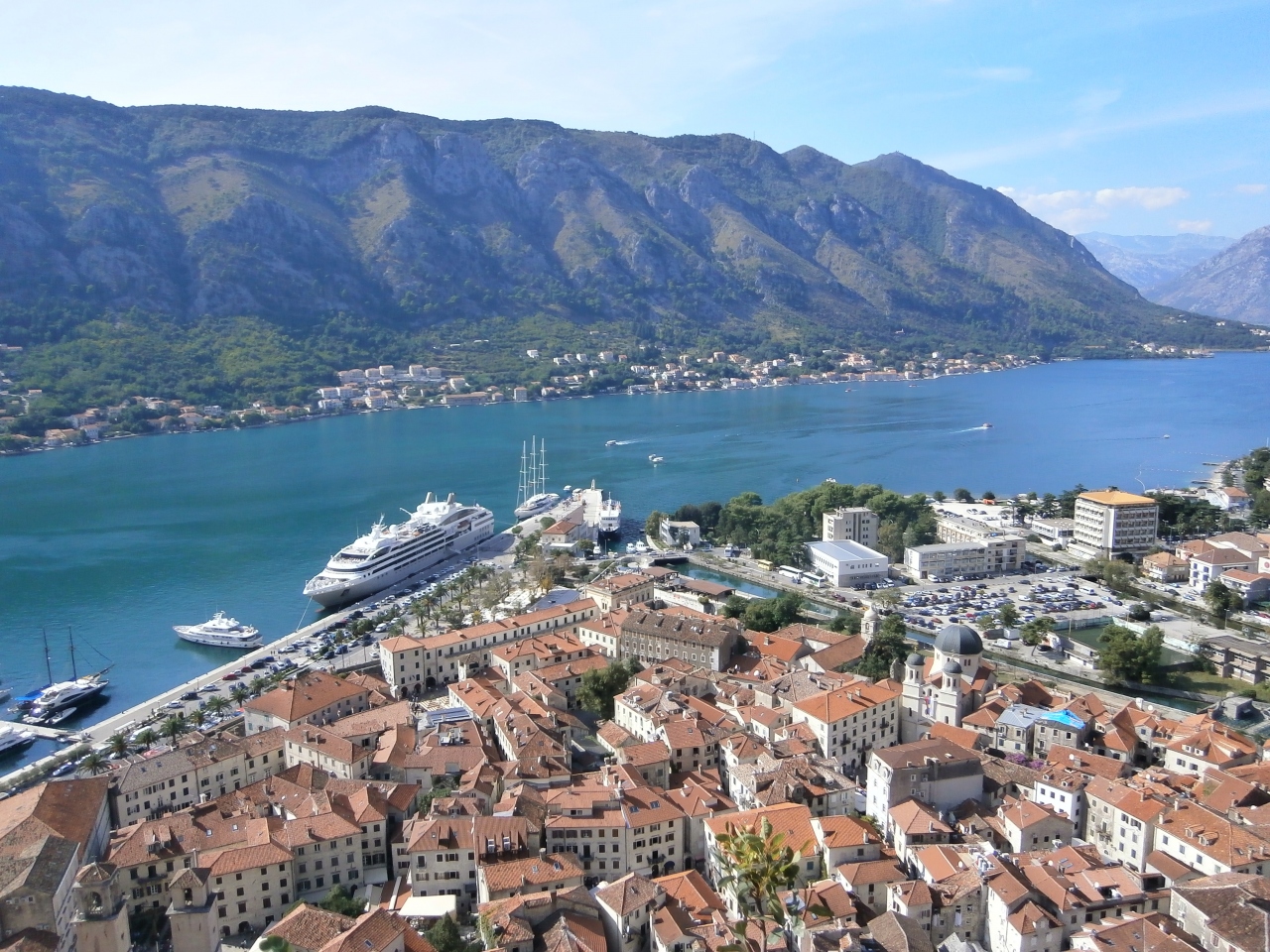 山頂まで連なる堅固な城壁。なぜか謎の人形がお出迎え。