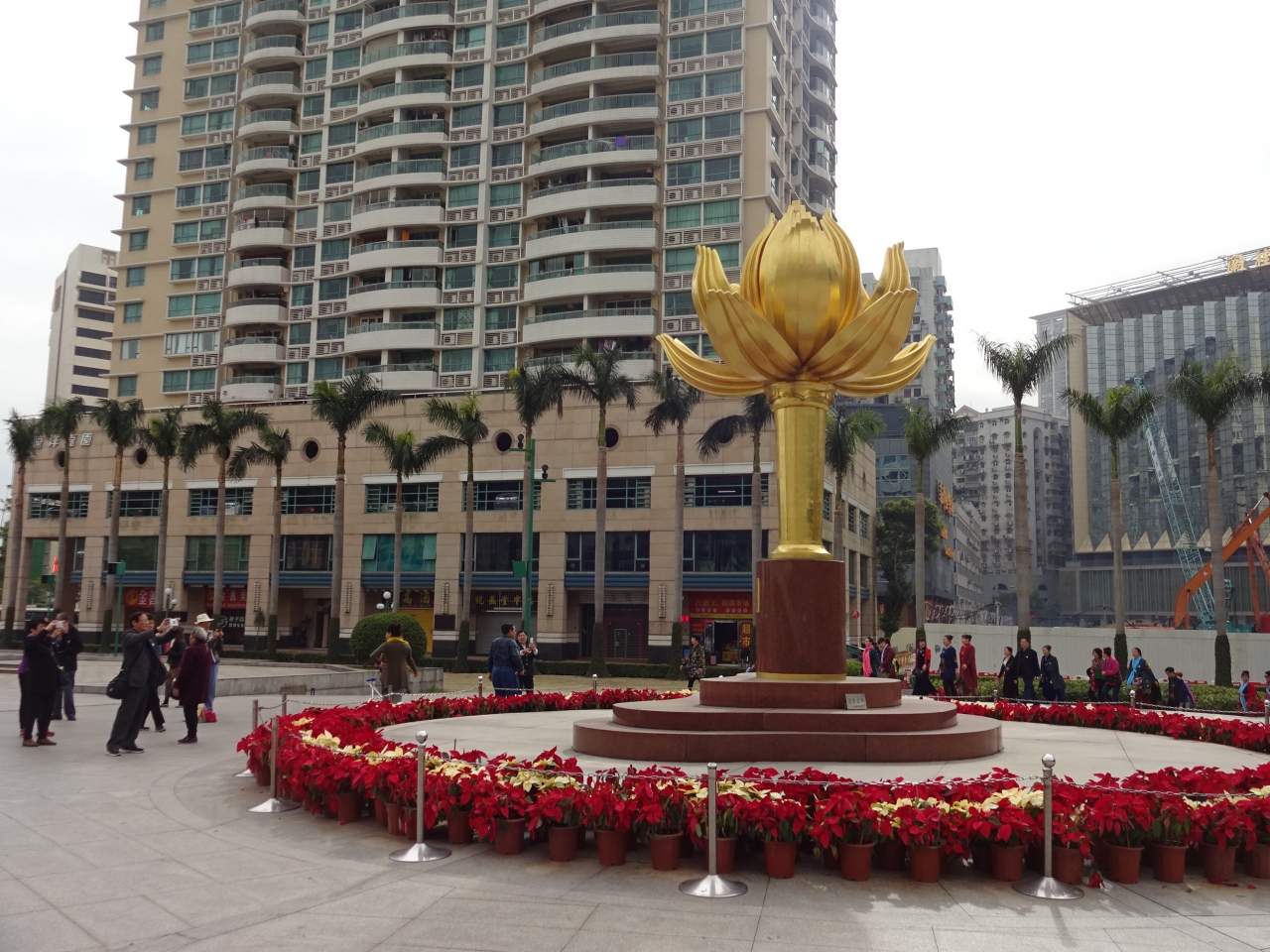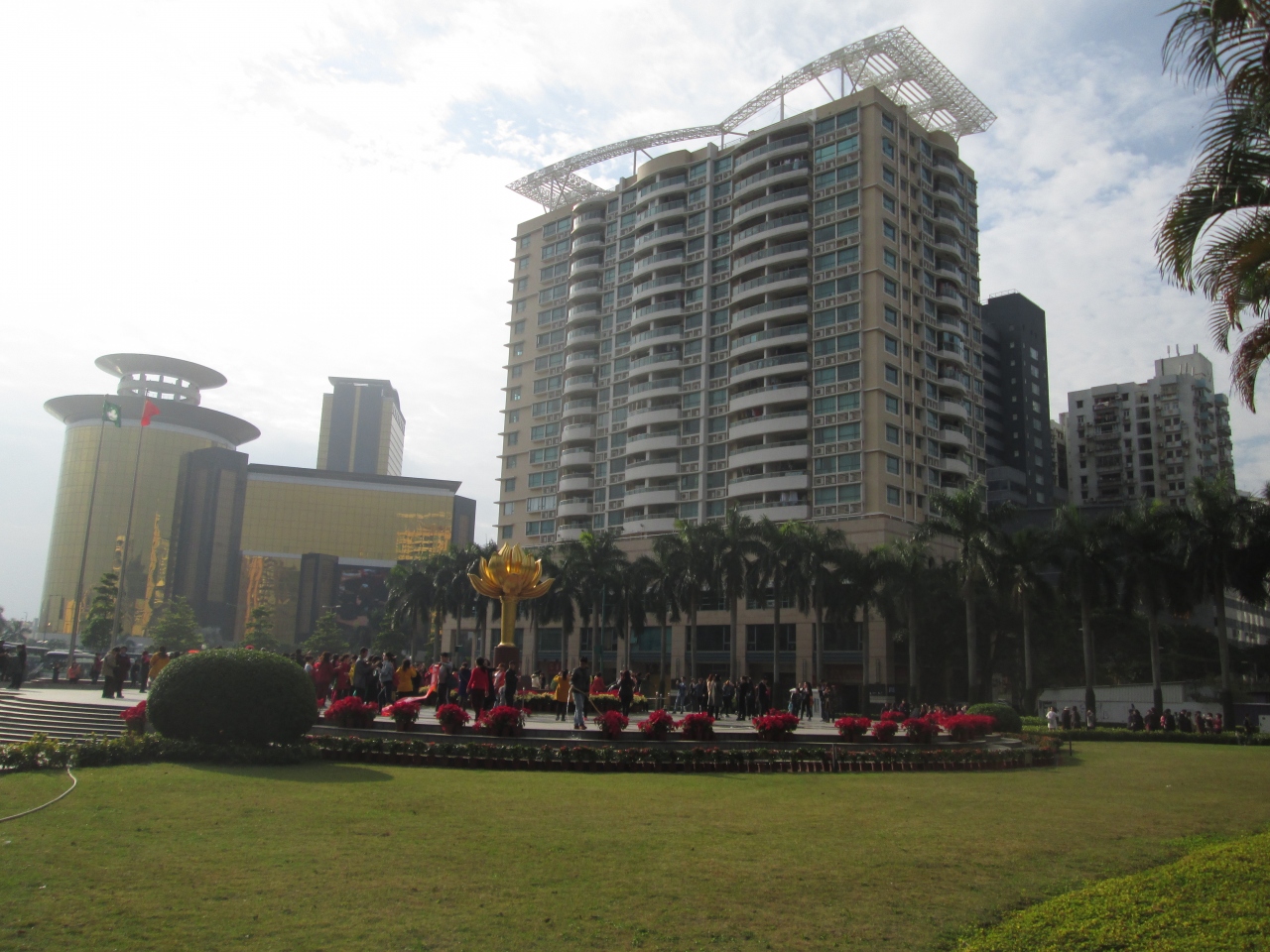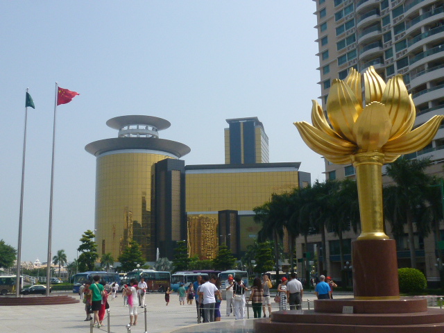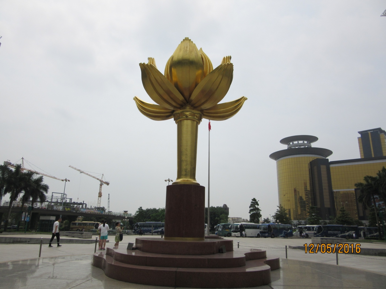 この広場は都市公園でマカオがポルトガル政府より領土を返還されたのを記念してマカオの未来の繁栄を願って造られた黄金の巨大な蓮のオブジェが中央に配置されてます。