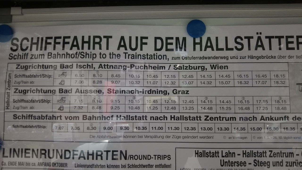 ハルシュタット船~電車の時刻表