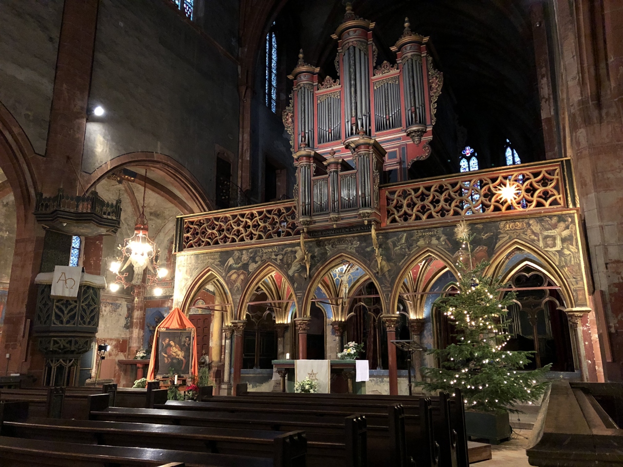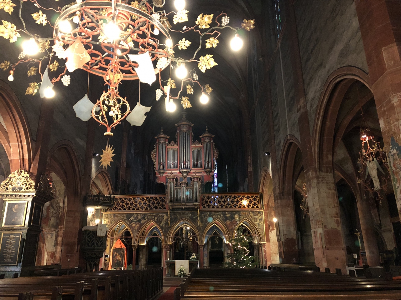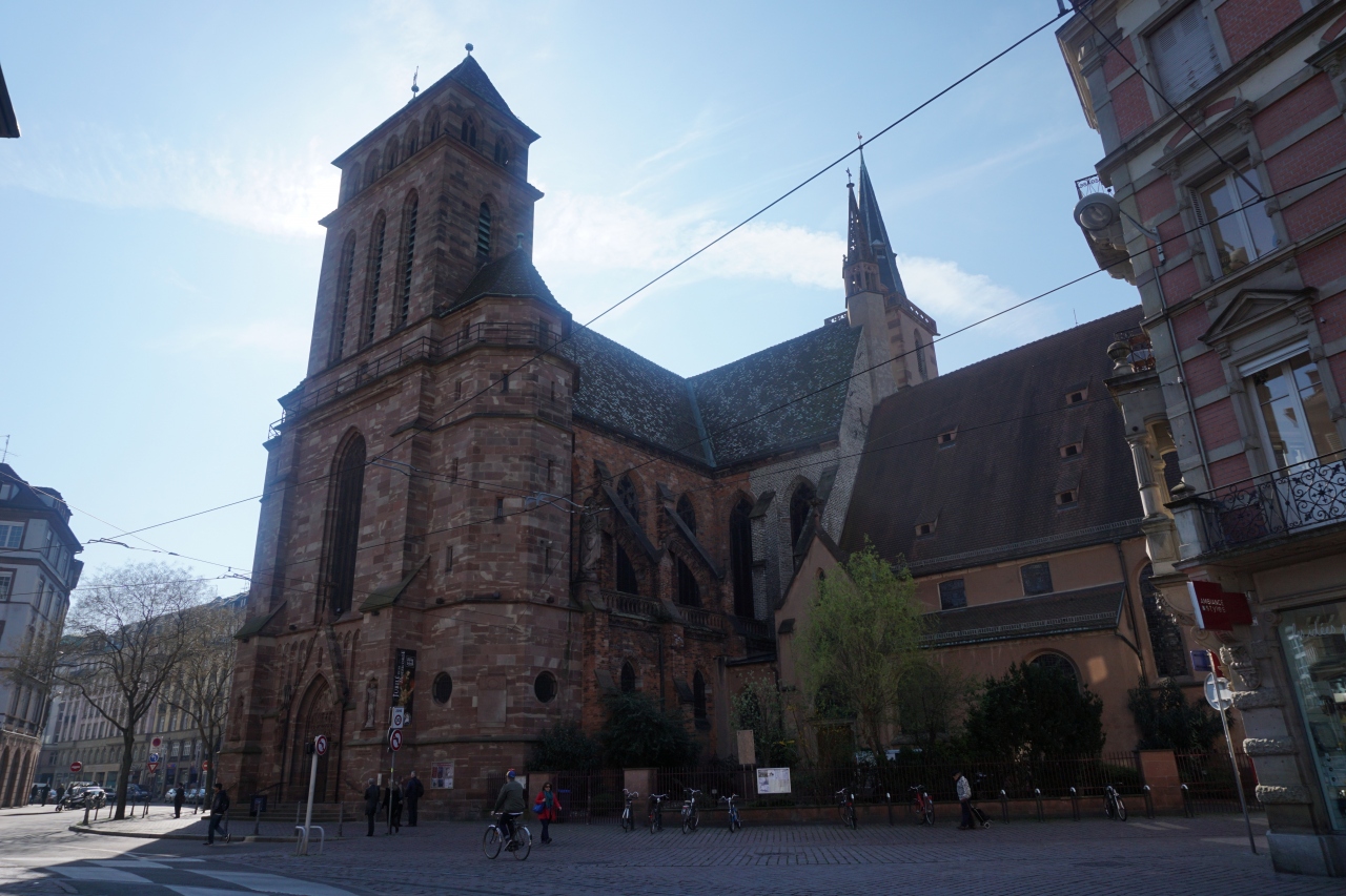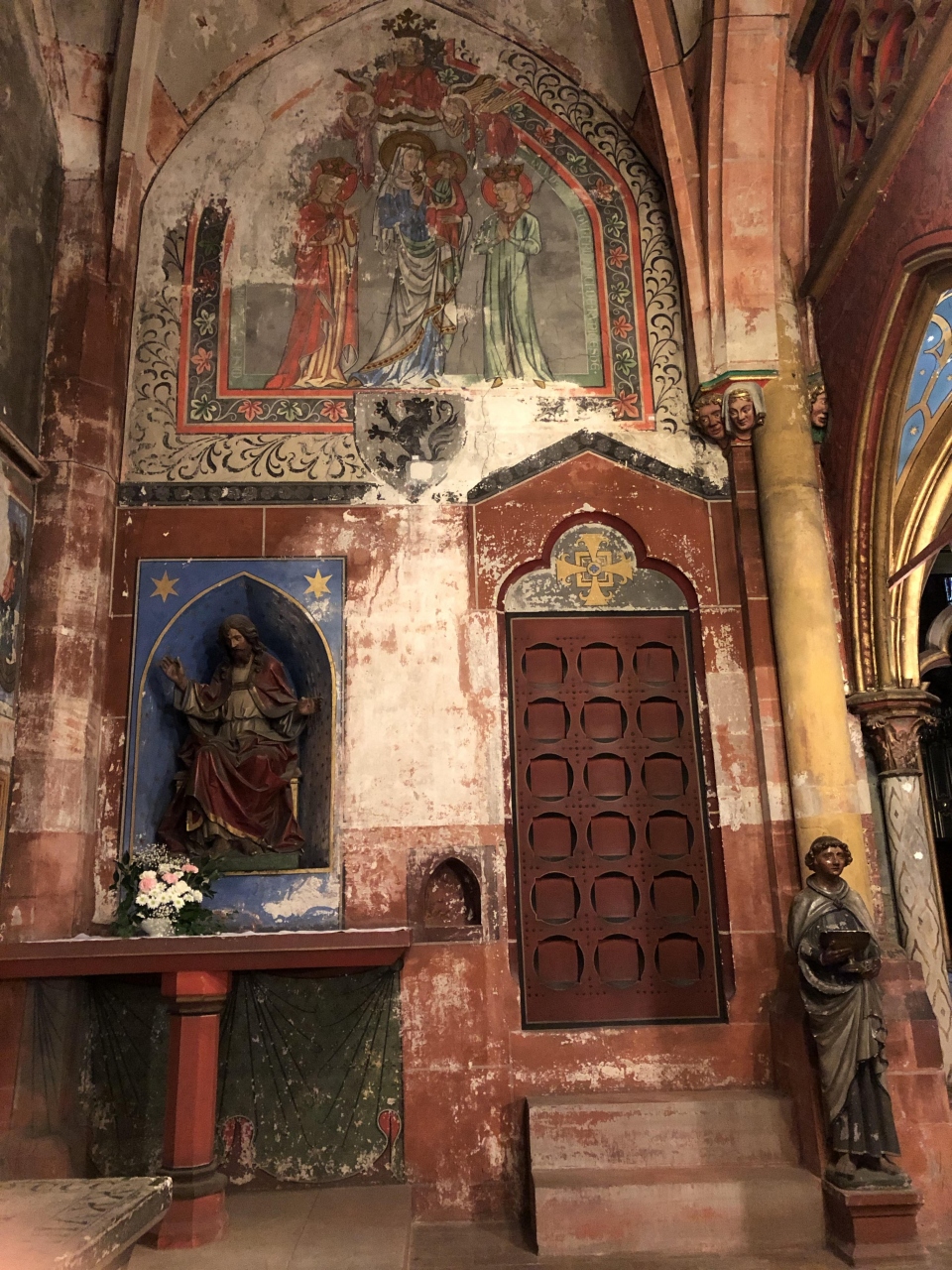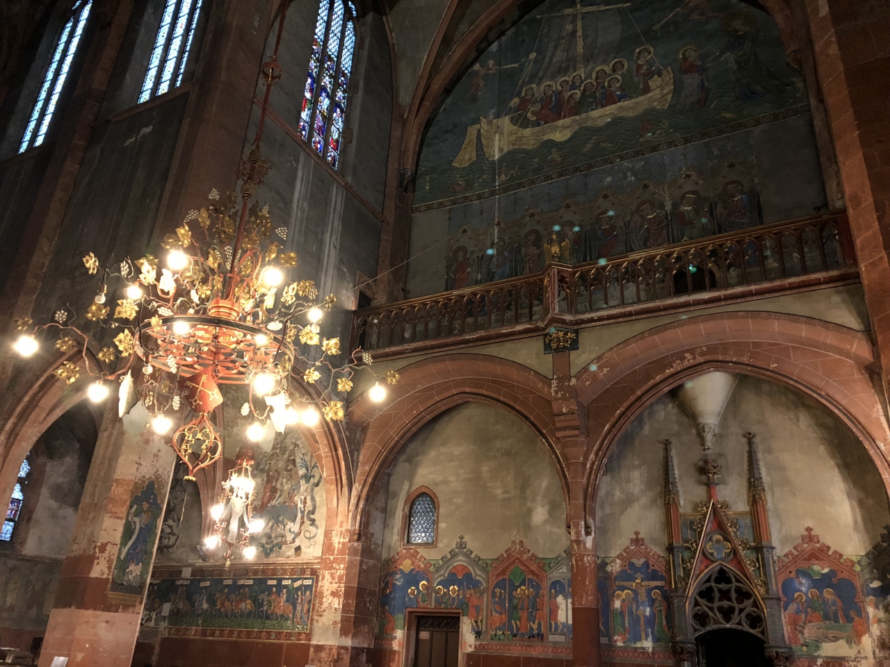 ヨーロッパのいろいろな国で数々の教会を見てきましたがこういう作りの所は珍しいです。ストラスブールに関してあまり知識もなく来... 続きを読むて大聖堂だけでも満足してたのですが、こちらの口コミを見て本当かな?と思い訪問。時間帯や天気のせいもあってか薄暗くひと気も無く寂れているような雰囲気と外観でしたが中に入ってびっくりです。派手とは違うけれど鮮やかで迫力のある色使いに内装、作り。どこからどう見て良いかと思っていたらいろいろな言語のガイドまで置いてあり、日本語が!日本語のものはあまりないのに、嬉しいです。その紙を手に順に見て回りました。でも書かれていないちょっとした照明や飾りも全て素敵でした。中庭は少し寂しい感じもしましたがそれもまた良し。中にはスタッフの方がいますが特に何か言ってくるでもなく自由に存分に見て回れるのが良いです。大聖堂には大聖堂の良さがあって素敵ですがこちらはまた別の趣がありかなり素敵で好きです。 閉じる