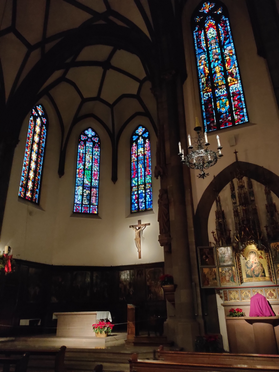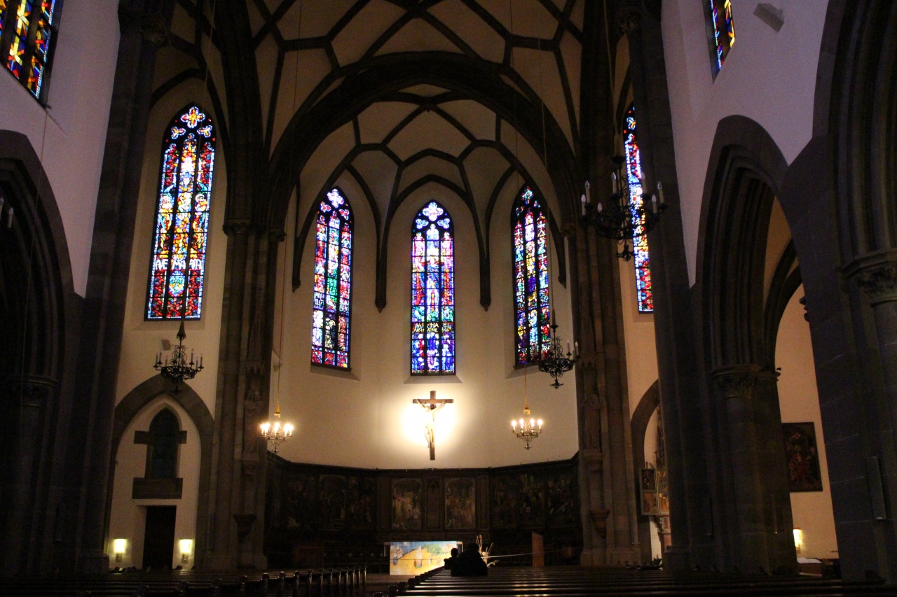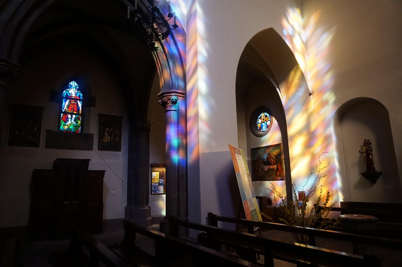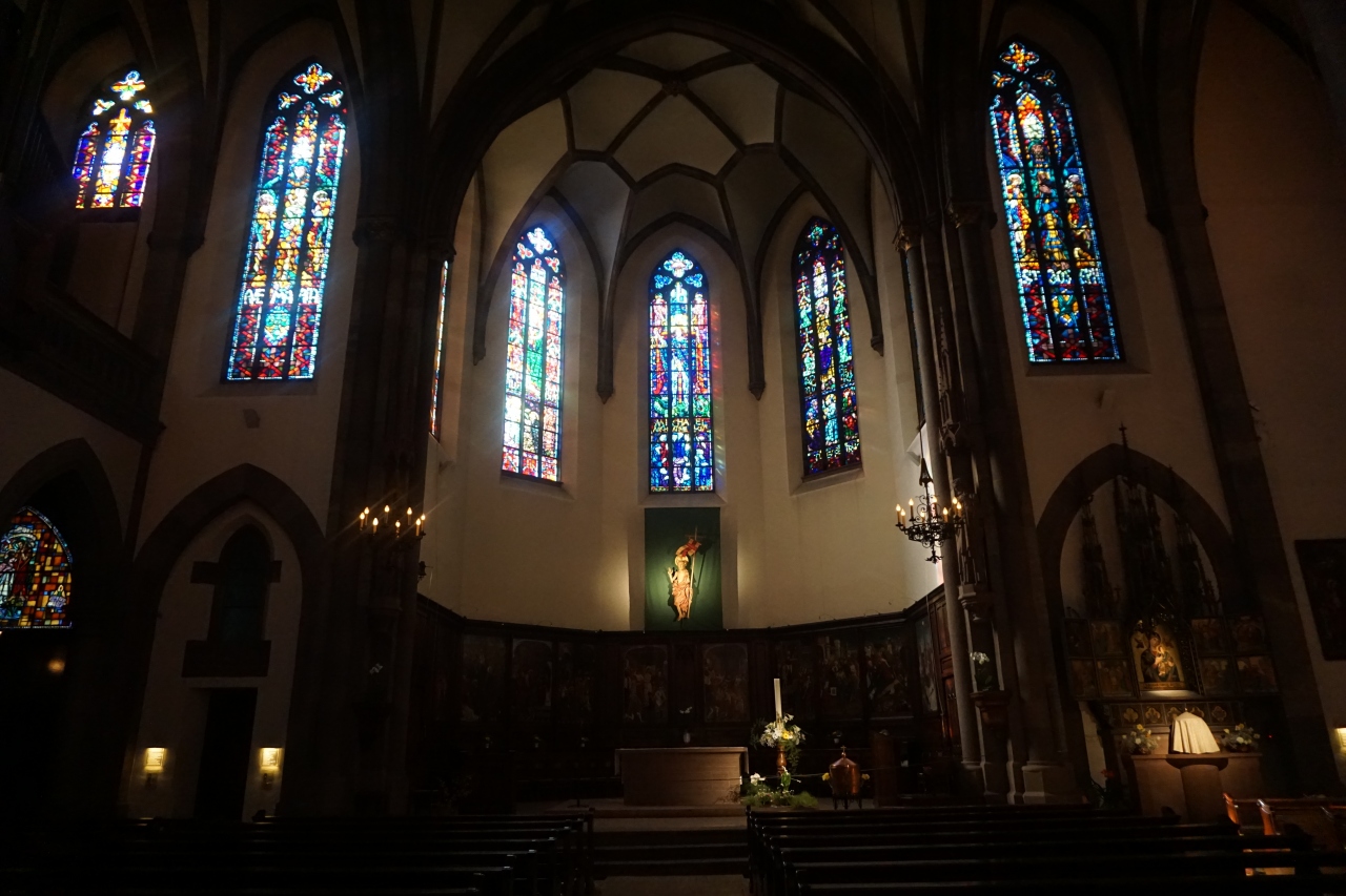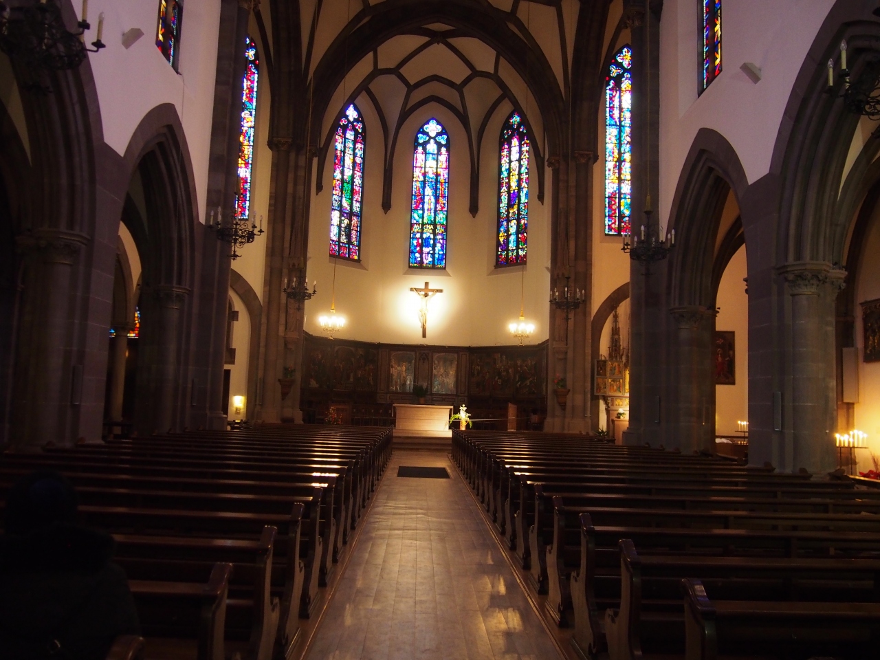 ヨーロッパのいろいろな国で数々の教会を見てきましたがこういう作りの所は珍しいです。ストラスブールに関してあまり知識もなく来... 続きを読むて大聖堂だけでも満足してたのですが、こちらの口コミを見て本当かな?と思い訪問。時間帯や天気のせいもあってか薄暗くひと気も無く寂れているような雰囲気と外観でしたが中に入ってびっくりです。派手とは違うけれど鮮やかで迫力のある色使いに内装、作り。どこからどう見て良いかと思っていたらいろいろな言語のガイドまで置いてあり、日本語が!日本語のものはあまりないのに、嬉しいです。その紙を手に順に見て回りました。でも書かれていないちょっとした照明や飾りも全て素敵でした。中庭は少し寂しい感じもしましたがそれもまた良し。中にはスタッフの方がいますが特に何か言ってくるでもなく自由に存分に見て回れるのが良いです。大聖堂には大聖堂の良さがあって素敵ですがこちらはまた別の趣がありかなり素敵で好きです。 閉じる