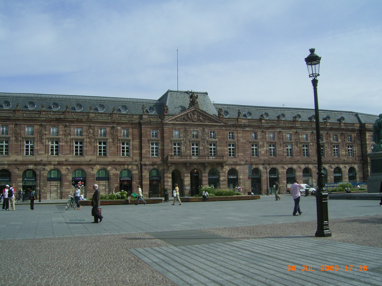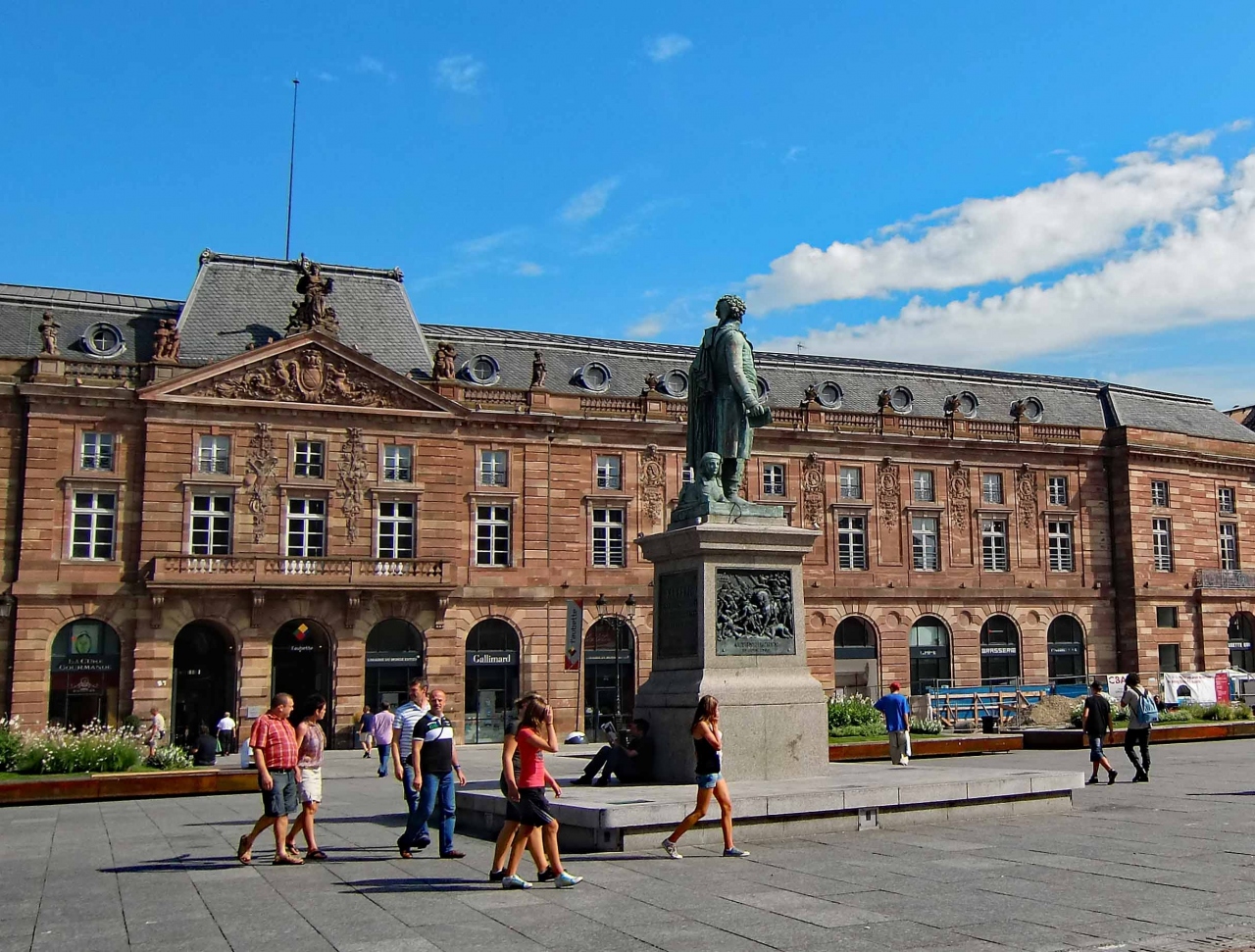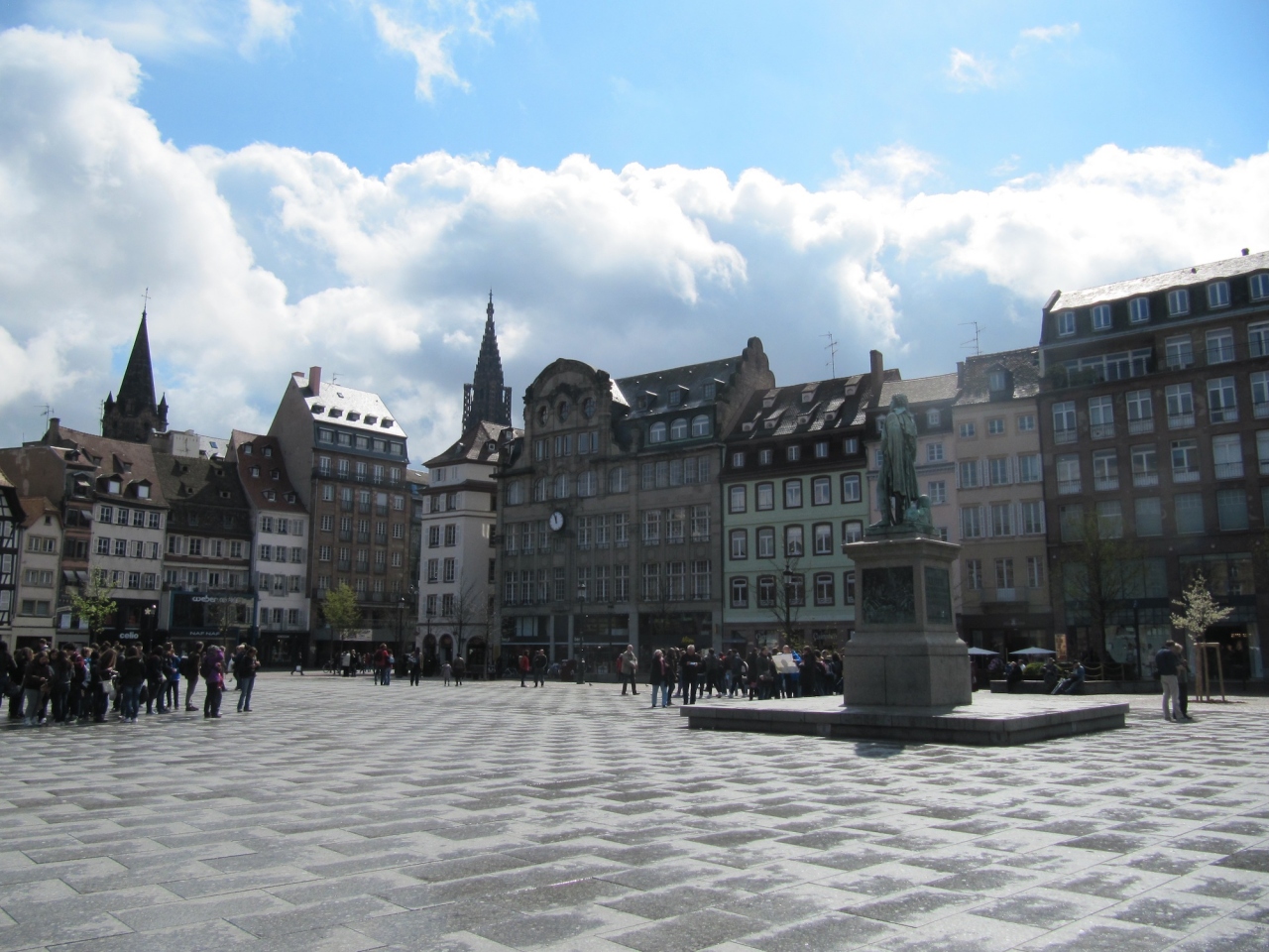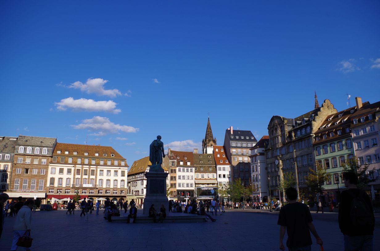 運河に囲まれた旧市街にある広場で、ストラスブール大聖堂のすぐ近くです。クレベール広場(Place Kleber)中心にある... 続きを読む銅像は、フランス革命(1792年)やナポレオンのエジプト遠征(1798-99)で活躍したフランスの将軍クレベール(Jean-Baptiste Klener, 1753-1800)像で、広場の名称の由来となっています。広場は市民や観光客の憩いの場になっています。