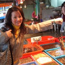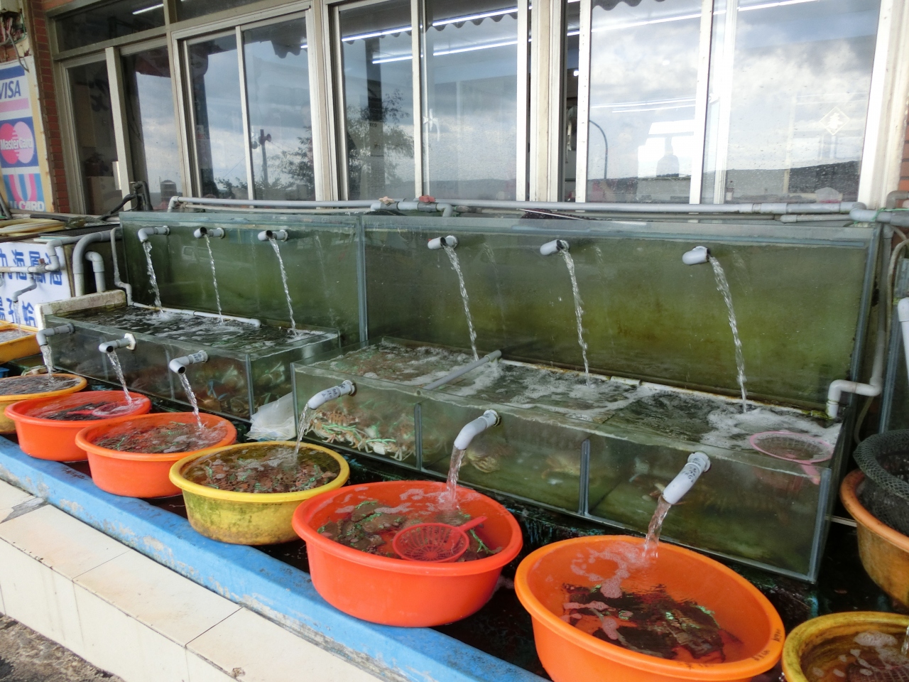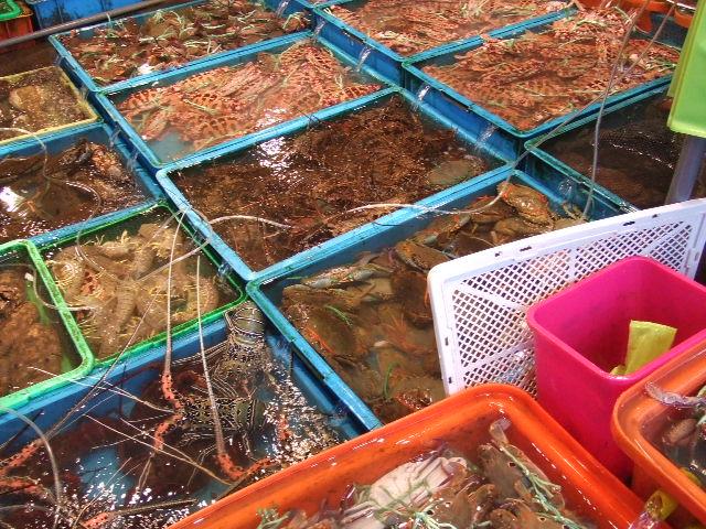 ここには、海鮮店がズラリと軒... 続きを読むを連ね、店前には活きた魚介類が並べられていました。