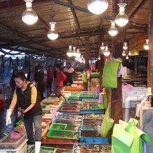 今まで見た中では、取り扱われている魚介類は量、質とも最大でした。