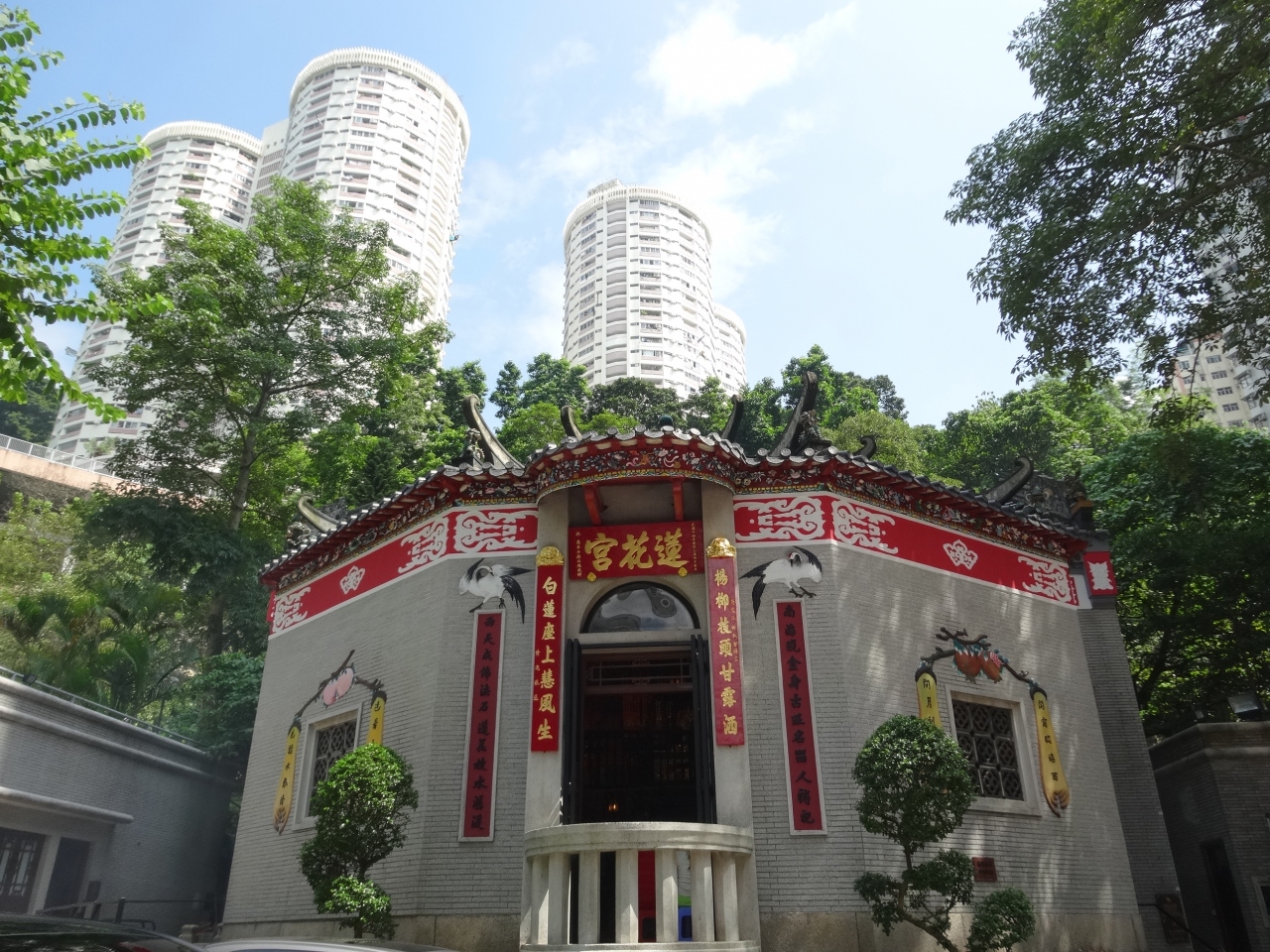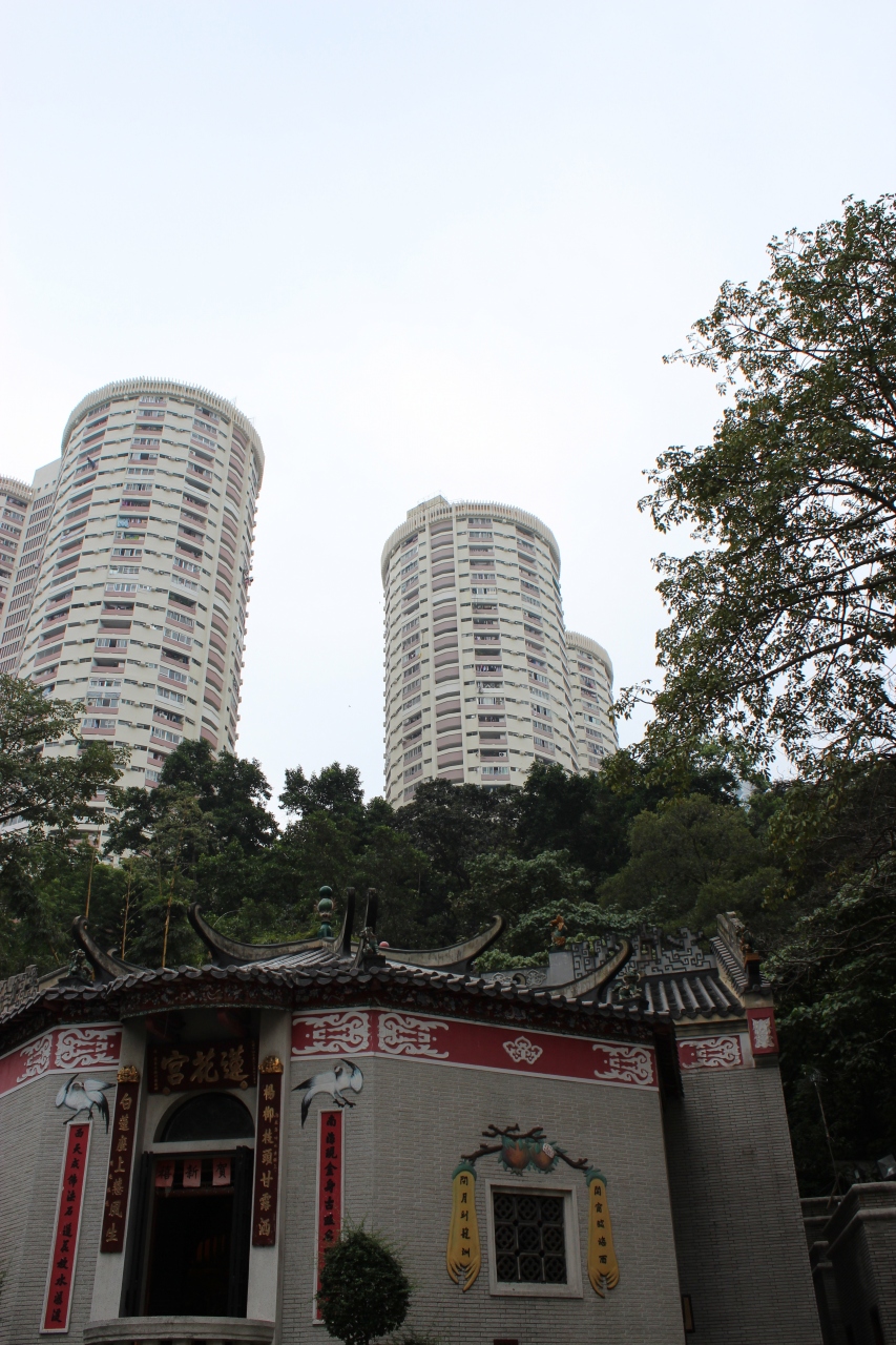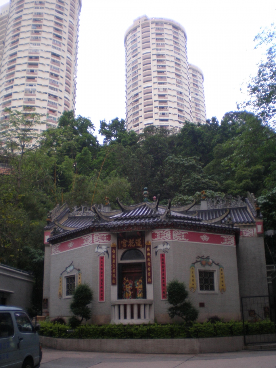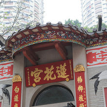 天后駅から銅羅湾道を辿って大坑の街に出る寸前、短い参道の向こうに丘にいただかれて蓮花宮はただずんでいました。