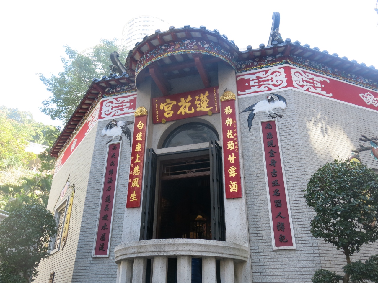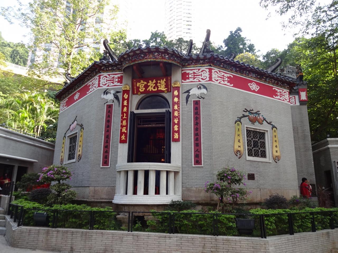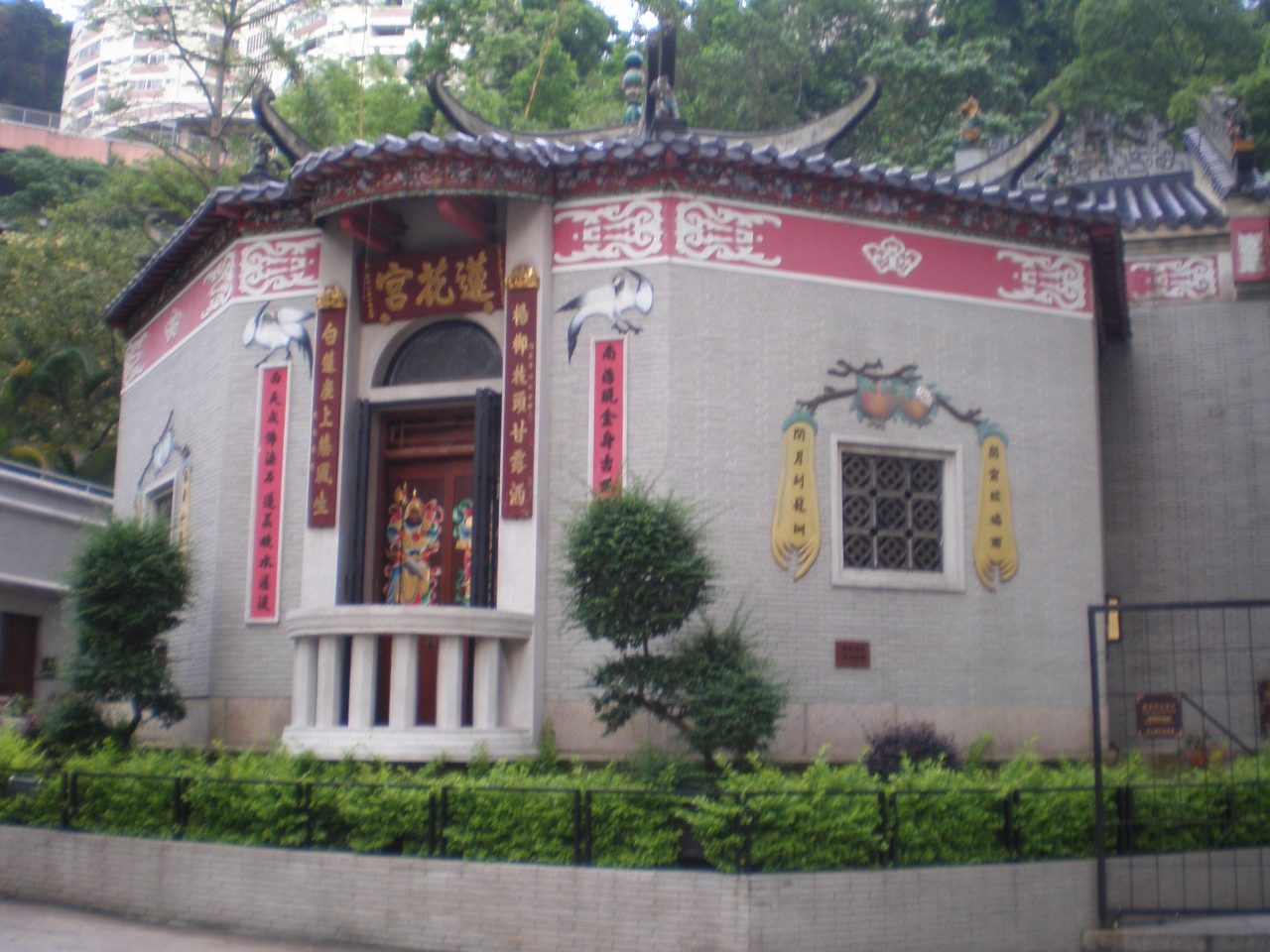天后駅から銅羅湾道を辿って大坑の街に出る寸前、短い参道の向こうに丘にいただかれて蓮花宮はただずんでいました。