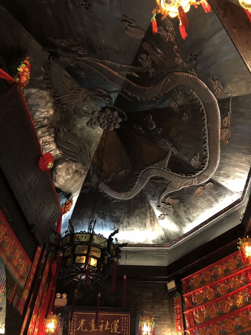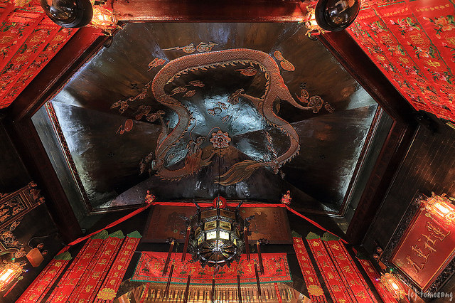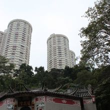 丘と高層フラットを背負ったような建物です。中に入ると、天井の龍を見ることができます。