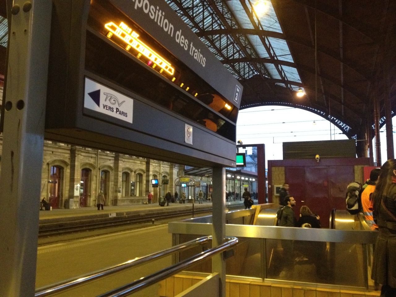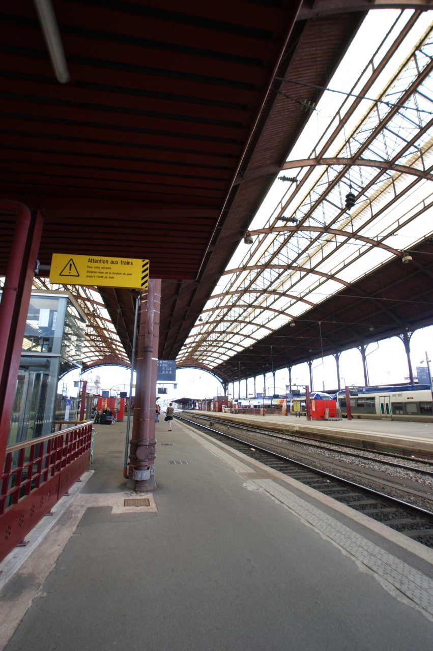 とてもきれいな駅でパリからのTGVなどもとまりますし、地下におりるとトラム(路面電車)の駅があります。ヨーロッパを縦断する... 続きを読むTGVの車両は長いですが、駅の表示が結構不親切、ですし、駅員もあんまりいません。TGV指定席かっていたのですが、途中で移動できない連結のタイプの電車でした。ここでのればいいのかと周りのひともよくわからず、のれましたが、結果座れませんでした。指定チケットもっていて、ほかのエリアはあいていいても、移動できないと訴えても、ここに座るなら別料金といわれました。ほんと乗るときにこの車両でいいのか把握しないと大変なことになると実感しました。乗ってから移動すればいいとか、途中で移動できるとはなくて、そのままパリまでノンストップでした。 閉じる