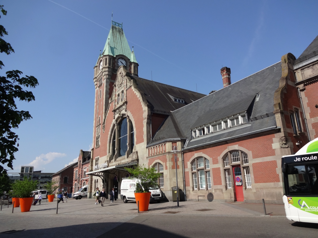 コルマールColmarからベルフォートBelfor行き電車は7:53、8:23、8:53、9:23発などがありMulhouse City乗り換えで1時間〜1:15で行きます。