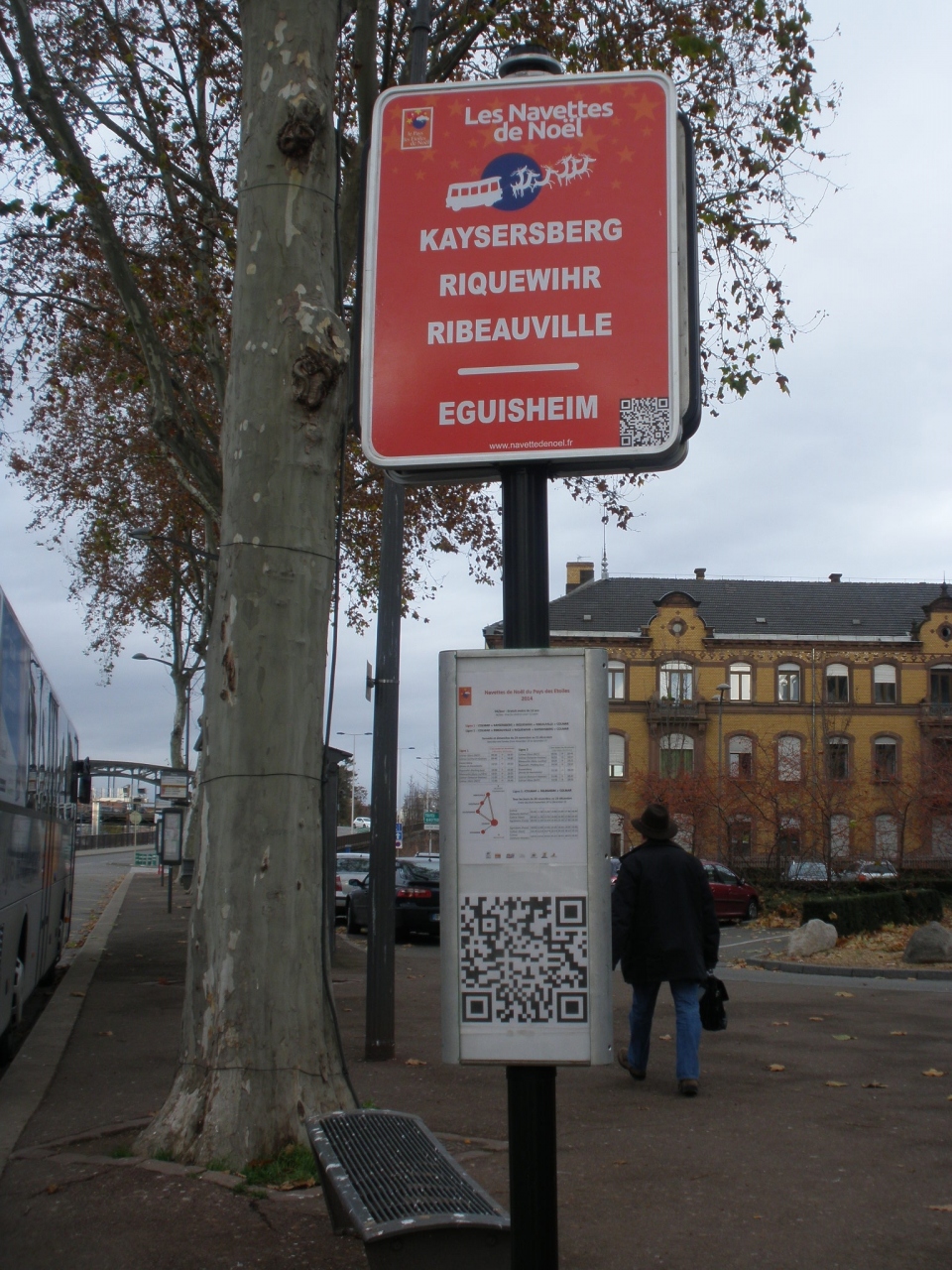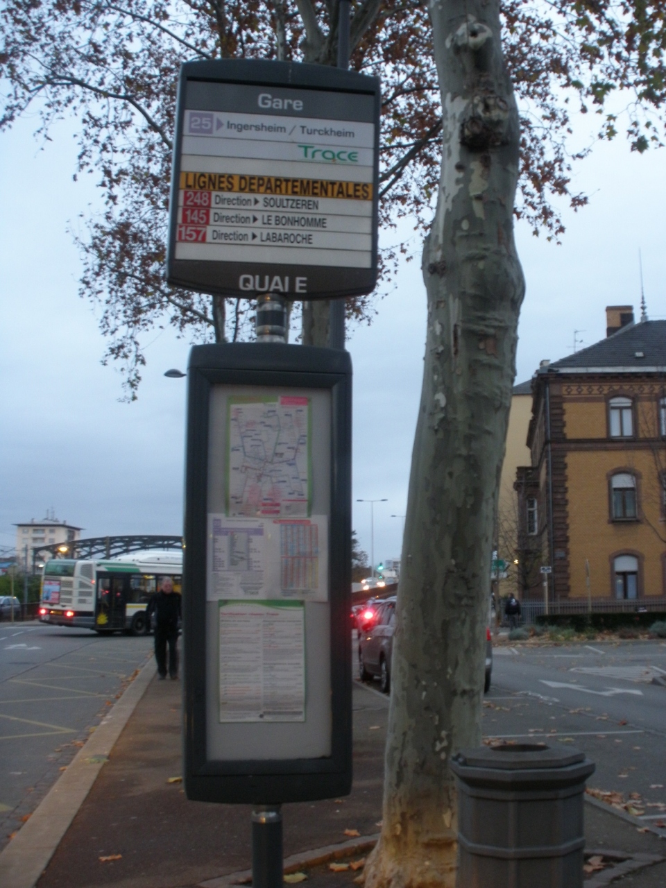 アルザスの各村へ行くバスは駅を出て右側にバス停があります。
