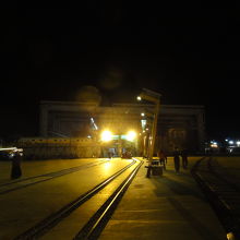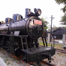 機関車、ホーム、線路などの昔の鉄道の名残を展示
