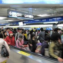 乗り換えのエスカレーターが長い