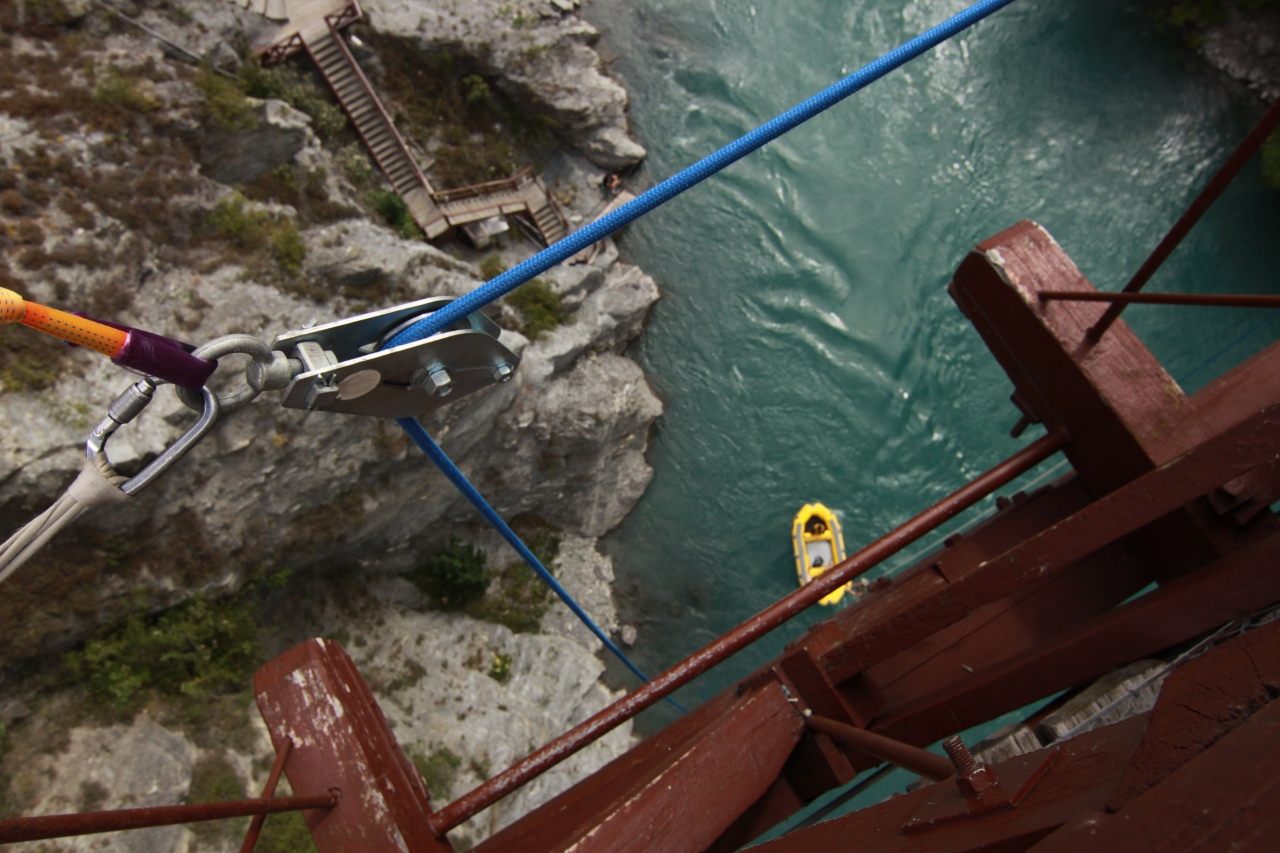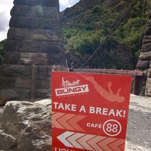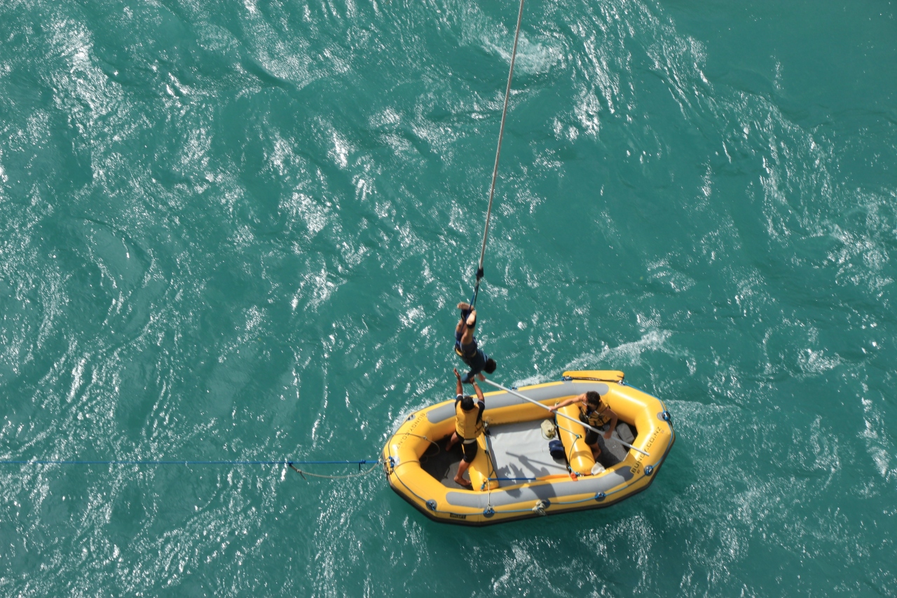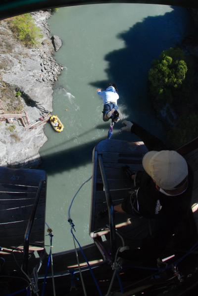 落下地点ではゴムボートが待機。(川まで落ちるわけではない)