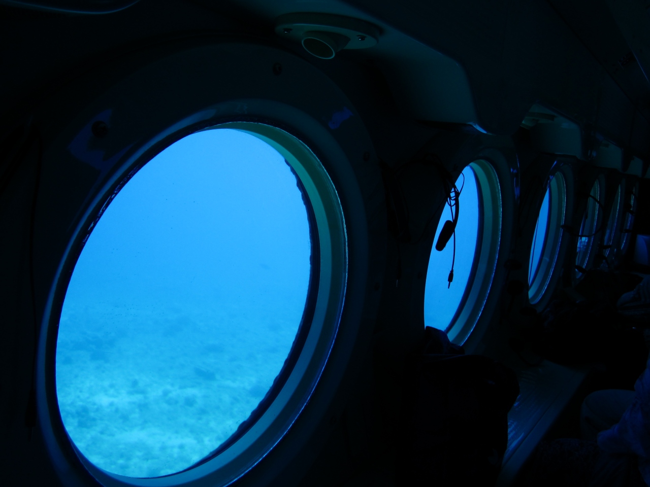 潜水艦内も、およそ一人にひとつの窓が見れるようになっていて、沢山の魚や、魚ようのジャングルジム・飛行機なども海底にって、とっても神秘的でした。