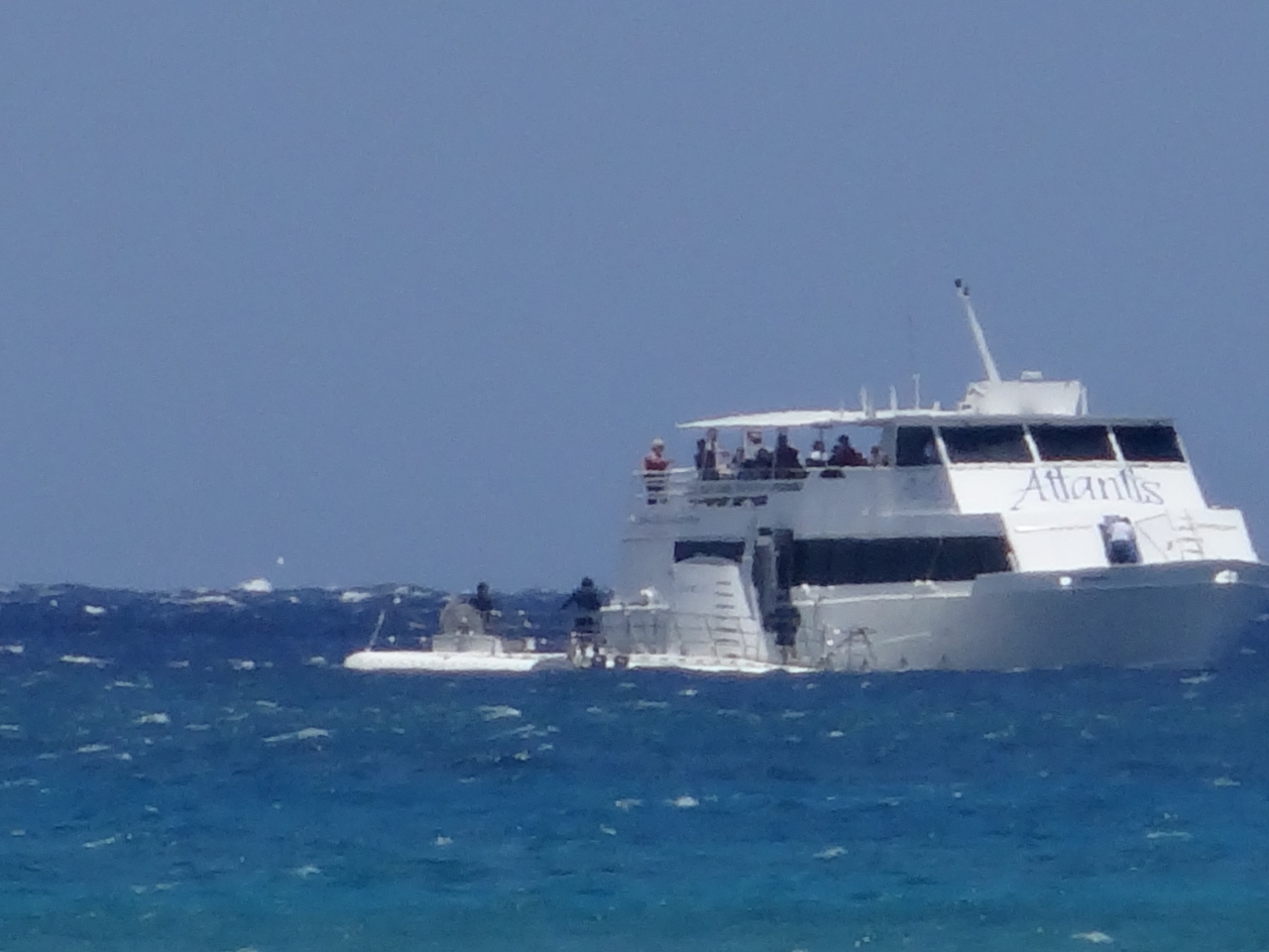 そこで... 続きを読む、中型の船に乗り合わせ、サブマリンが待っている沖合いまで向かいます。