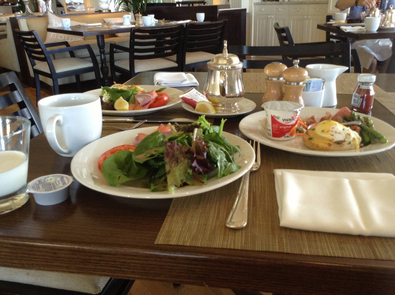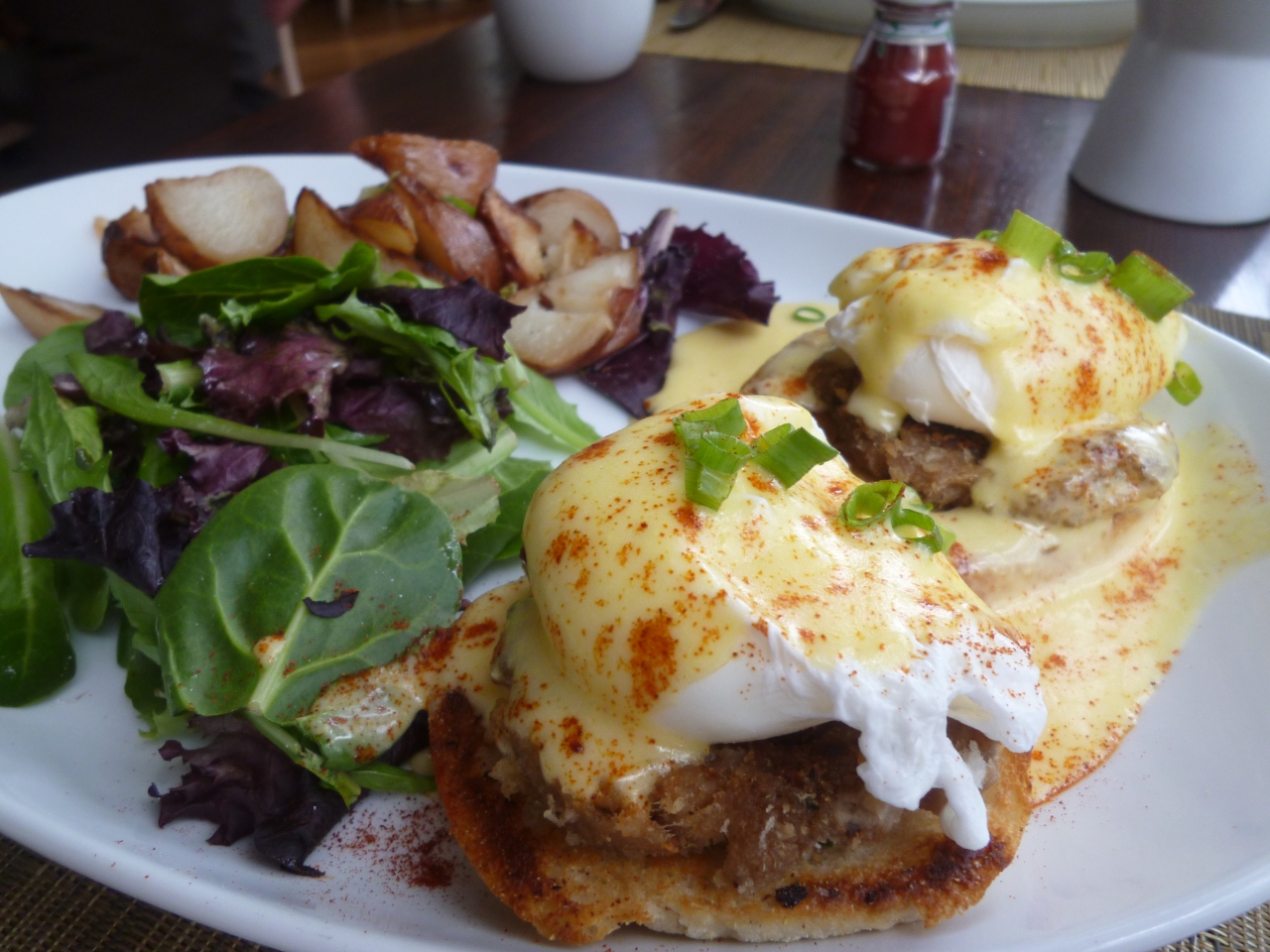 エッグベネディクト、プラス10ドルでランチセットをオーダー