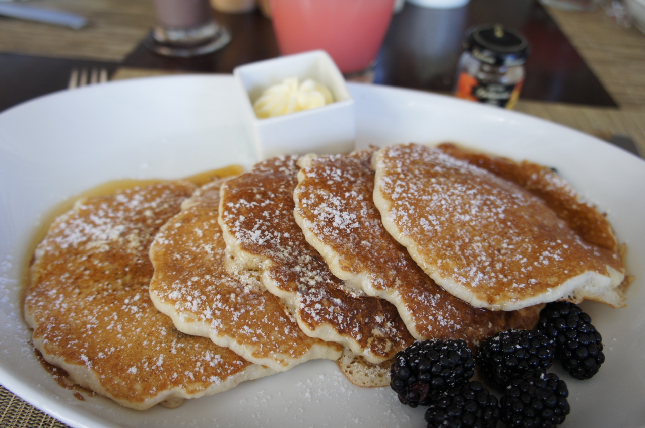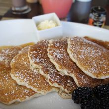隣のテーブルの家族がワッフルとパンケーキを頼んでいたので、両方お願いしたかったのですが食べれないかなぁと思い食べたことのないパンケーキをお願いしました。