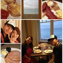 そこからはビーチが見える窓側で、外はまだ肌寒い時間だし、オープンテラスも木などが邪魔してここまでキレイにビーチが見える席は少ないかもしれないと思うくらいでした。