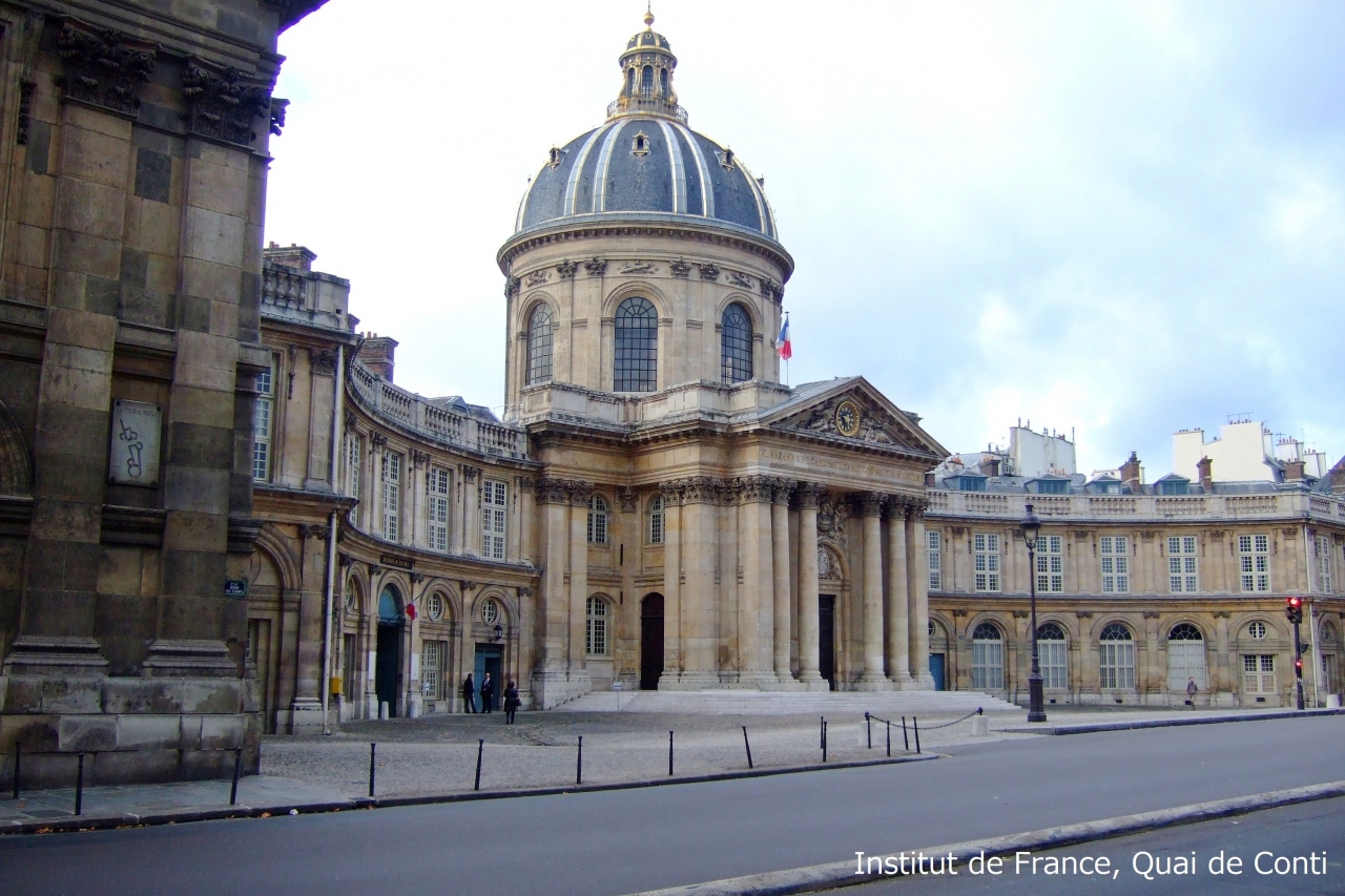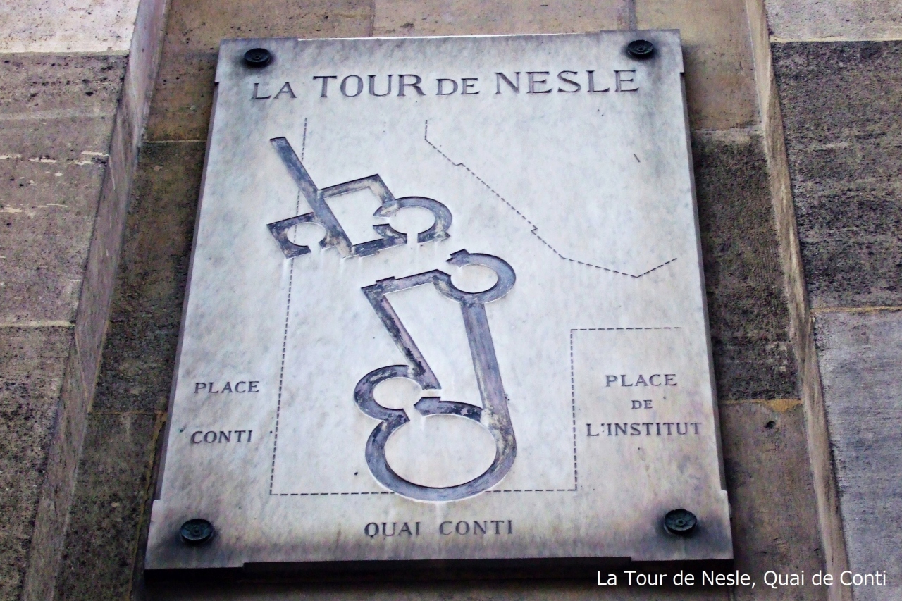 【 フランス学士院 Institut de France 】 を正面に見ると、左側の建物の壁に、ここに城壁時代 ”ネールの塔” があったことの記念版を見ることができるので、建物を見上げてみてくださいね!