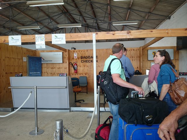 空港ビルは新しくシンプルな造りで、1階にはこぢんまりとした待合スペース、チェックイン・カウンター、それにオフィスと・スペースとお土産屋さん、トイレのみ。