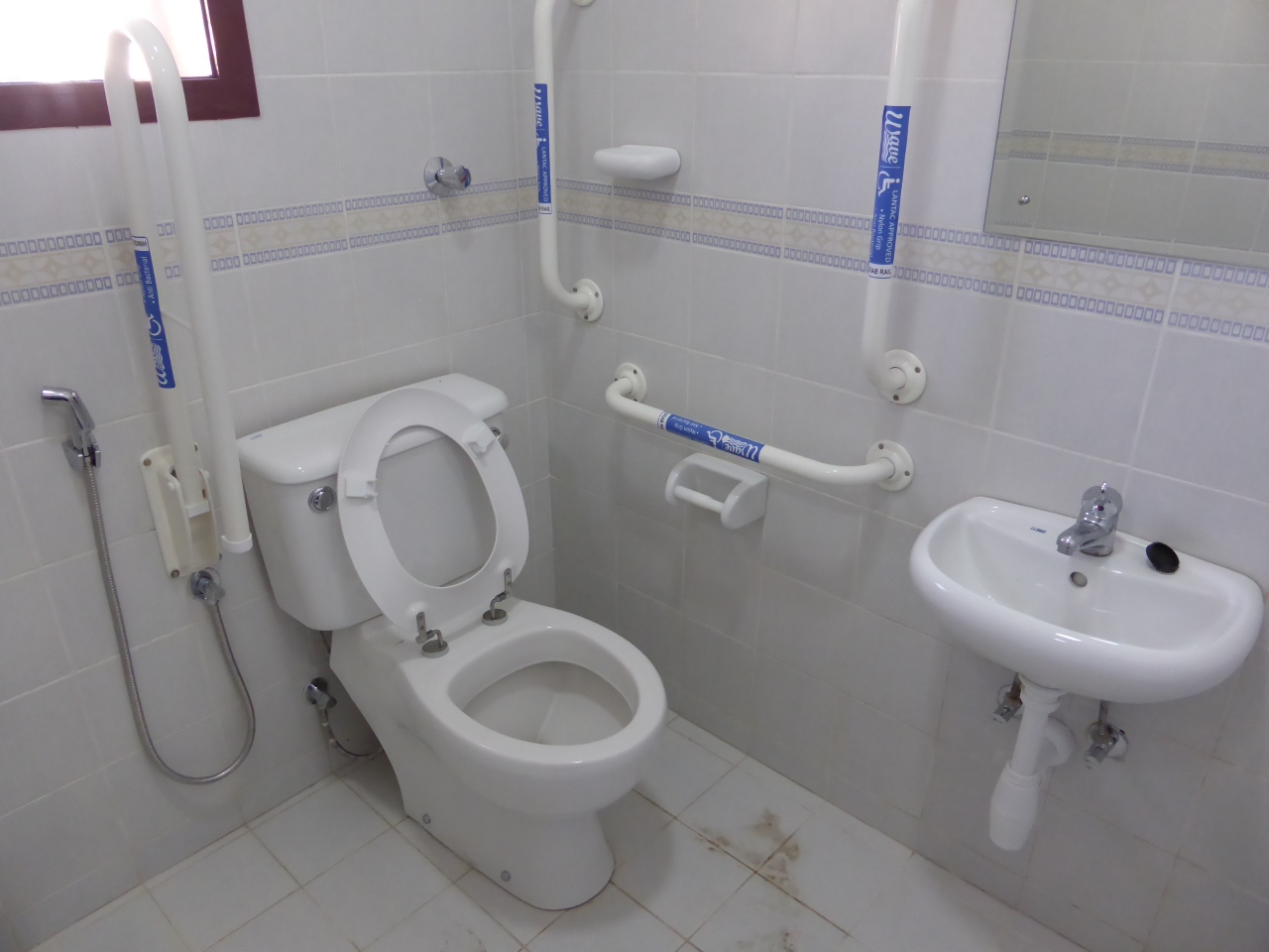 外の建物にオマーンには珍しい洋式トイレあり。無料。