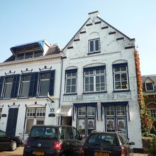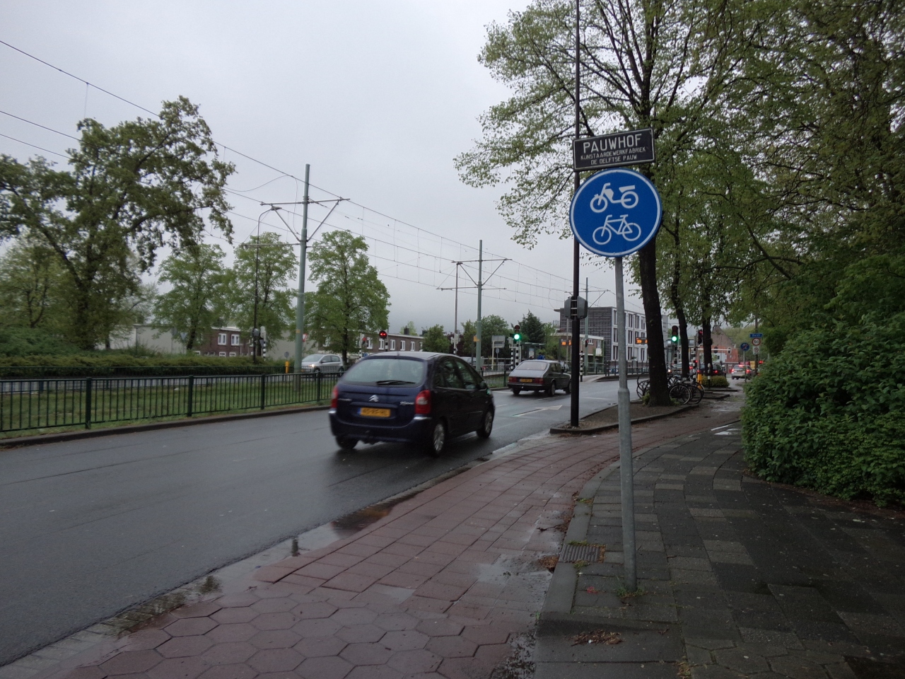 トラムを降りたら、この自転車の標識を目印に曲がる
