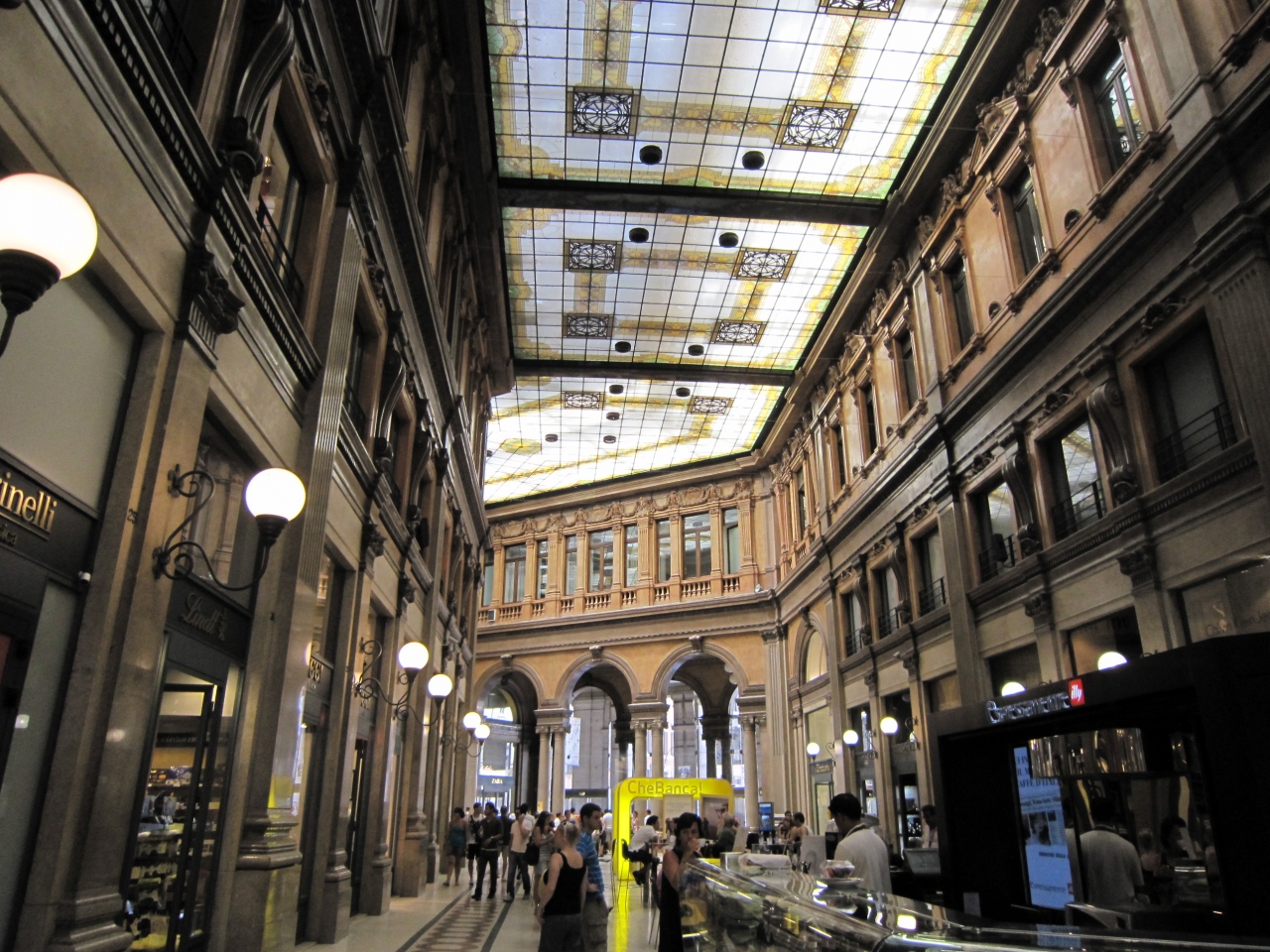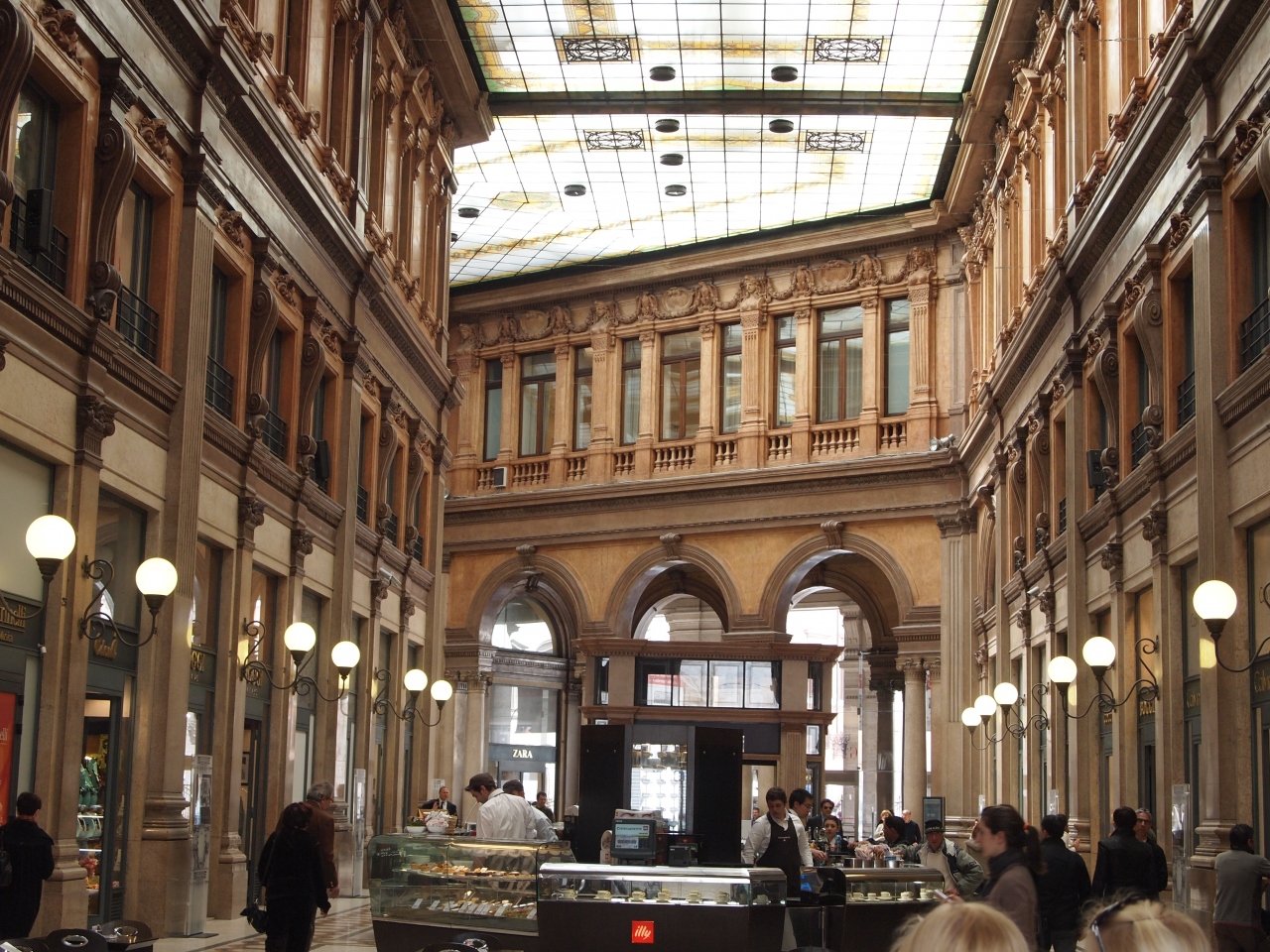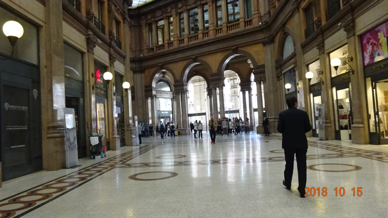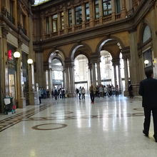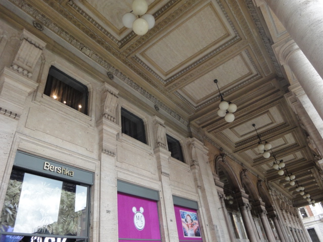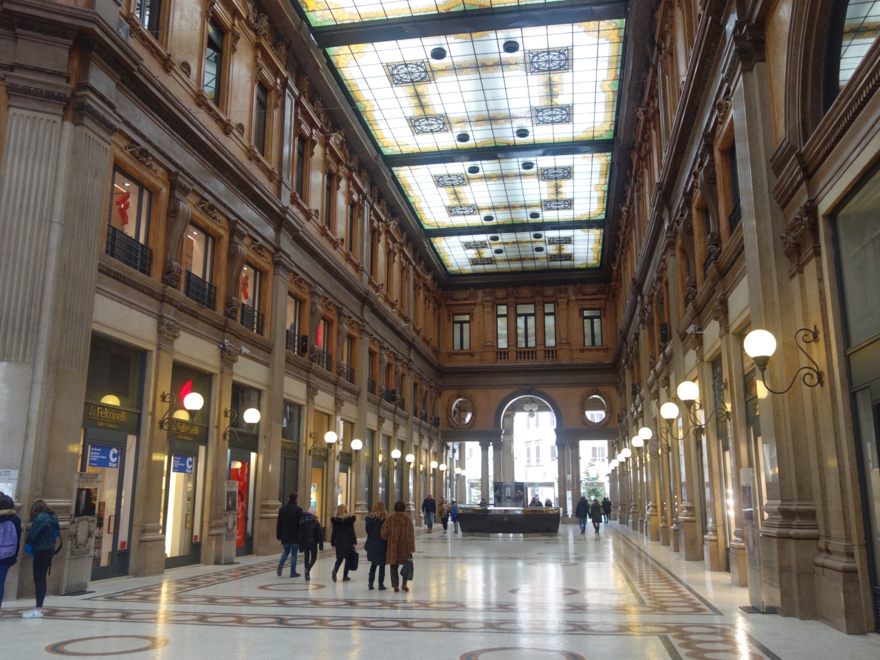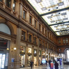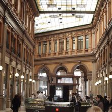 コルソ通りとトリットーネ通りの角にあるガッレリア。天井が高い。雨宿りになる。