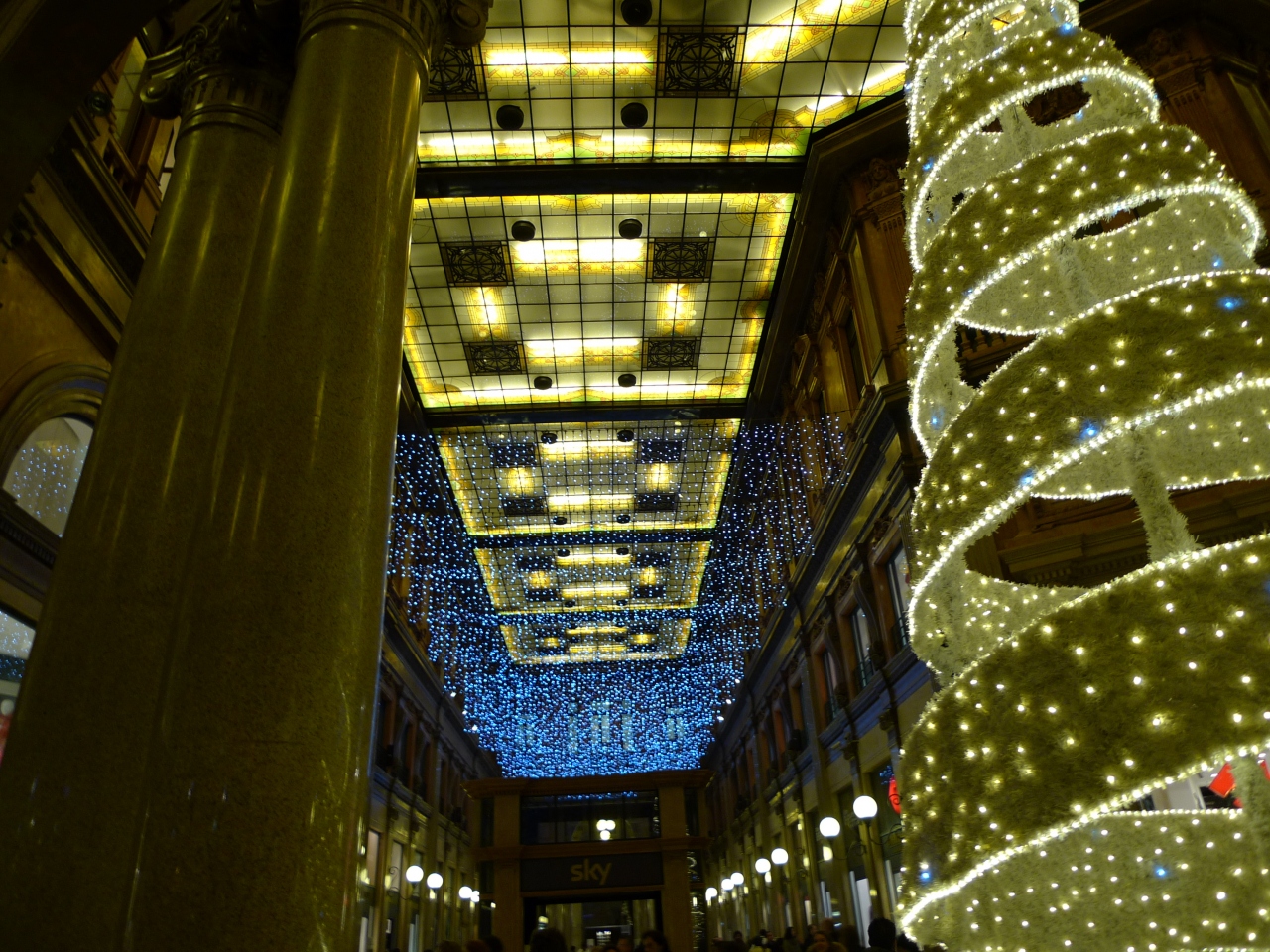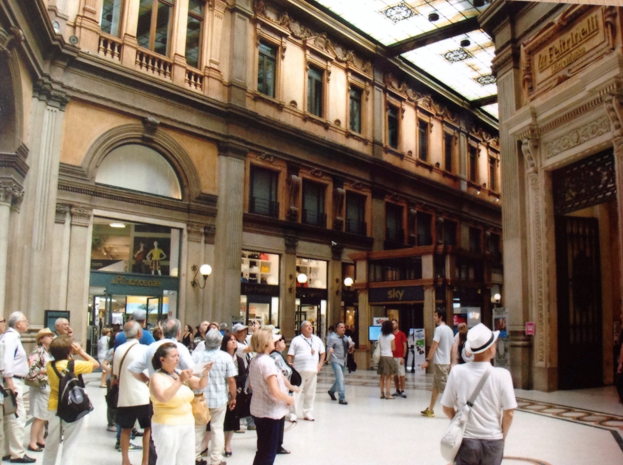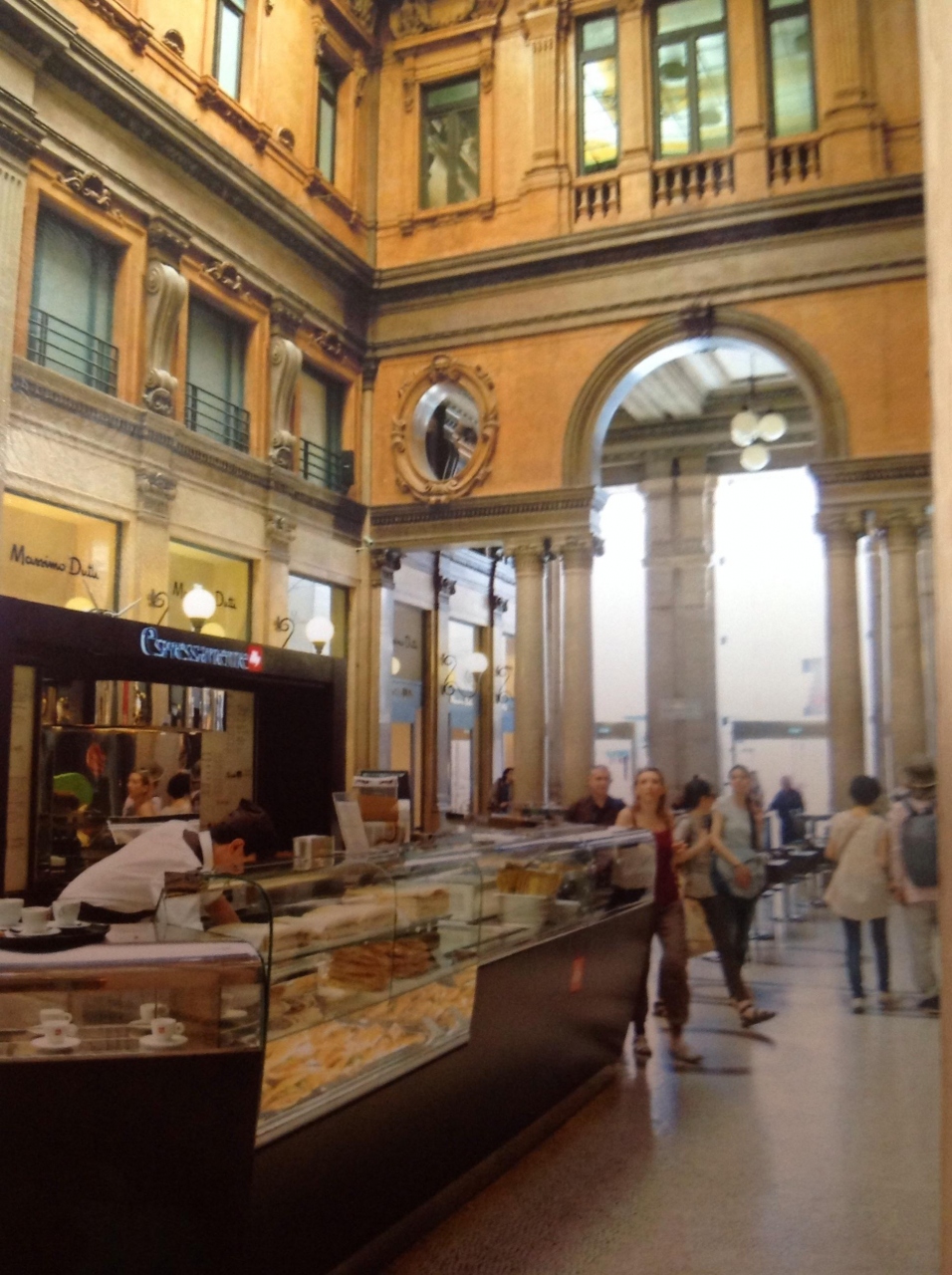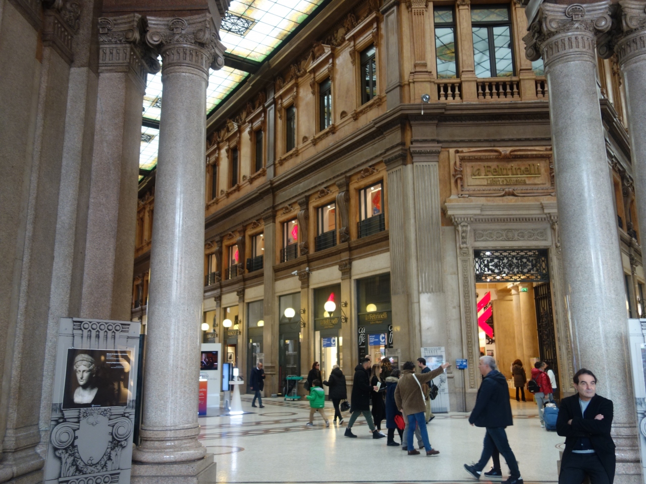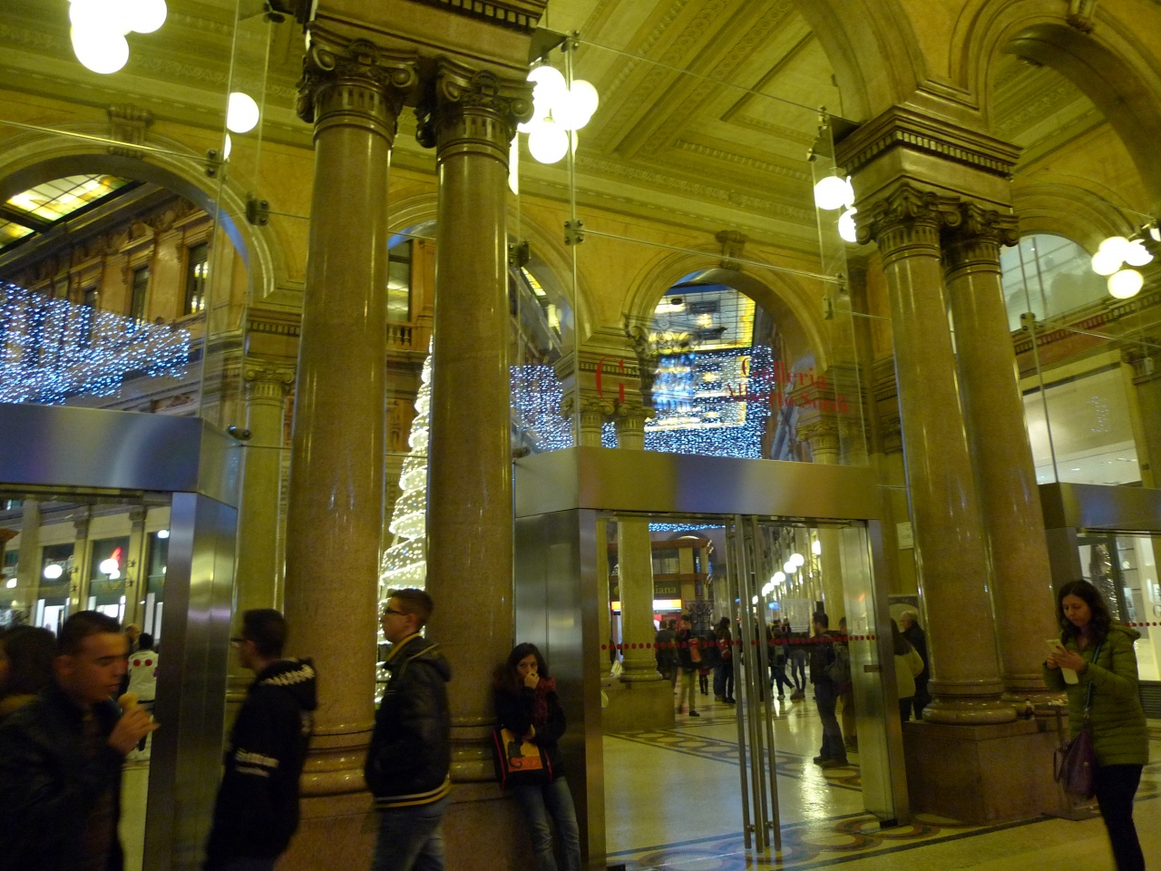 コルソ通りとトリットーネ通りの角にあるガッレリア。天井が高い。雨宿りになる。
