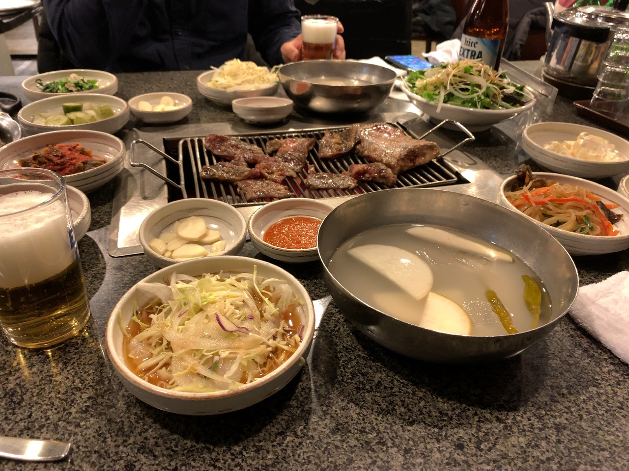 ヤンニョムカルビ2人前とビール1本で日本円にして1万円ほど。
