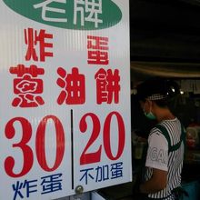 薄く揚げた生地にネギが刻み込まれ、揚げた卵とともに熱々をほおばる。2軒が並び競っていた。