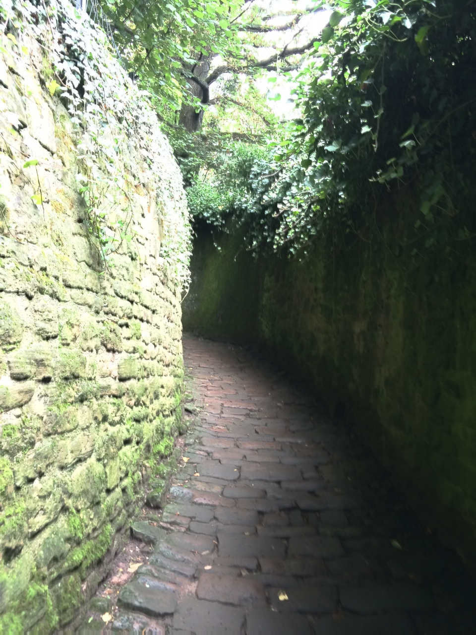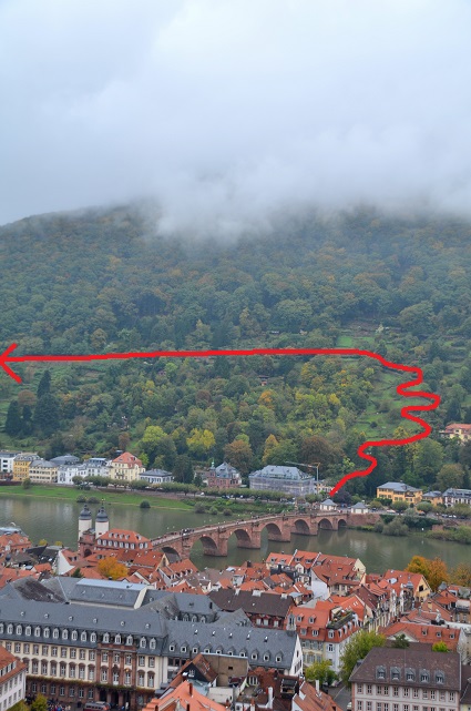 ネッカー川岸から見る哲学の道、左下がカール・テオドール橋