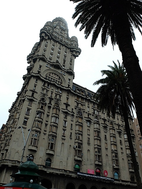 モンテビデオのセントロ、独立広場に面して建つモンテビデオでいちばん高い建物のひとつです。高さは95メートルのゴージャスなデ... 続きを読むザイン。タンゴの有名な曲『ラ・クンパルシータ』が初めて演奏された場所でもあり中にはタンゴ博物館が入っています。 ブエノスアイレスのバロロ宮殿と同じ設計者によるもので、ペアになって頂上の灯台からラプラタ川を航行する船舶を迎えるというコンセプトだったそうです。 閉じる