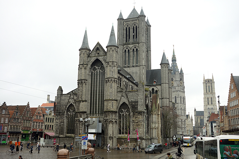 ゲント・セント・ピータース駅からトラムに乗り、旧市街の中心広場コーレンマルクトで降りると、目の前に聳える教会なのですぐに分... 続きを読むかります。