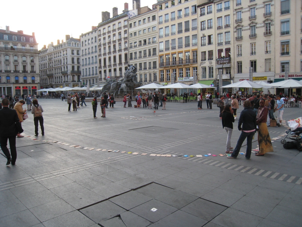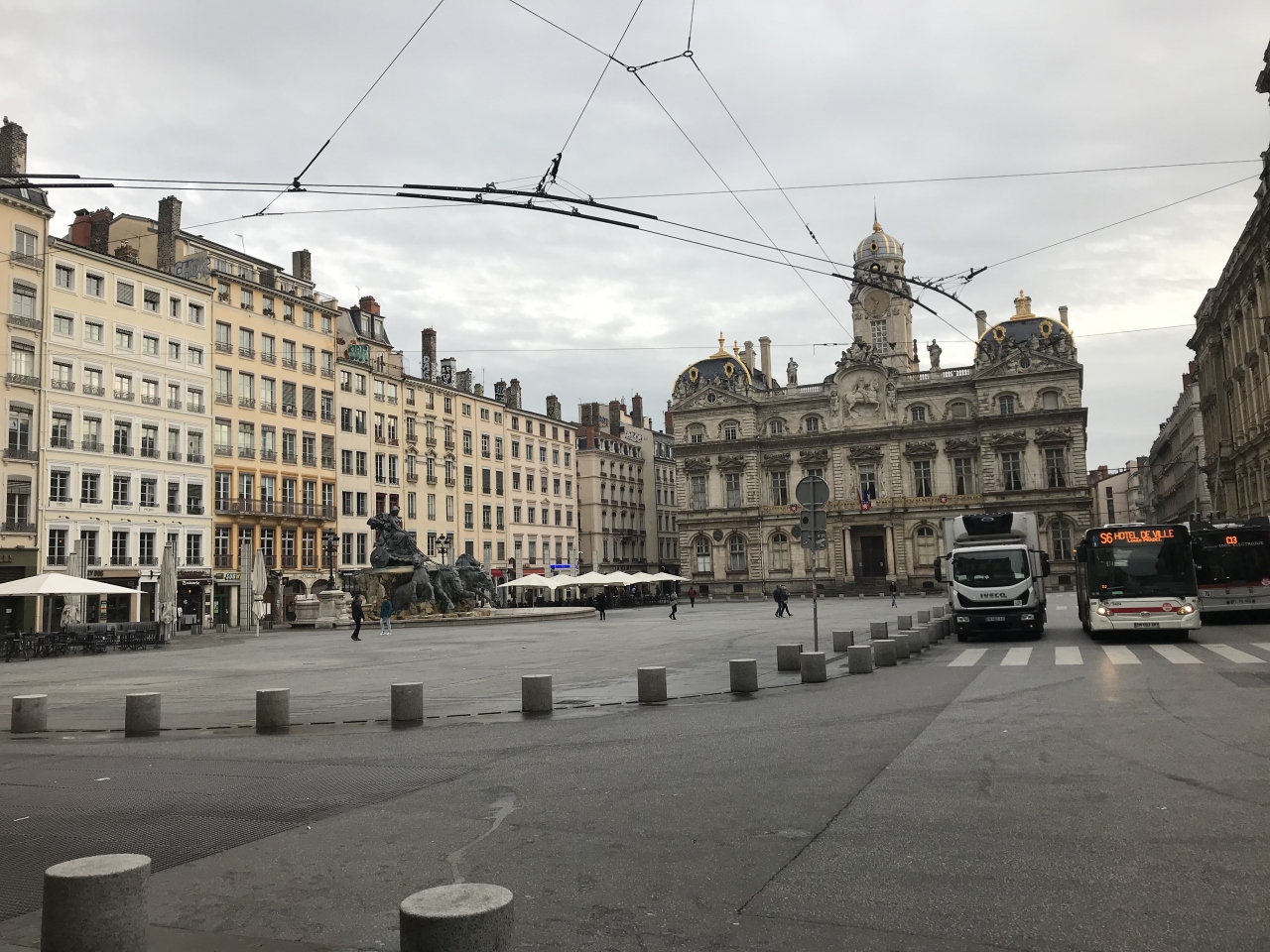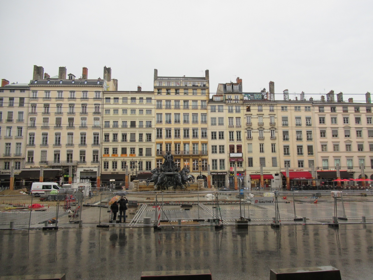 リヨンの中心地。ヨーロッパっぽい、こじんまり、シックな雰囲気の広場。